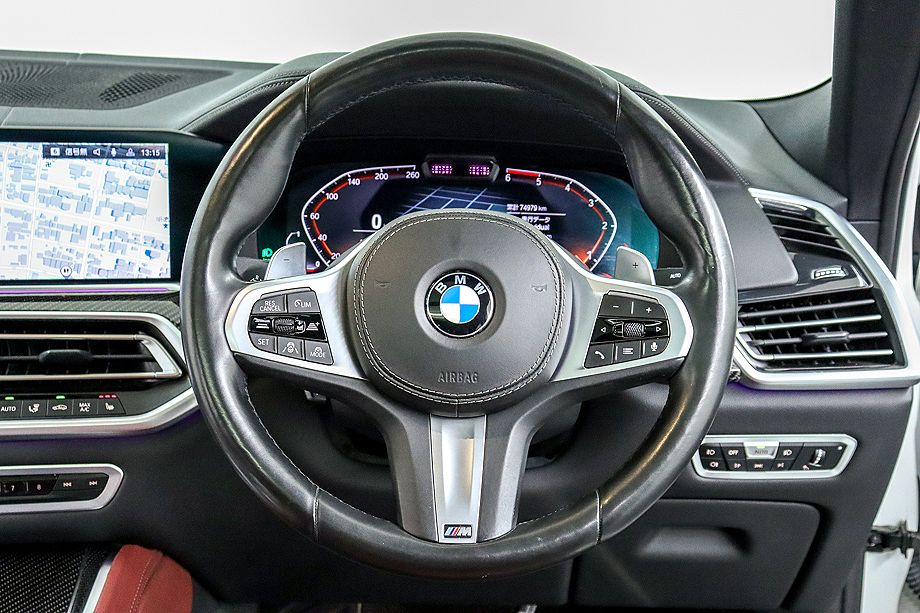 この2019年式 BMW X6 xDrive35d Mスポーツは、ラグジュアリーとスポーツを高次元で両立した完成度の高い一台です。アルピンホワイトのボディにMエアロダイナミクス・パッケージを纏い、20インチMライトアロイホイールとブルーキャリパーが放つ存在感は、走る前から特別感を感じさせてくれます!