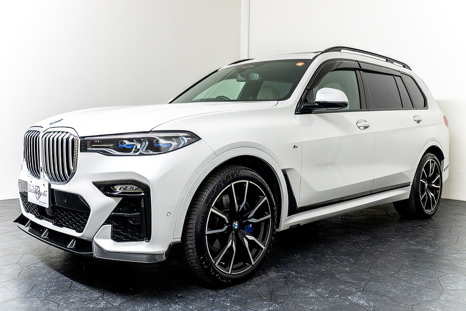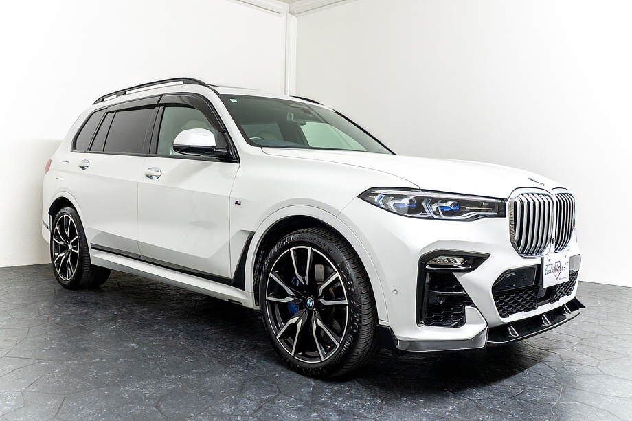 BMW X7 xDrive 35d Mスポーツ 正規ディーラー車 社外フロントスポイラー オプション22インチホイール スカイラウンジパノラマサンルーフ ウェルネスパッケージ エグゼクティブドライブプロ 2列目コンフォートシート リアエンターテイメント Bowers&Wilkinsサウンド ミネラルホワイト令和2年5月
