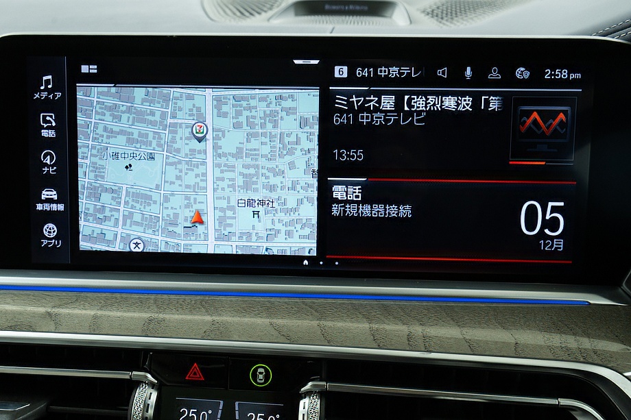 ただ音が良いだけでなく、車内全体がコンサートホールのような空間に変わり、音楽好きの方にはたまらない贅沢です。純正ナビはApple CarPlay対応で、日常使いも非常にスマート。CD・DVD・フルセグTV・Bluetooth・ミュージックサーバー・USBと、使い勝手の良さも抜かりありません。