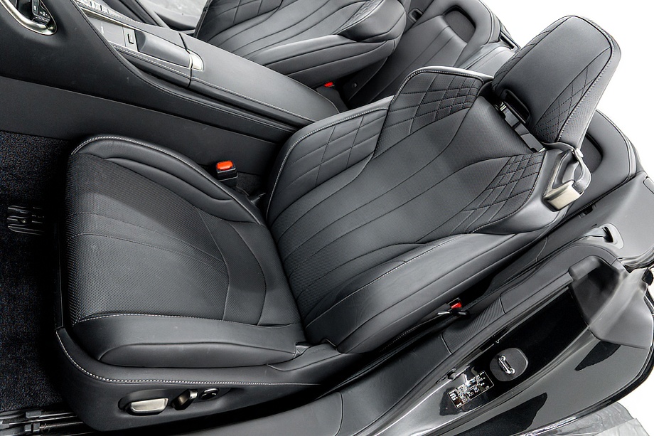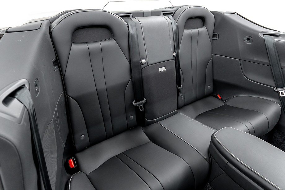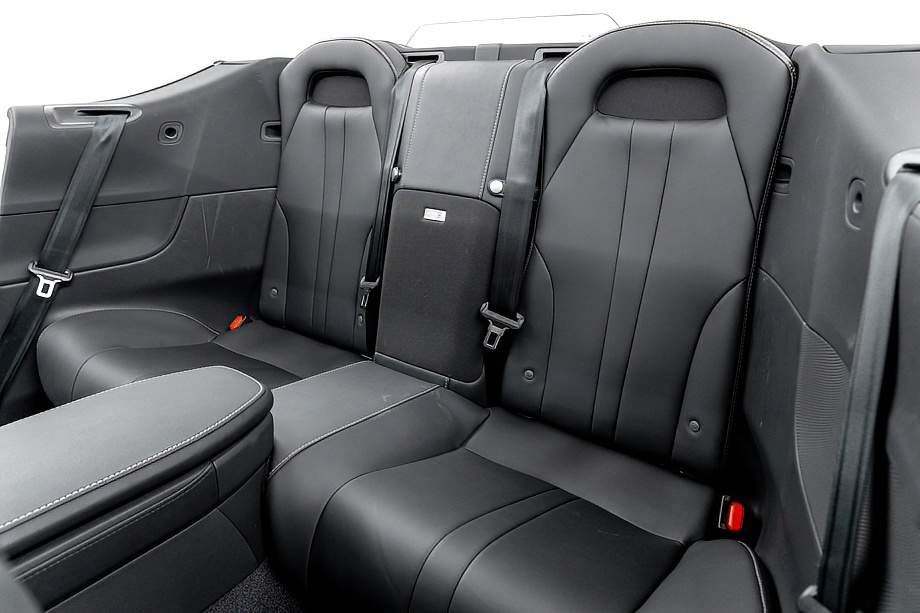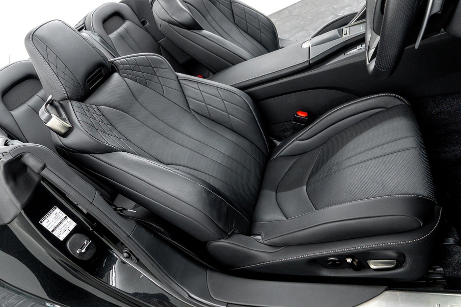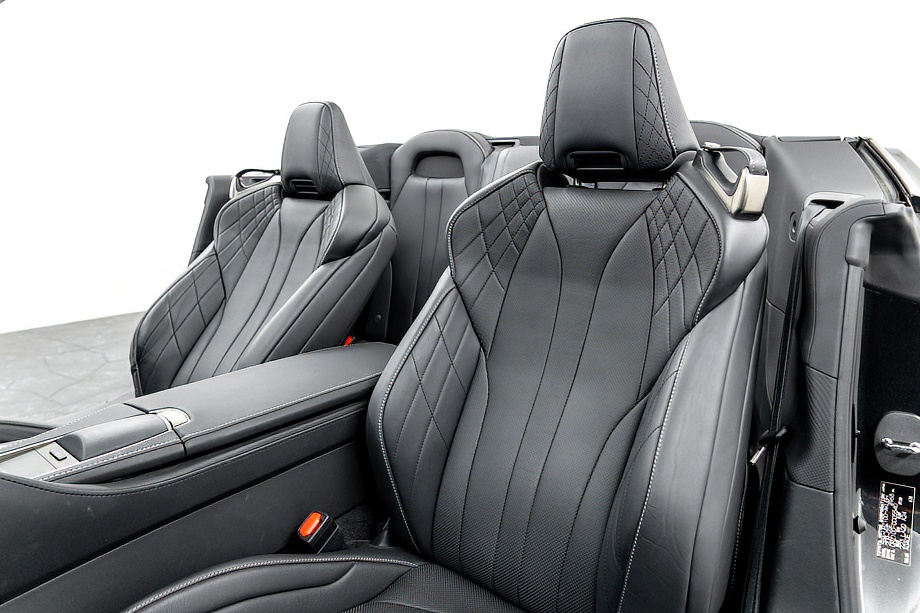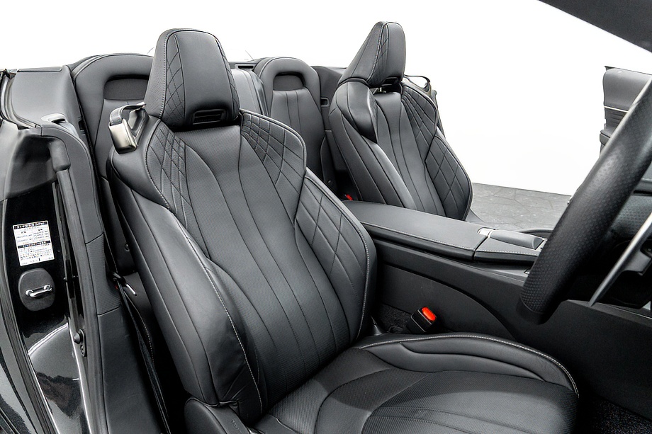 ドアを開ければ、ブラックレザーに包まれたラグジュアリーな空間。シートヒーターとベンチレーション(クーラー)を備え、季節を問わず快適にオープンドライブを楽しめます。ルーフを開けたままでも、マークレビンソンのサウンドが澄み渡り、音楽がまるで車内に溶け込むような感覚を味わえるのは、このクラスならではの贅沢です。