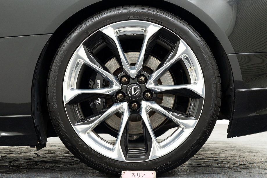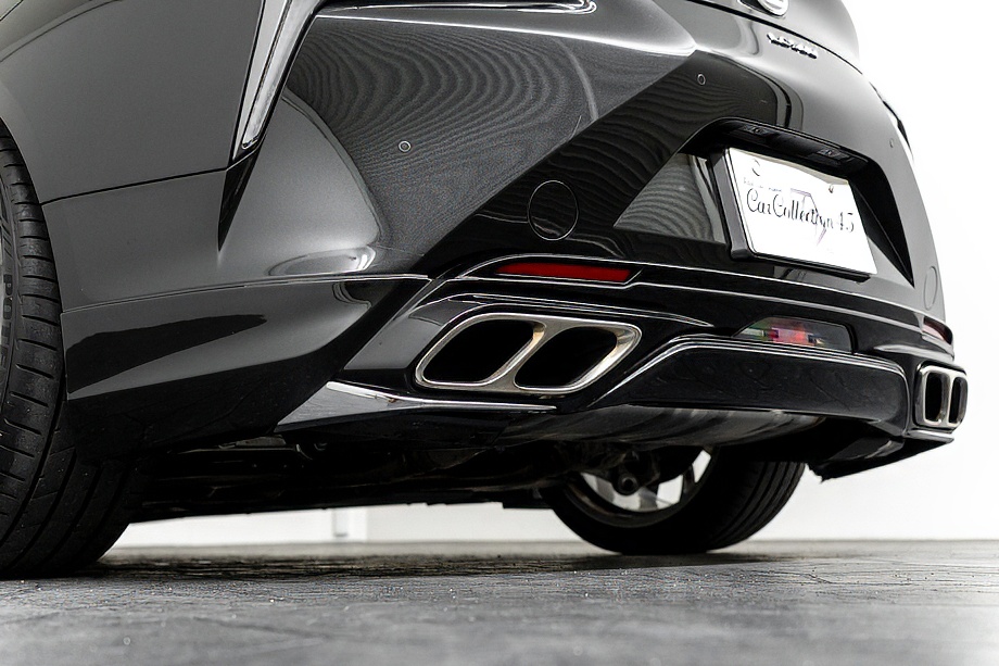 モデリスタのフロント・サイド・リアエアロが生み出すのは、派手さではなく「洗練」。低く構えたRSRダウンサスとの相乗効果で、停まっている時でさえ美しい存在感を放ちます。純正オプションの21インチ鍛造アルミホイールは、ポリッシュ仕上げとブラック塗装のコントラストが絶妙で、グラファイトブラックガラスフレークのボディカラーをより深く、より艶やかに引き立てています。