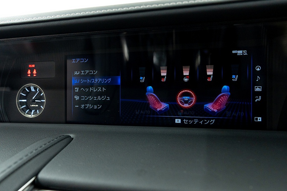 純正ナビはフルセグTV、CD・DVD、Bluetooth、AUXまで対応し、日常使いの利便性も申し分ありません。バックカメラに加え、レクサスセーフティシステムを搭載しているため、優雅さだけでなく安心感もしっかりと備えています。