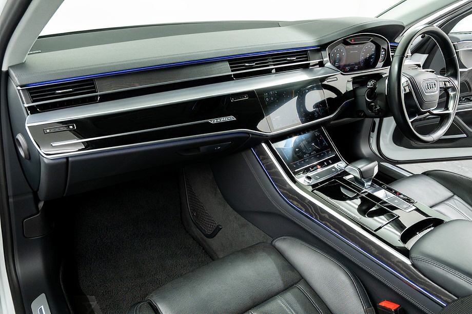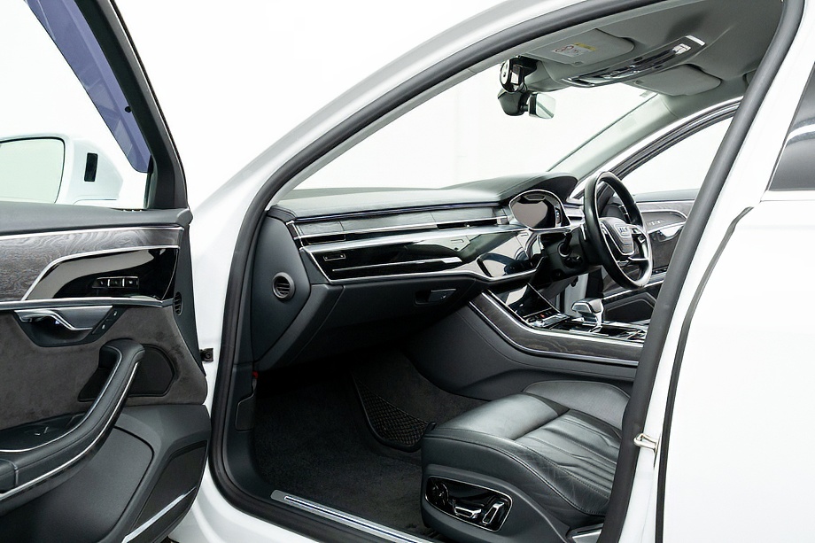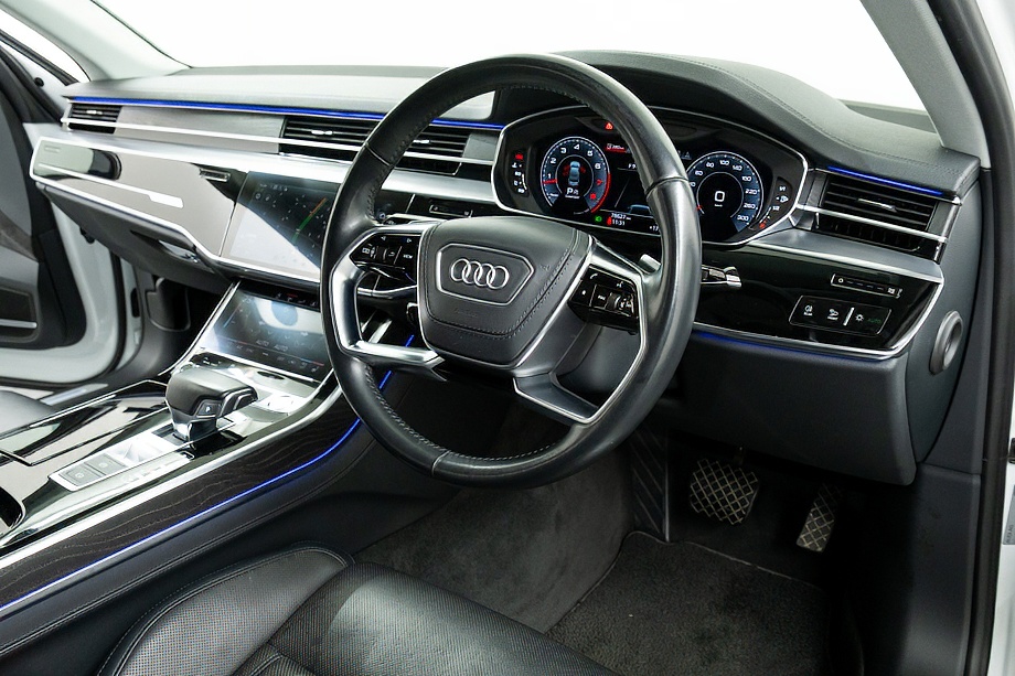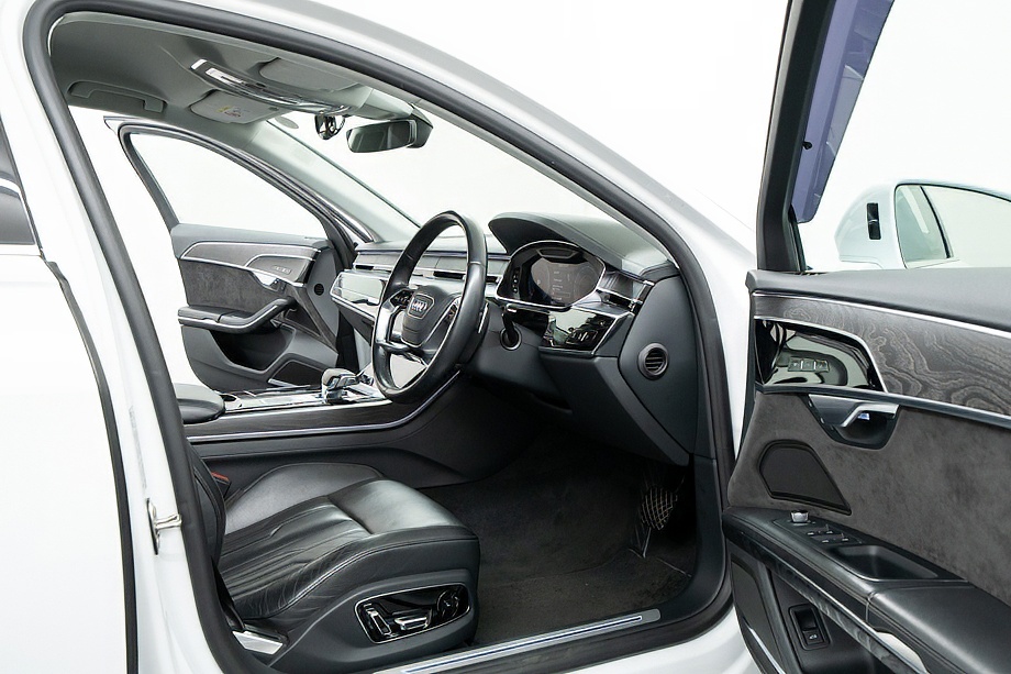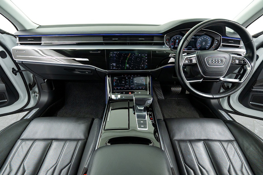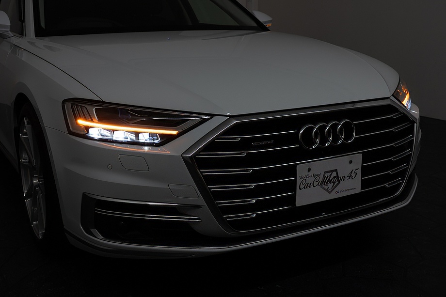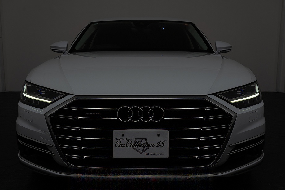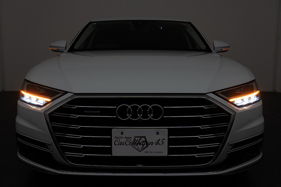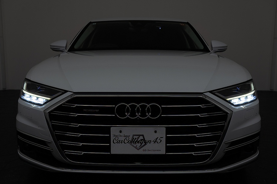アウディ A8 55TFSIクワトロ 正規ディーラー車 アダプティブドライブアシスト BCフォージド21インチアルミホイール HDマトリクスLEDヘッドライト ブラックレザーシート/ヒーター/クーラー アンビエントライト バング&オルフセン 360°カメラ アダプティブクルーズコントロール グレイシアホワイトメタリック平成30年10月