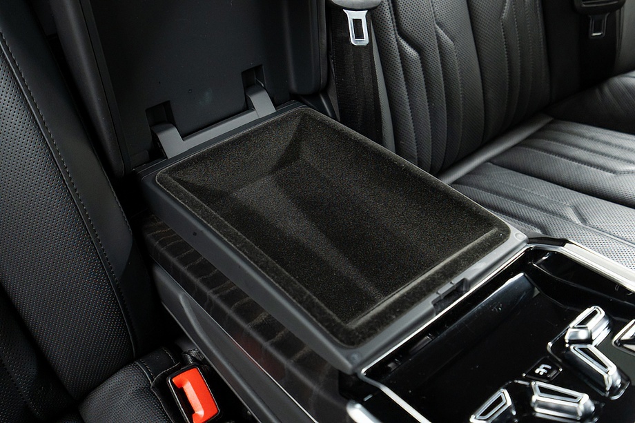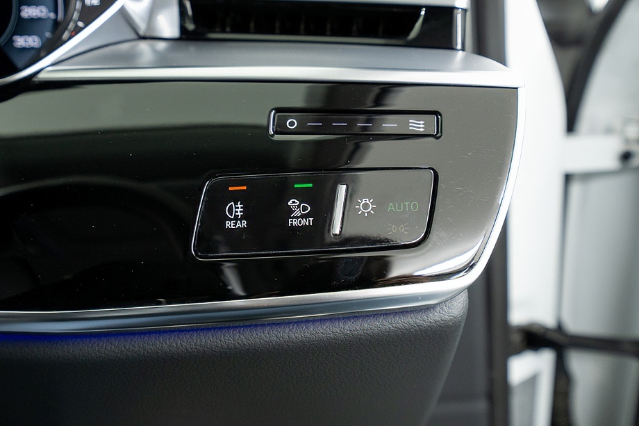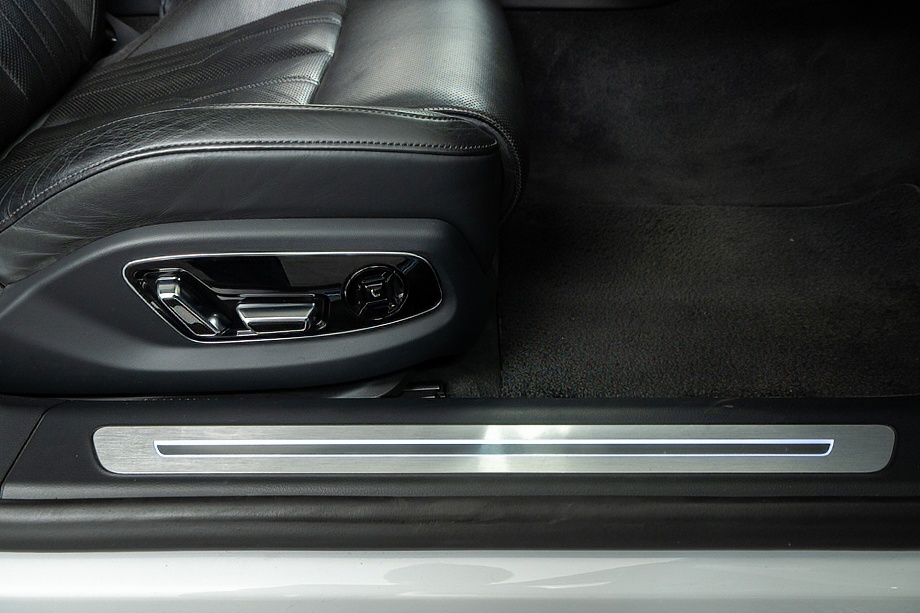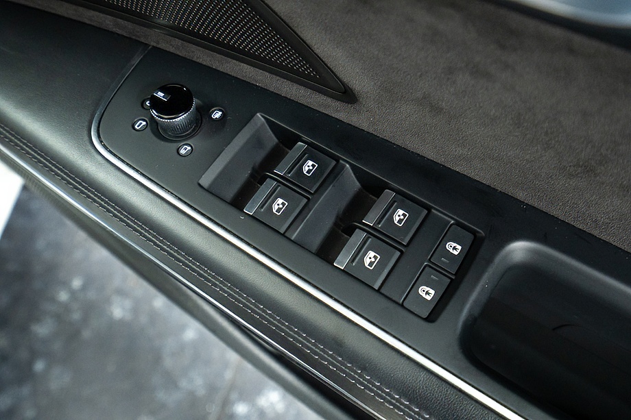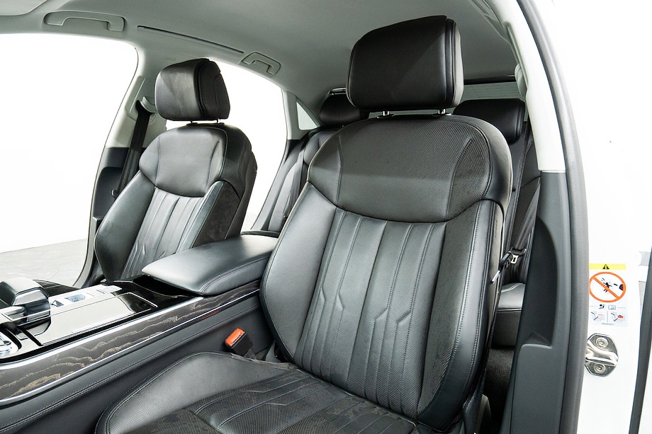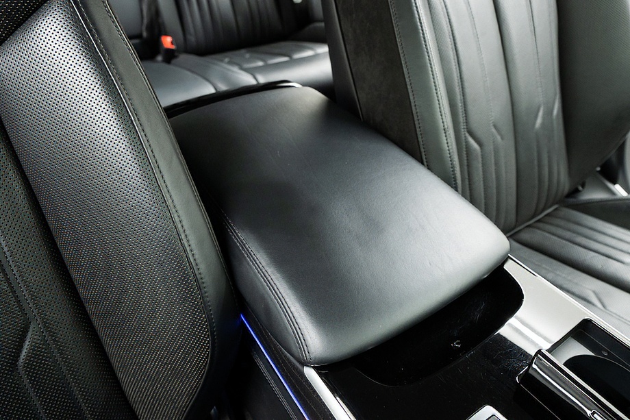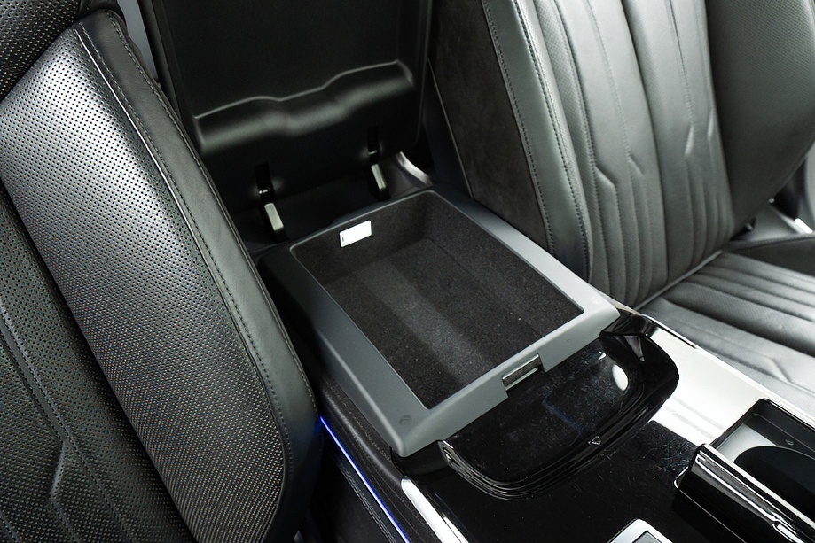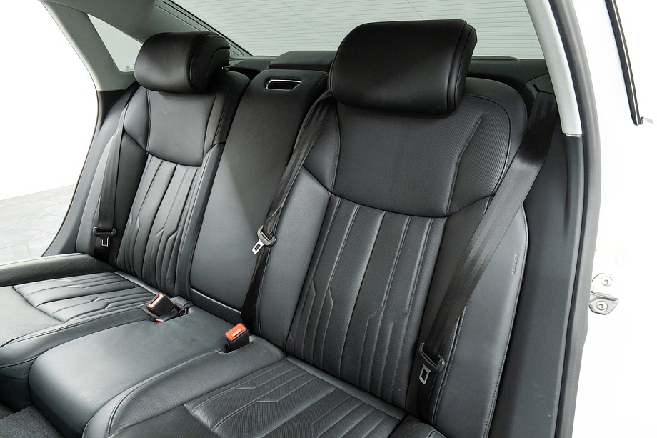 室内に足を踏み入れると、ブラックレザーシートの質感と、アンビエントライトの柔らかな光が迎えてくれます。シートヒーター&クーラー付きなので、季節を問わず快適。さらにバング&オルフセンのサウンドシステムが、車内をまるで上質な音楽空間のように変えてくれます。フルセグTV、USB、SD、Bluetooth対応で、使い勝手も申し分ありません。