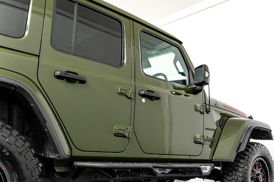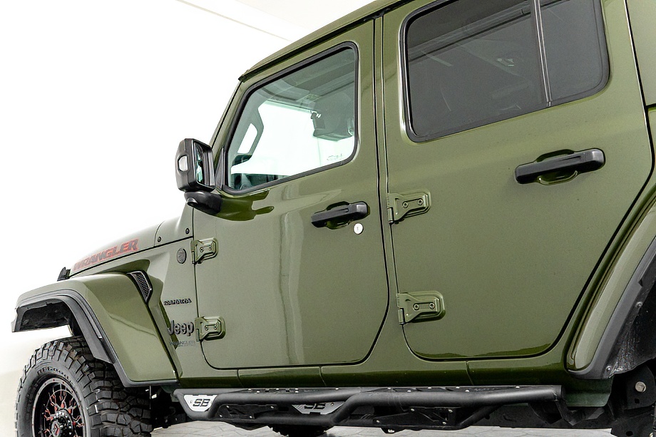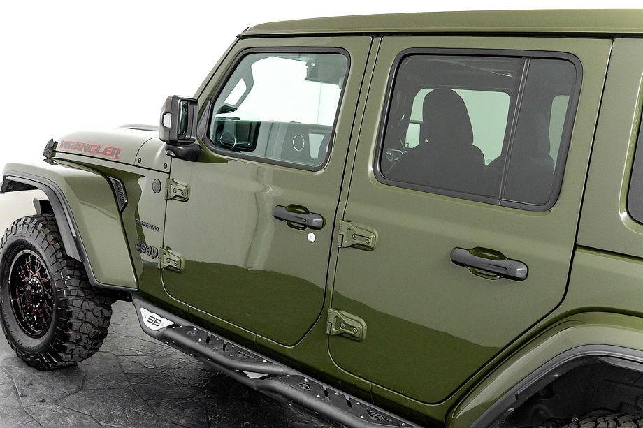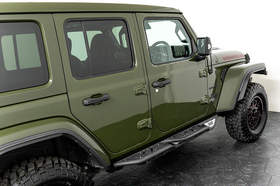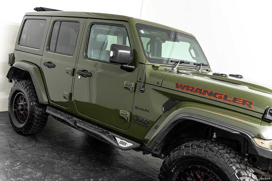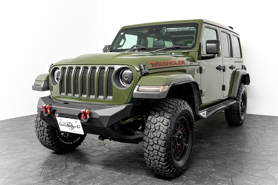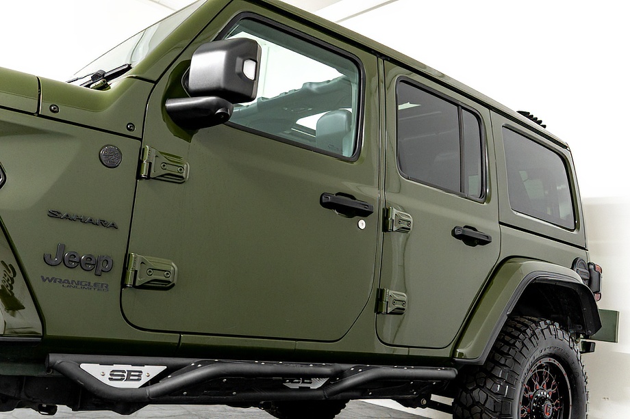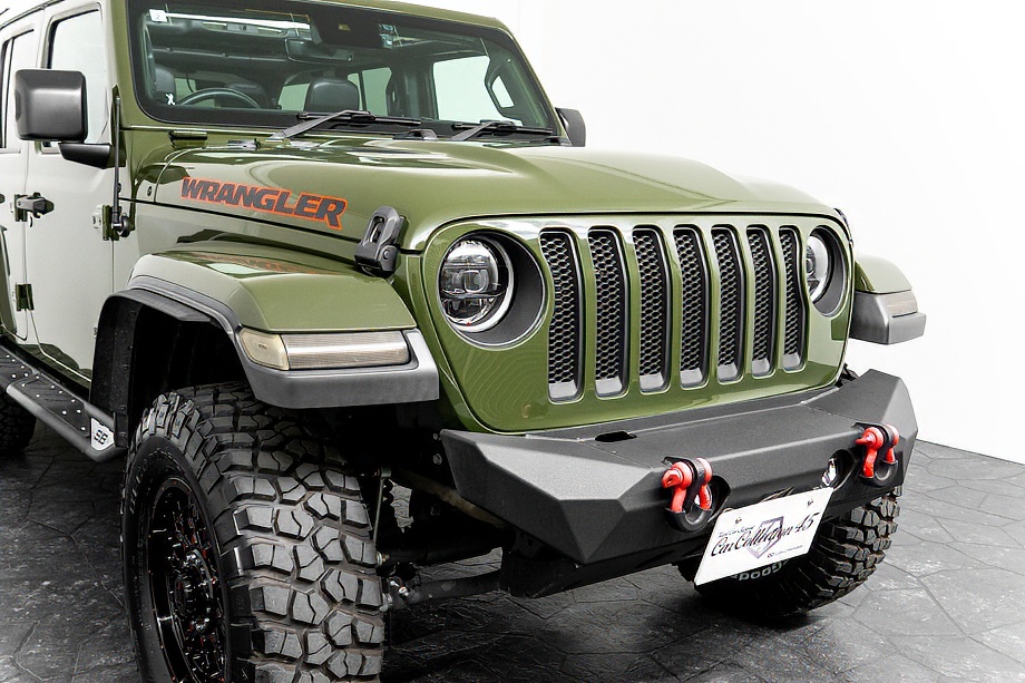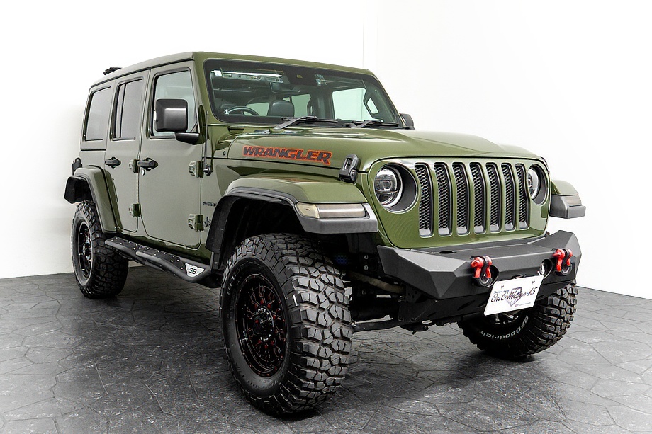 ジープ サハラ スカイワンタッチパワートップ 正規ディーラー車 国内300台限定車 スミッティビルドサイドステップ MOTOBILTフロント/リアバンパー レクセル17インチアルミホイール/BFGoodrich FOXショック/リフトアップ 4本出しマフラー ブラックレザーシート/ヒーター サージグリーン令和2年9月