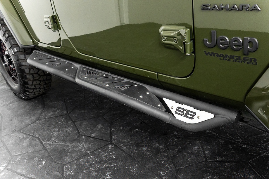 フロント・リアにはMOTOBILT製バンパーをインストール!重厚感のあるデザインがワイルドさを強烈に演出しつつ、実用性も兼ね備えた本格オフロードパーツです!サイドにはスミッティビルドのステップを装備し、乗降性とスタイルを両立!細部まで抜かりのないカスタムが施されています!