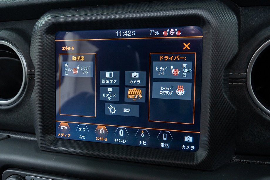 インテリアは高級感溢れるブラックレザーシート!さらにシートヒーター付きで冬場でも快適そのもの!ラングラーのタフな外観とは対照的に、上質でラグジュアリーな空間が広がります!日常使いでも長距離ドライブでもストレスを感じさせません!