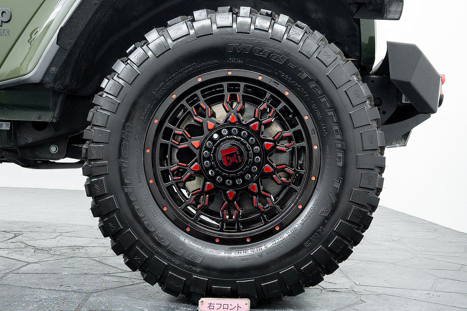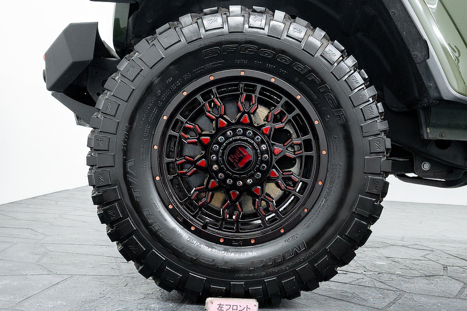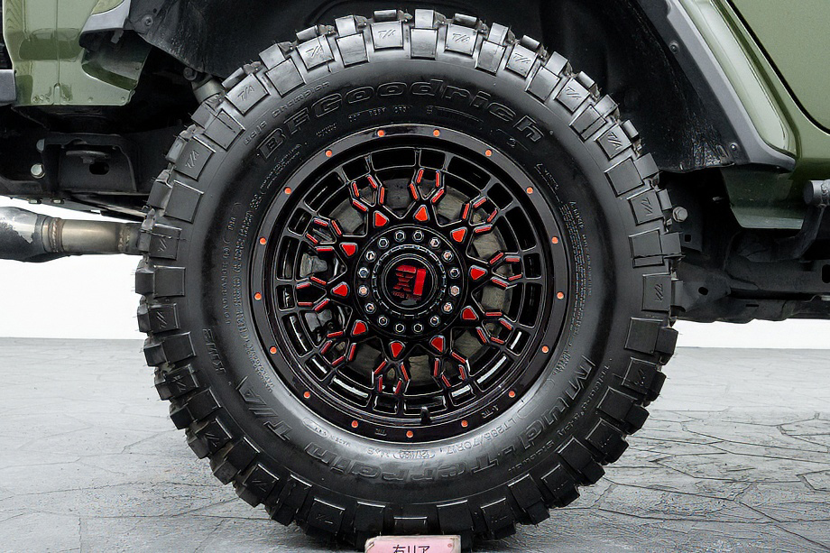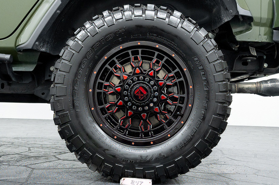 足元にはレクセル17インチアルミホイールにBFGoodrichオールテレーンタイヤを装着!見た目の迫力はもちろん、オンロードでの安定感とオフロードでの走破性を高次元で両立しています!さらにFOXショック&リフトアップにより、ラングラー本来の悪路性能を一段と強化!街中でもアウトドアでも主役になれる仕様です!