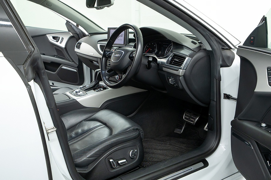 アウディ A7スポーツバック 3.0TFSIクワトロ 正規ディーラー車 マトリクスLEDヘッドライト KW車高調/純正19インチアルミホイール/レッドキャリパー バーチャルコックピット ブラックレザーシート 全席シートヒーター パワーテールゲート 純正ナビ/バックカメラ BOSEサウンド アダプティブクルーズコントロール グレイシアホワイトメタリック平成27年5月
