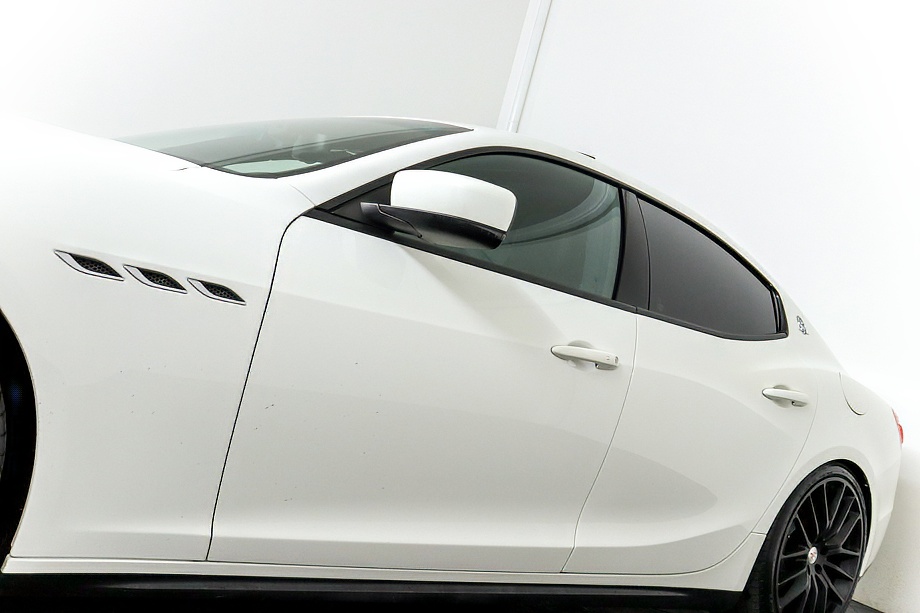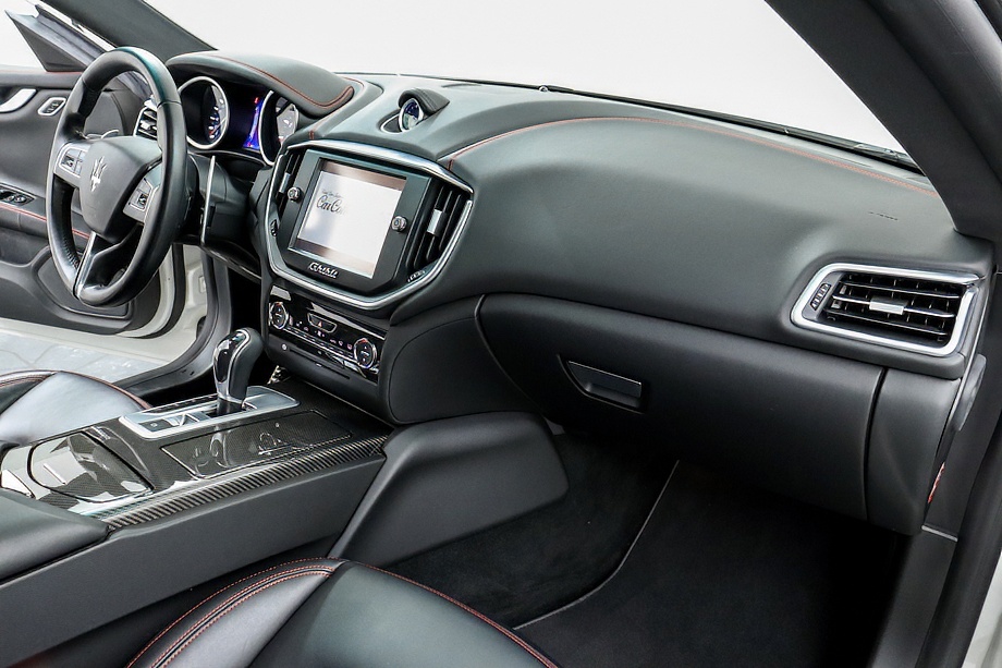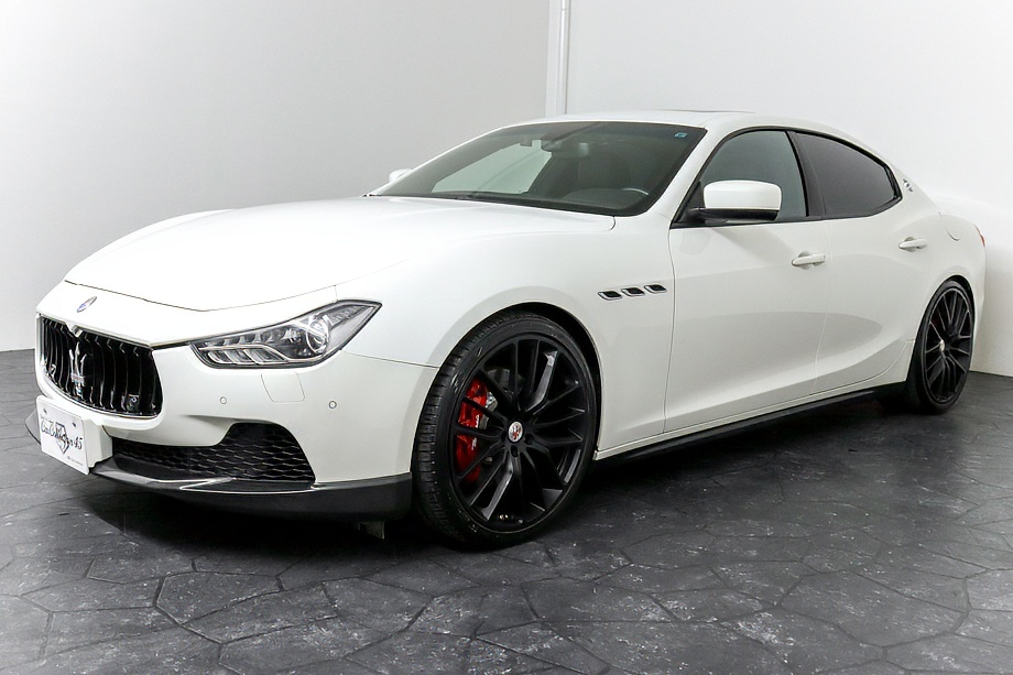 マセラティ ギブリ S 正規ディーラー車 左ハンドル サンルーフ カーボンフロントリップ/トランクスポイラー パワークラフト中間マフラー BCレーシング車高調/純正21インチアルミホイール ブラック&レッドステッチインテリア/ヒーター/ベンチレーション ビアンコ平成27年6月