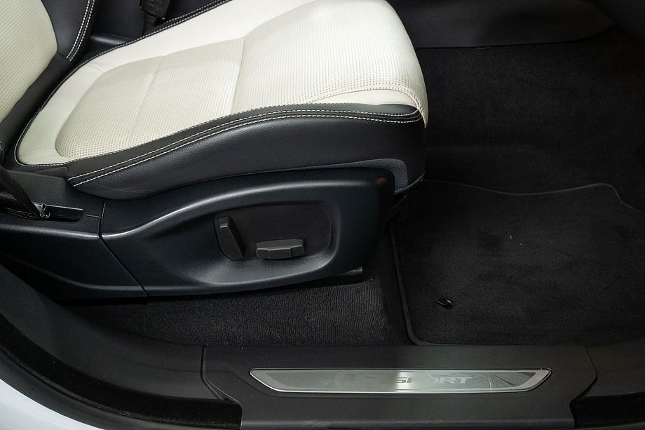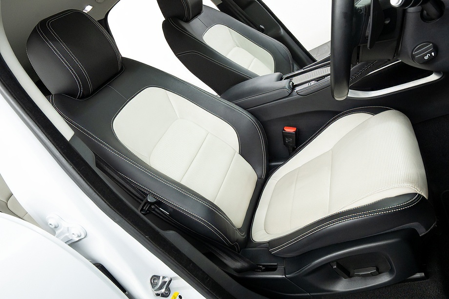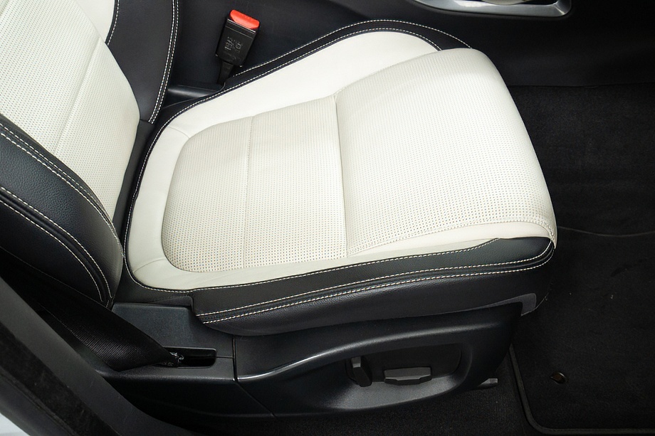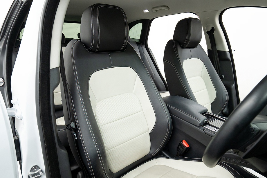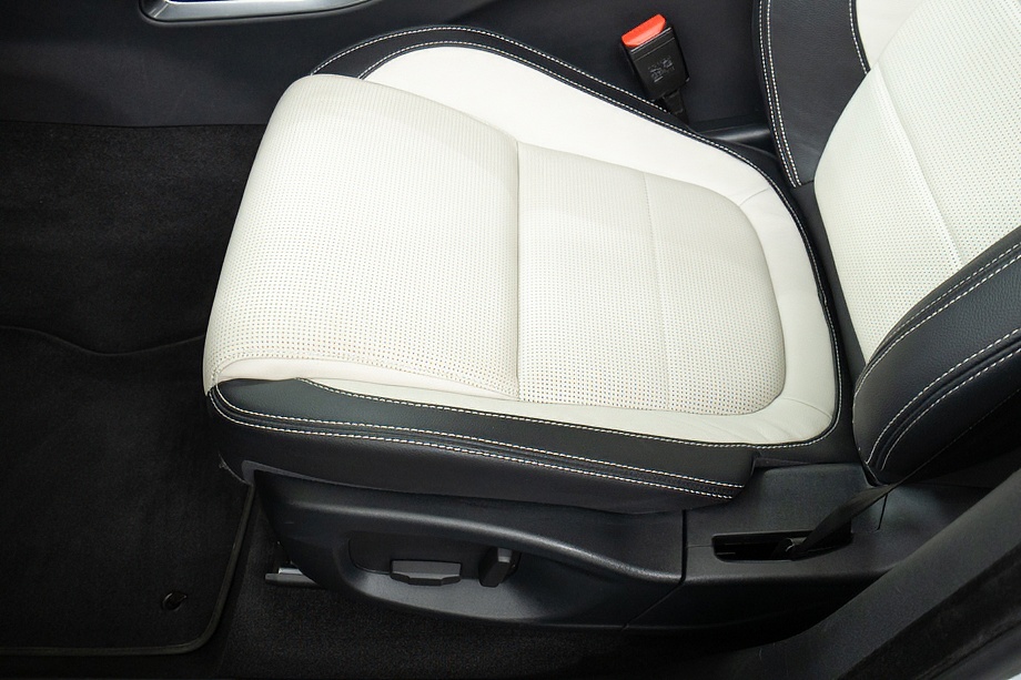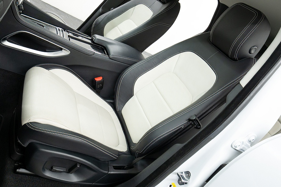 室内に足を踏み入れると、ホワイト&ブラックの2トーンレザーインテリアが広がります。ホワイトステッチがさりげなく上質感を演出し、R-スポーツならではのスポーティな雰囲気と高級感が絶妙に融合。シートヒーターも備わっており、季節を問わず快適なドライブを楽しめます。