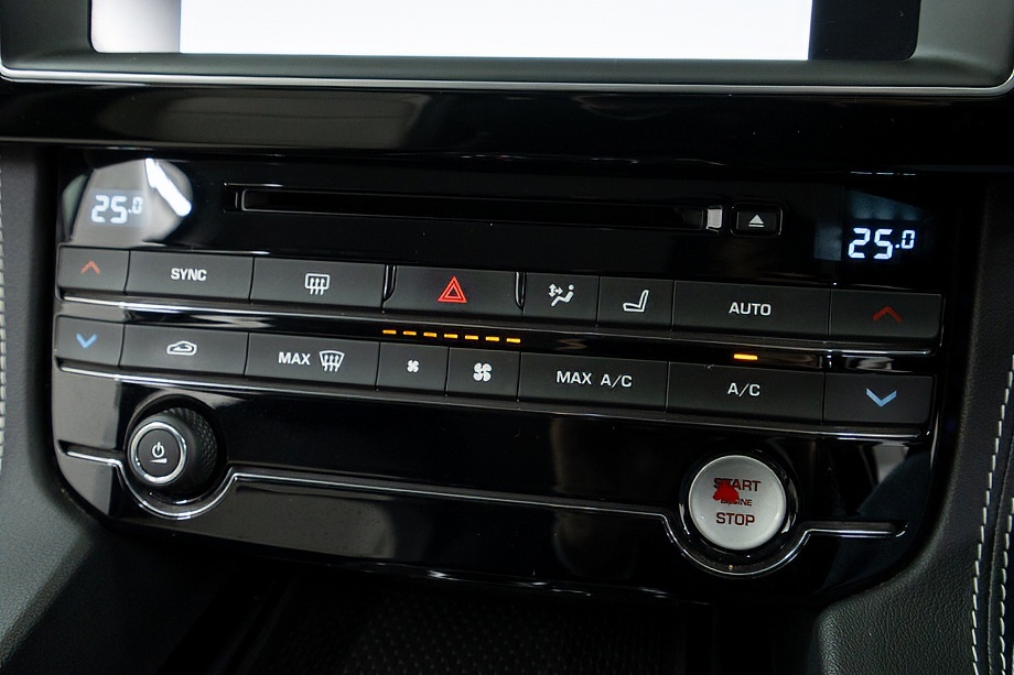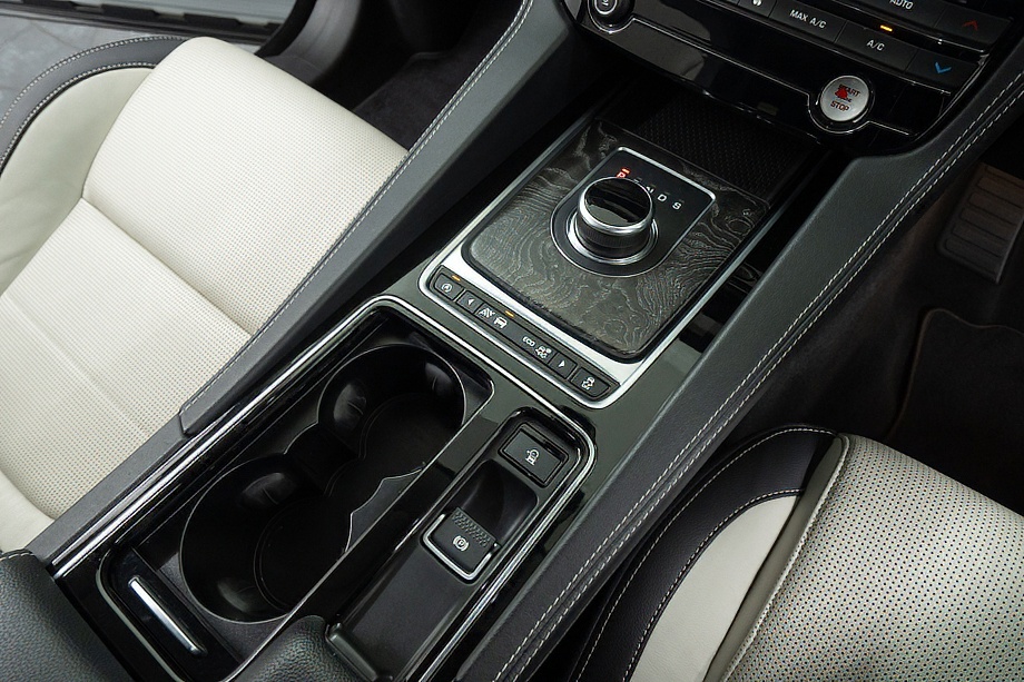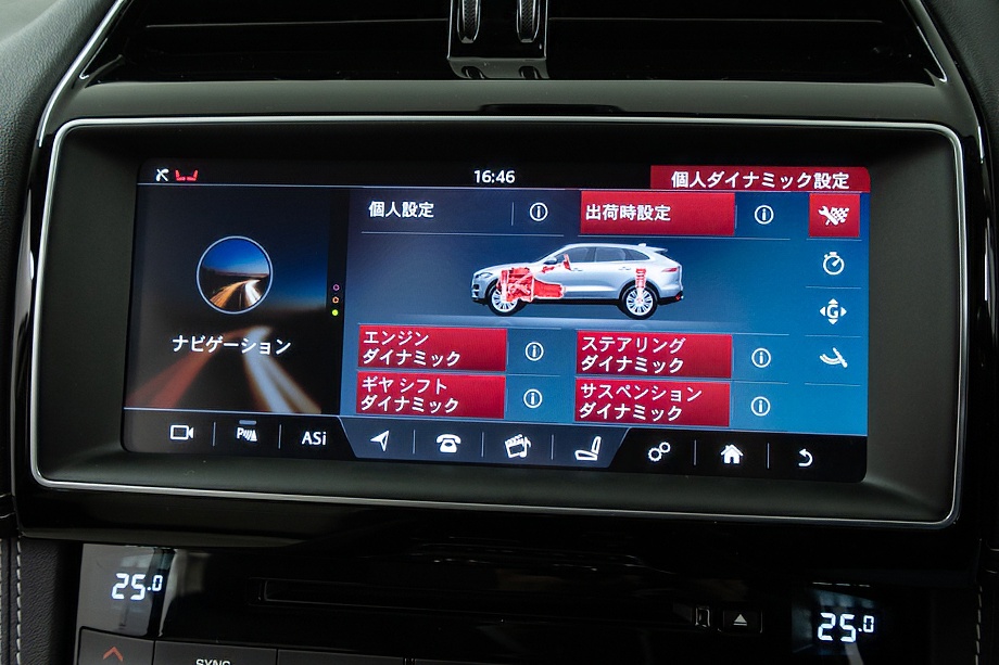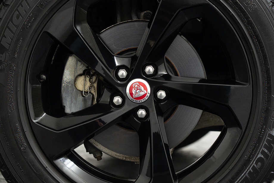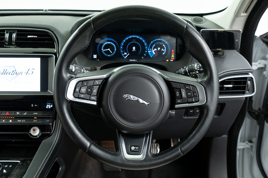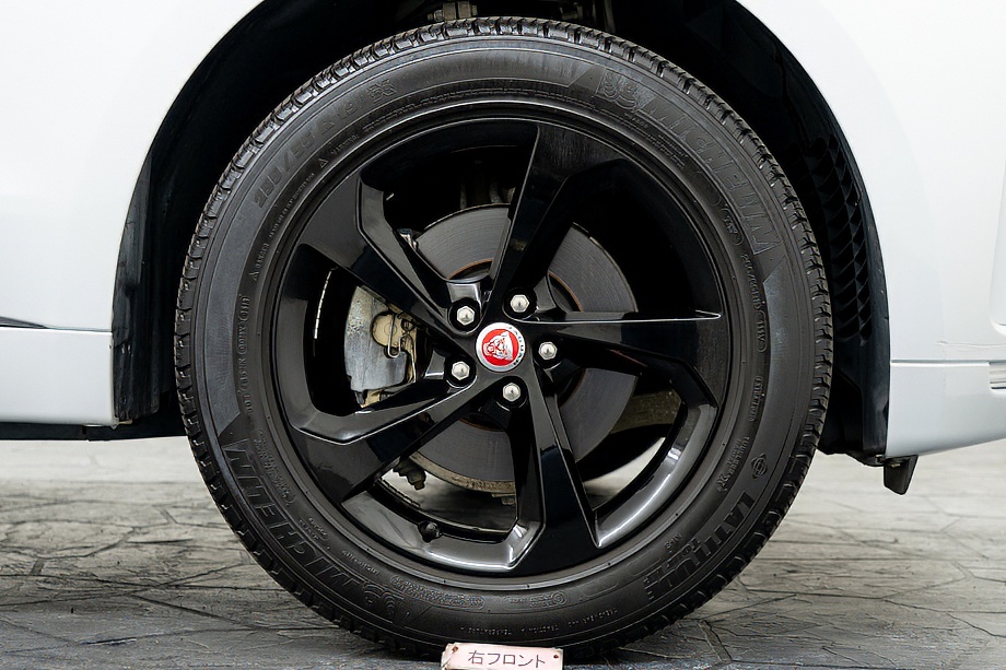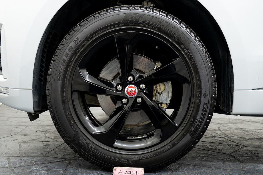 R-スポーツは、その名の通りスポーティさを随所に感じられるグレードです。専用デザインのバンパーやエクステリアディテールが、F-PACEのダイナミックなフォルムをより引き締め、走る前から気持ちを高めてくれます。足元には、純正オプションの19インチアルミホイール(スタイル5037・グロスブラック)を装着。SUVらしい力強さに、ジャガーらしい俊敏さと美しさが加わっています。