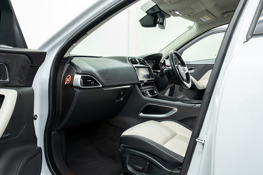 ジャガー Fペイス R-スポーツ 正規ディーラー車 ブラックパック LEDヘッドライト 純正オプション19インチホイール ホワイト&ブラック2トーンレザーインテリア シートヒーター 純正ナビ フルセグTV パワーテールゲート メリディアンサウンド 360°カメラ ブラインドスポット ACC グレイシャーホワイトメタリック平成29年1月