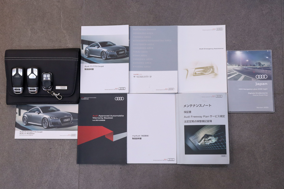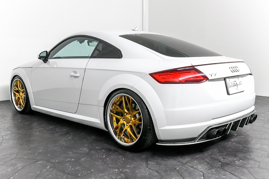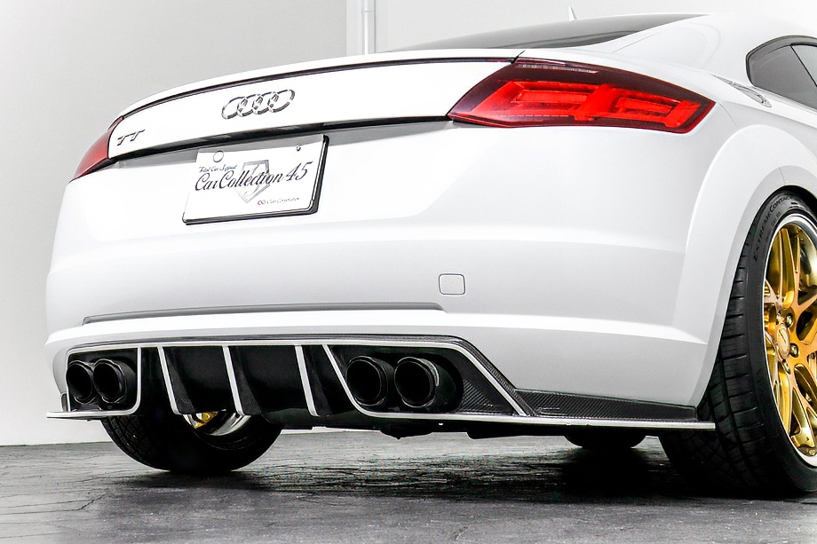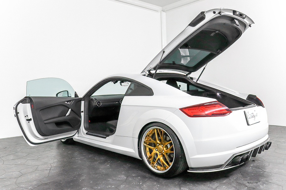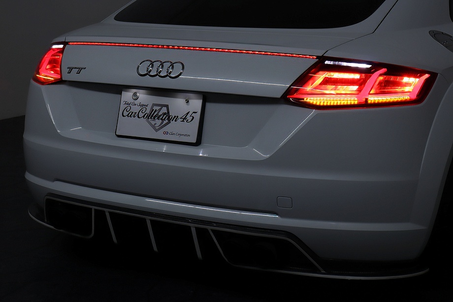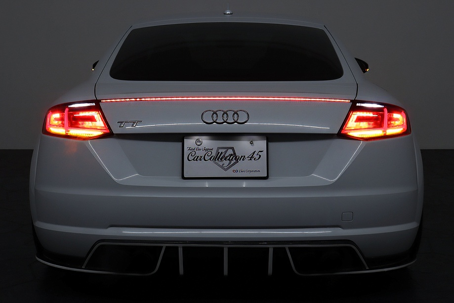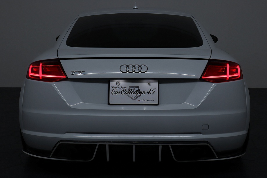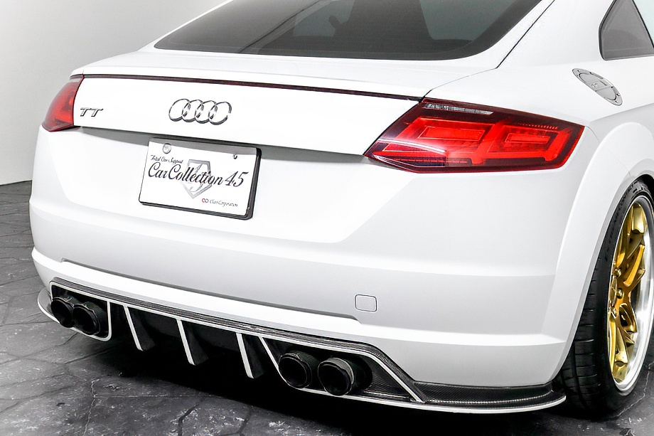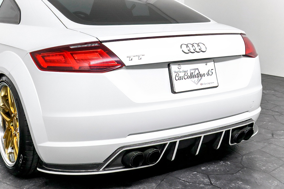 アウディ TTクーペ 2.0TFSI 正規ディーラー ワークグノーシス19インチAW/RUSH車高調 ワンオフ4本出し可変バルブ付きマフラー カーボン調ディフューザー 可動式リアウイング バーチャルコックピット フルセグTV Bluetooth グレイシアホワイトメタリック平成28年6月