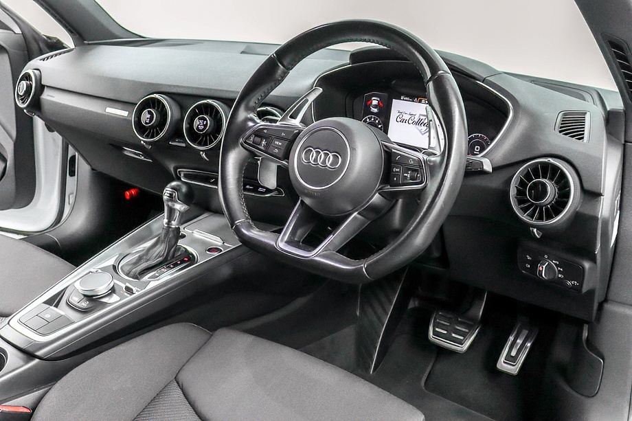 搭載される2.0L TFSIターボエンジンは230馬力・370Nmを発揮。アクセルに軽く力を込めるだけで、余裕とキレのある加速が味わえます。それでいて燃費性能も向上しており、スポーツカーでありながら日常使いにもきちんと応えてくれるのがTTの魅力。6速Sトロニックとの組み合わせにより、街中からワインディングまでスムーズで洗練された走りを楽しめます。
