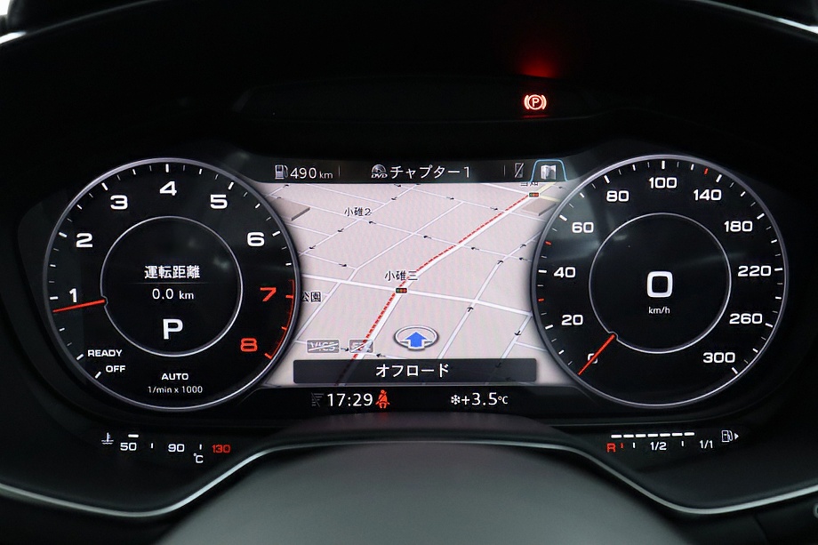 室内に目を向けると、アウディが誇るバーチャルコックピットがドライバーを迎えます。12.3インチの高解像度ディスプレイに、ナビや車両情報、エンターテインメント機能を集約。CD・DVD、フルセグTV、Bluetooth、USB、ミュージックサーバーまで対応し、ドライブ中の時間さえも上質に彩ってくれます。