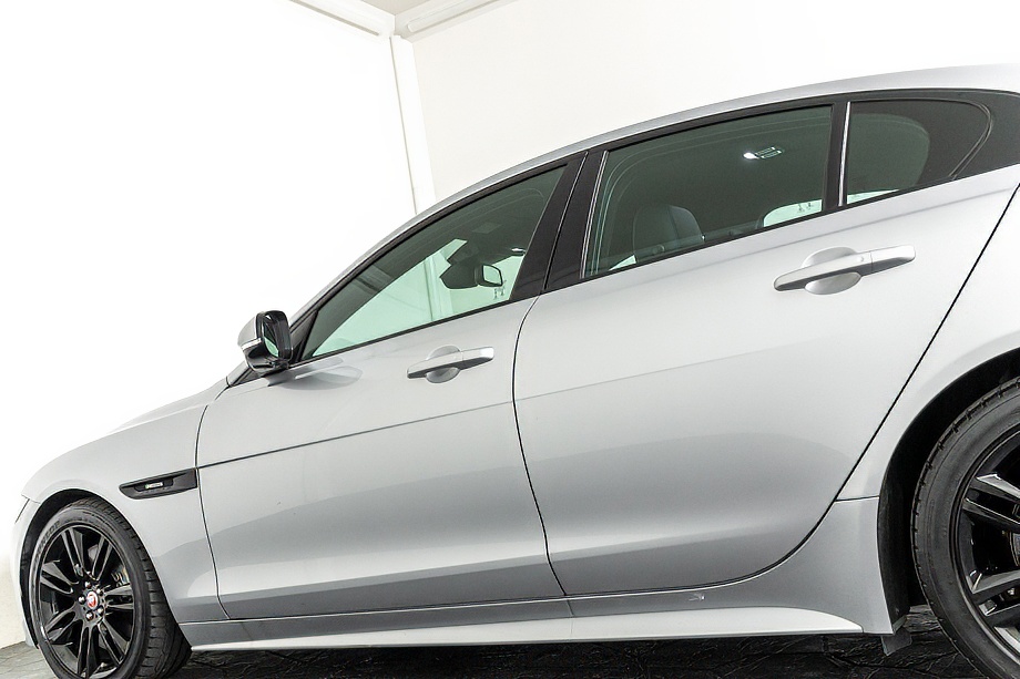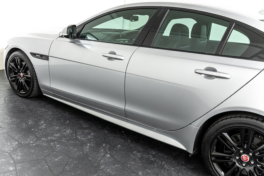 ジャガー XE R-スポーツ P300 正規ディーラー車 ブラックパック マイナーチェンジ後モデル ドライバーズピュアパック R-スポーツボディキット 純正オプション18インチアルミホイール ハーフレザー/ヒーター バックカメラ メリディアンサウンド ブラインドスポットモニター ロジウムシルバー平成30年10月