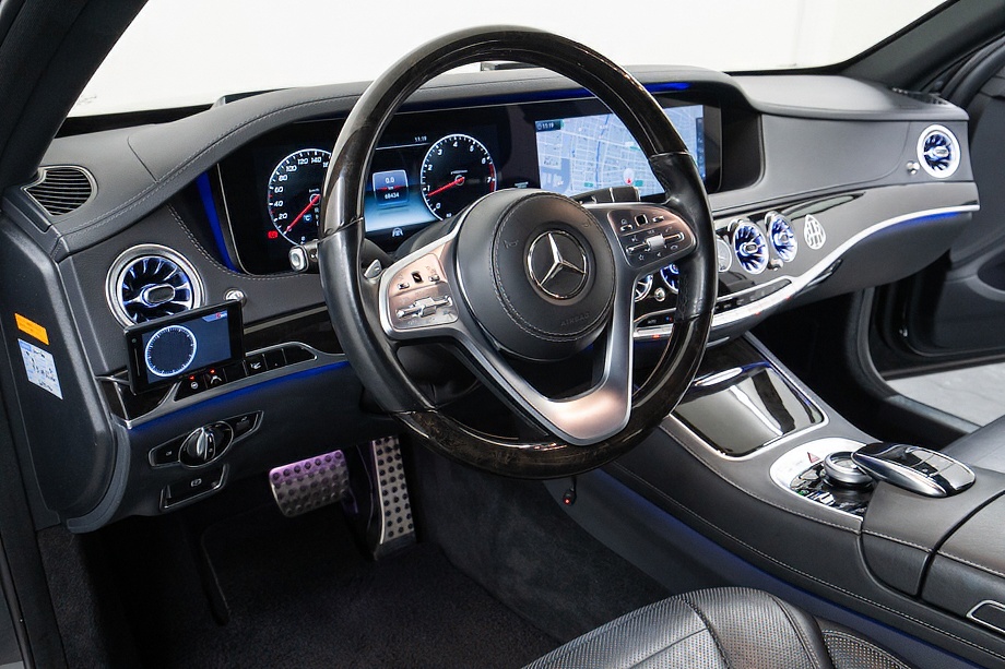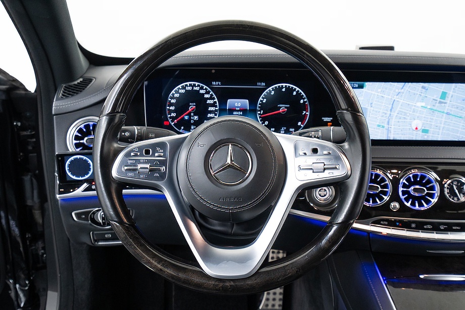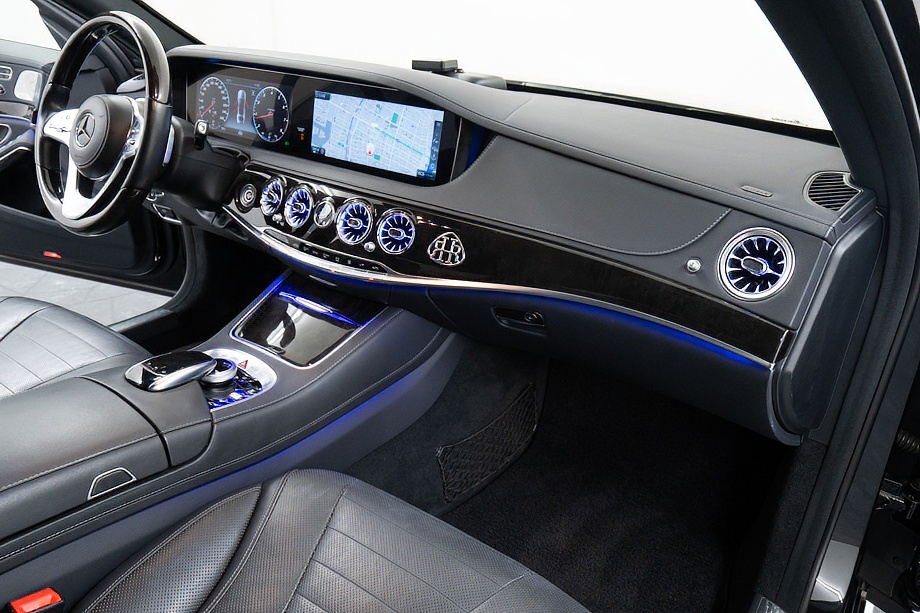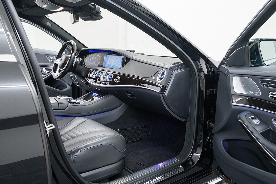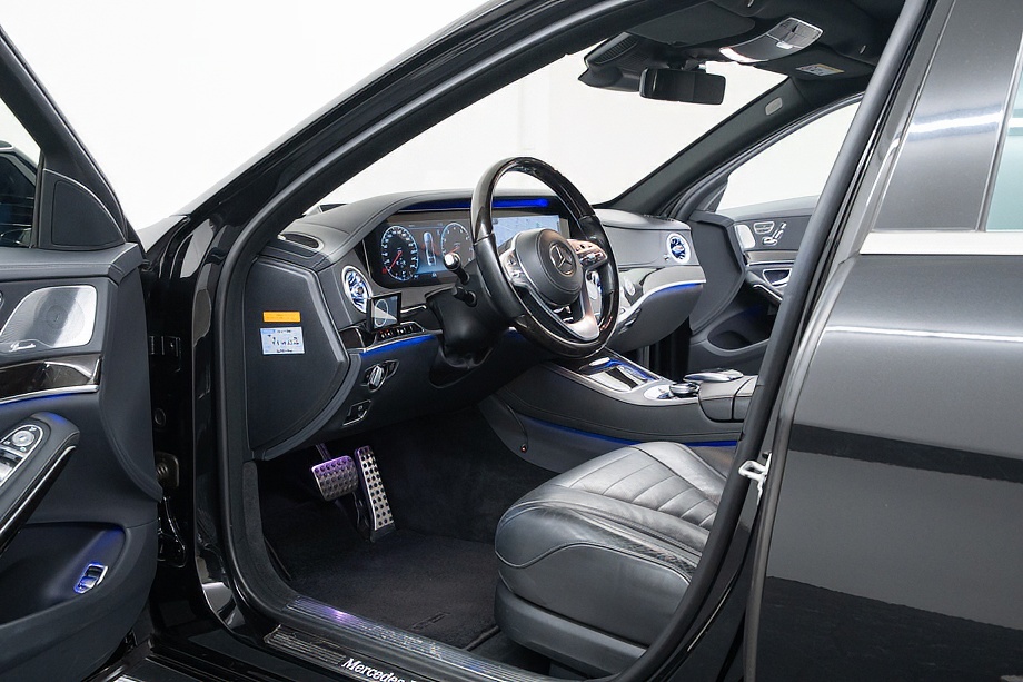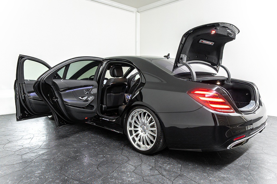 ベンツ Sクラス S560 4マチックロング AMGライン 正規ディーラー車 左ハンドル ロルフハルトゲコンプリートカー/21インチアルミホイール パノラマサンルーフ ブラックレザーシート/ヒーター/クーラー ブルメスターサウンド 360°カメラ ヘッドアップディスプレイ レーダーセーフティパッケージ オブシディアンブラック平成29年8月