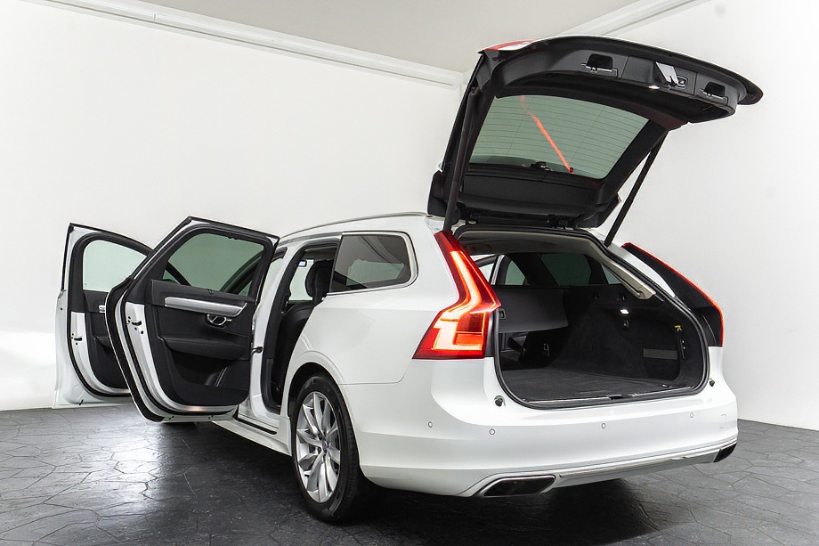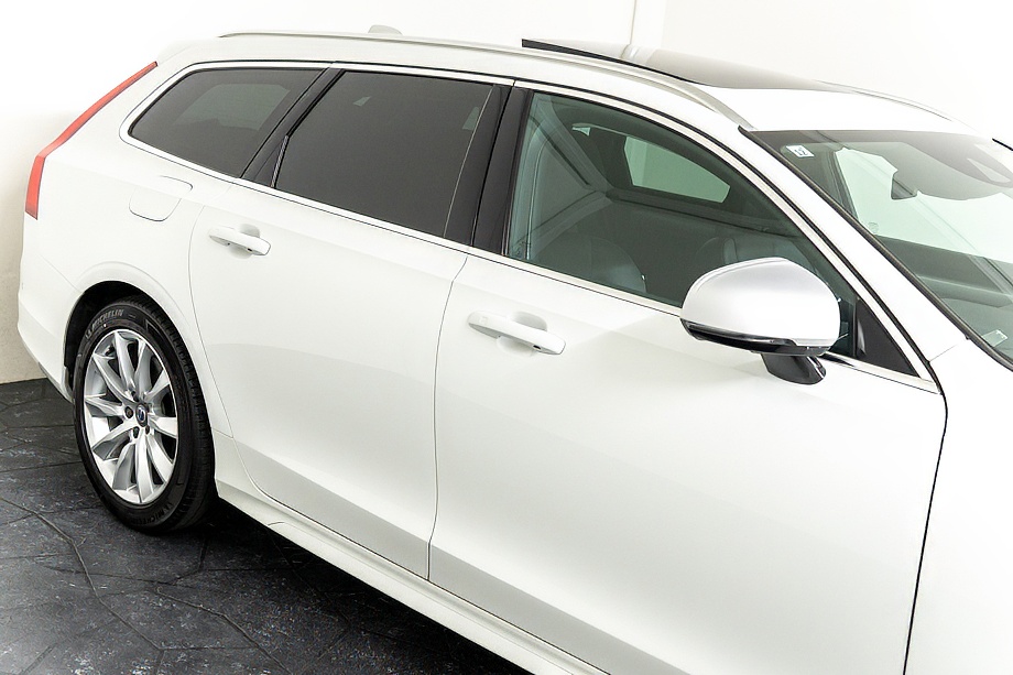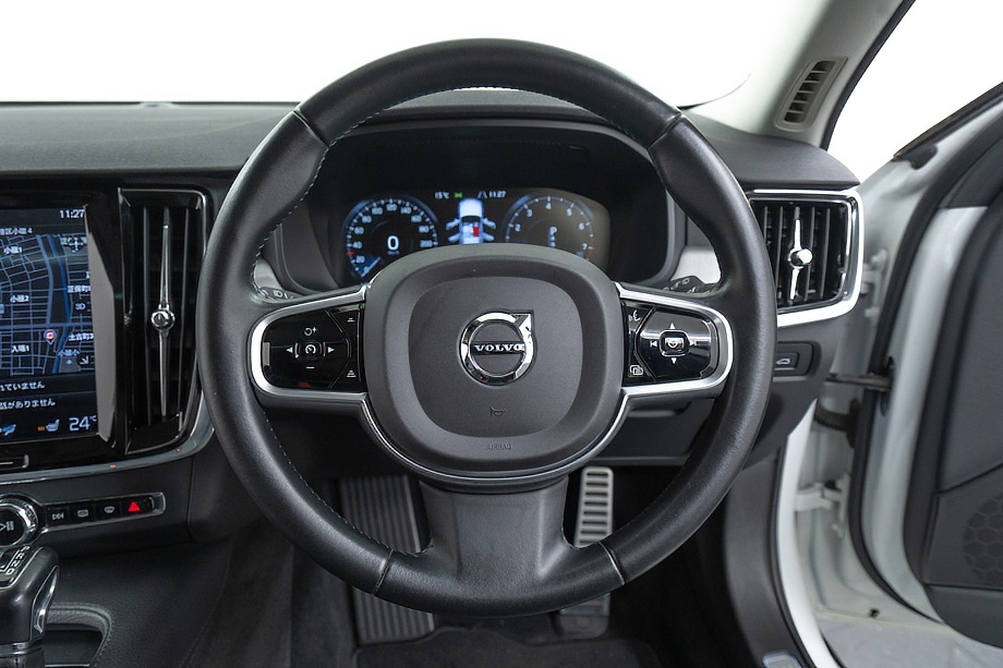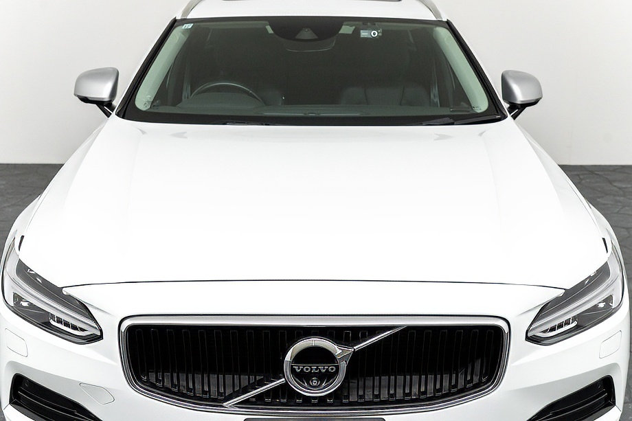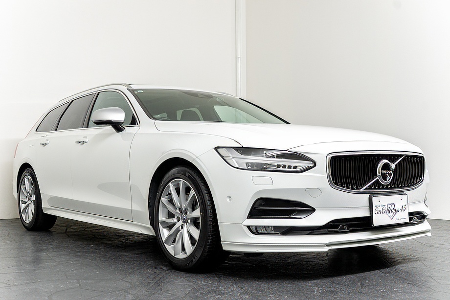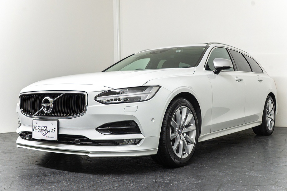 ボルボ V90 T5 モメンタム 正規ディーラー車 パノラマサンルーフ 純正18インチアルミホイール LEDヘッドライト パワートランク ブラックレザー/シートヒーター アダプティブクルーズコントロール スマートキー 純正ナビ/フルセグTV 360°カメラ アイスホワイト平成29年12月