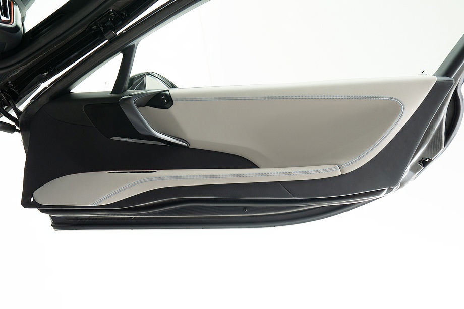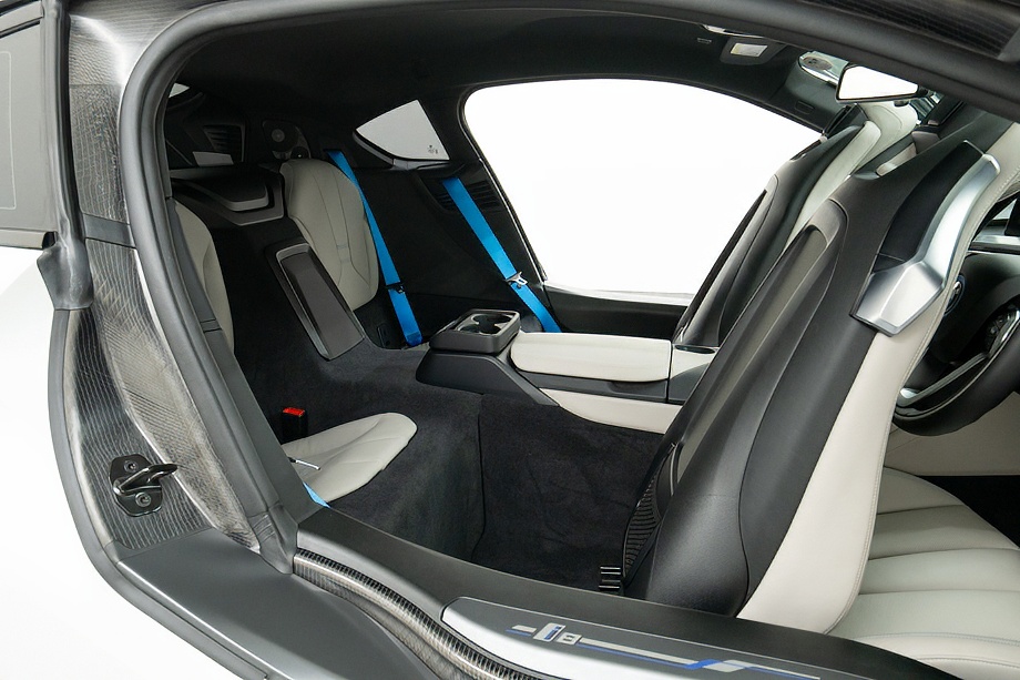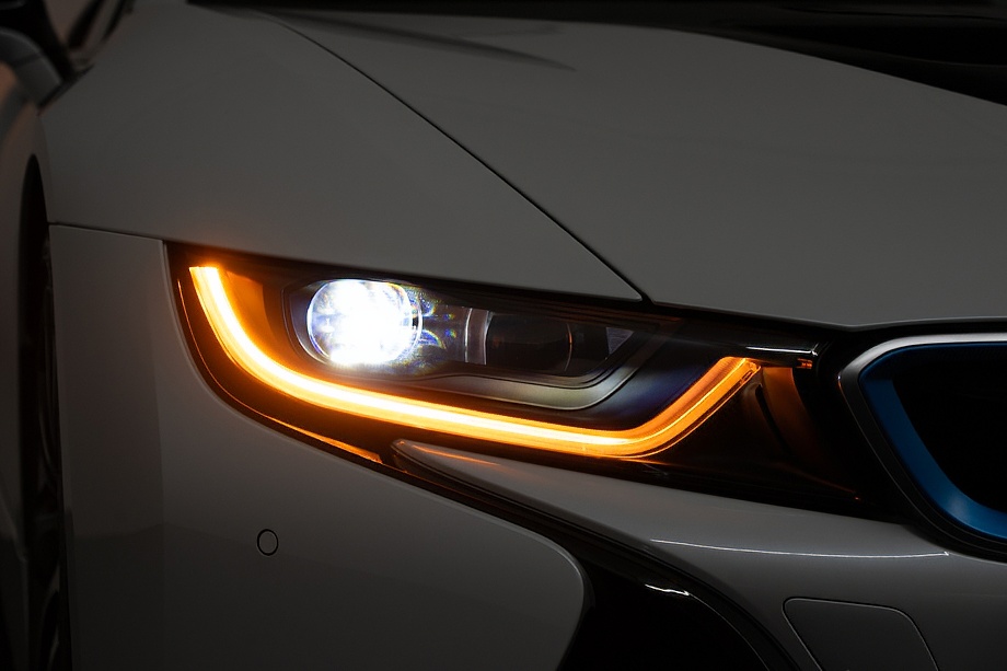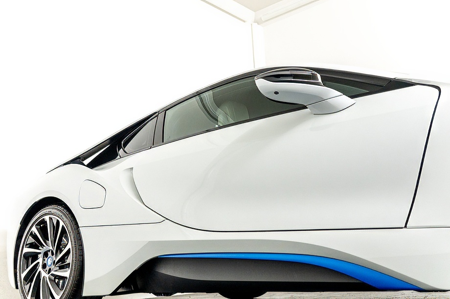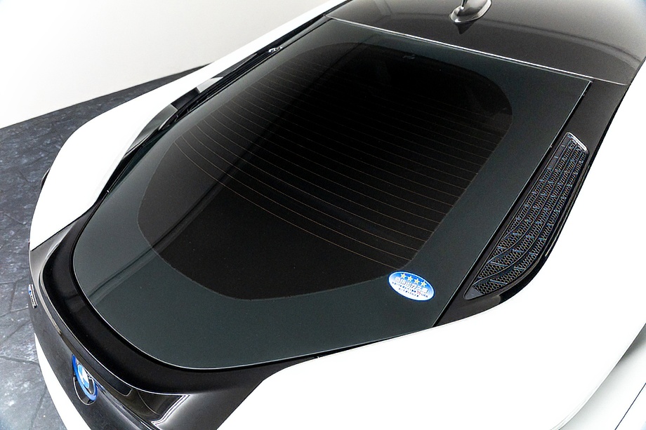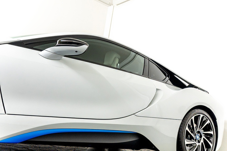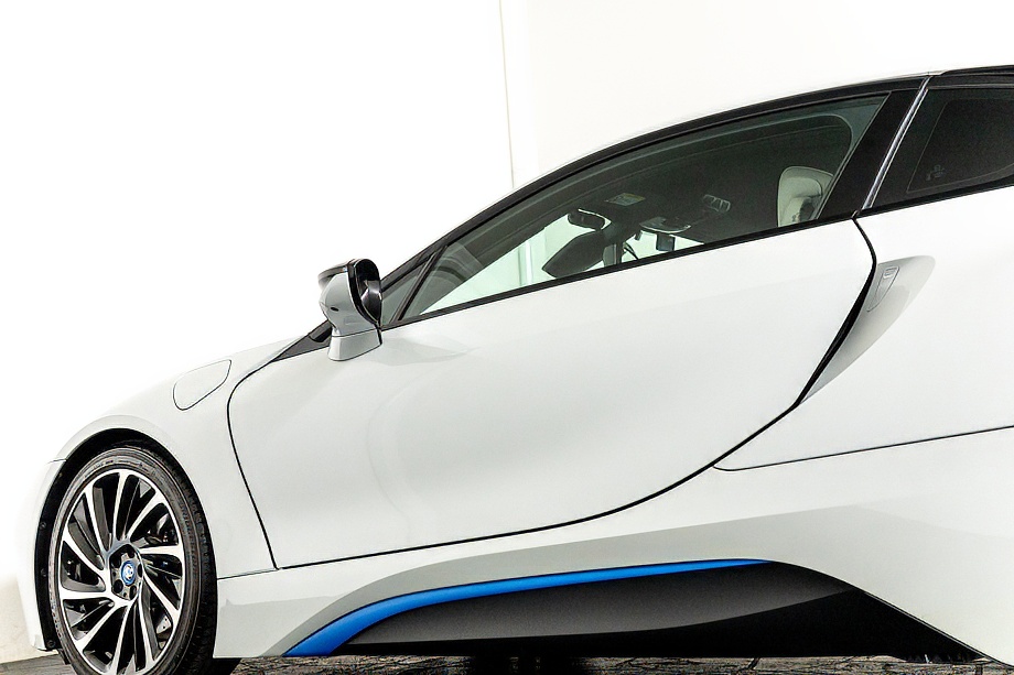 i8のフロントビューは極めて低くかつワイドであり、優れた俊敏性と卓越したエアロダイナミクスを物語ります!!ハイグロスブラック仕上げの特徴的なデザイン「ブラックベルト」は、ボンネット中央部でV字型に浮き上がり、U字型のLEDテールライトを備えたリアエンドへと繋がり、それはエクステリア一連のデザインを視覚的に締めくくる印象的なアクセントになっております!!