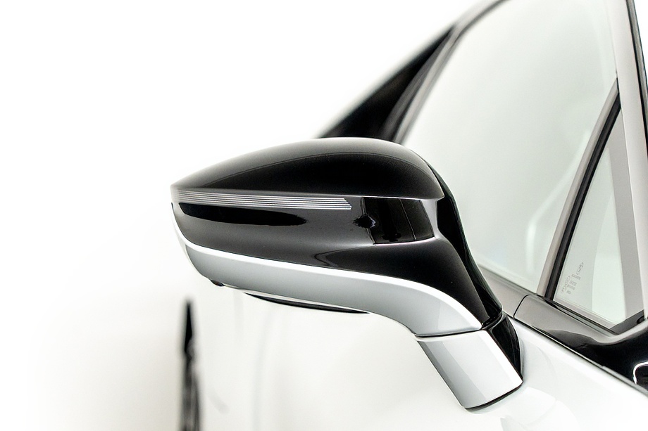 エクステリアでは、先進的な鋭いLEDヘッドライトに加え、かなりスポーティーで流動的なデザインのボディシルエットで、これから爽快に走り抜ける姿を、鮮明に想像できてしまうような印象を与えてくれます!!大変人気の高いクリスタルホワイトパールエフェクトを身に纏い、ブルーアクセントを加えたボディは、個性際立つスタイリングで魅了する究極の一台に仕立て上げております!!