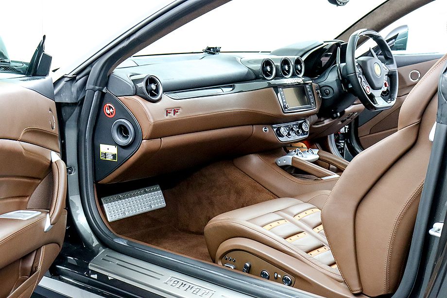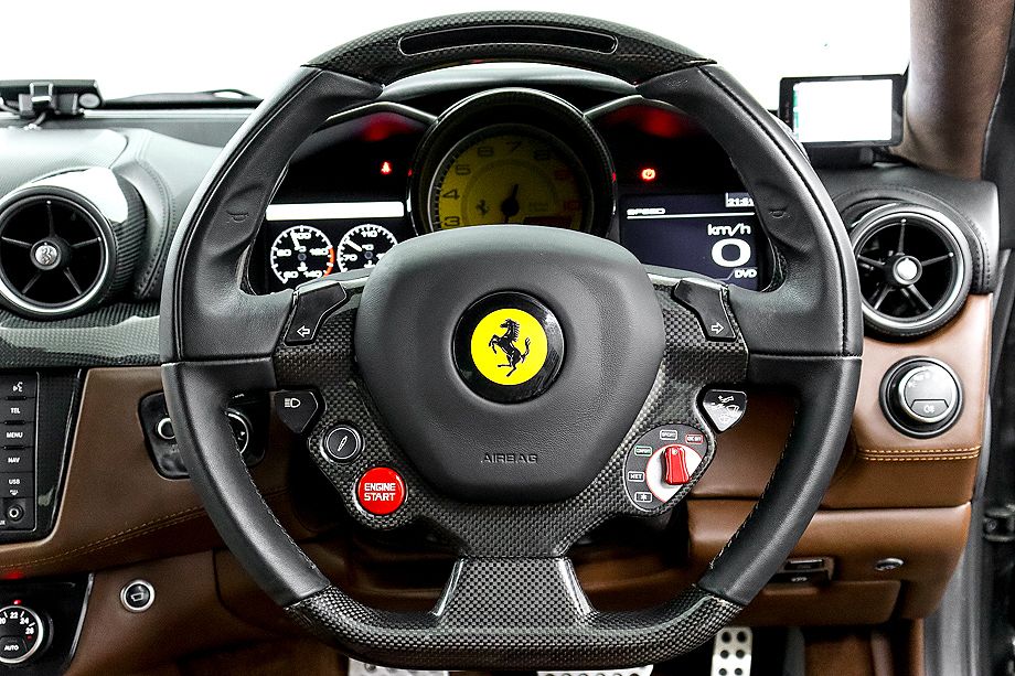 フェラーリ FF 正規ディーラー車 右ハンドル カーボンLEDステアリング サスペンションリフター デイトナシート カラードシートベルト シートヒーター カーボンセラミックブレーキ オプション20インチホイール パワーリアゲート グリジオシルバーストーン平成26年3月