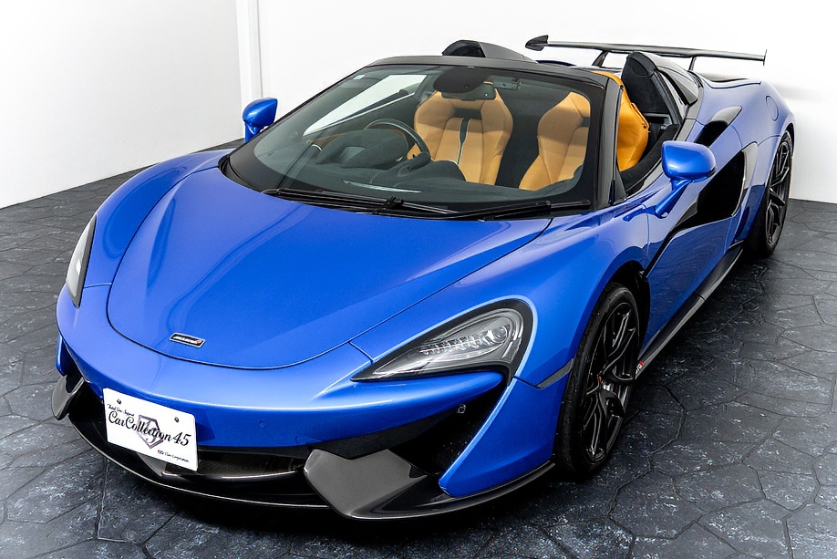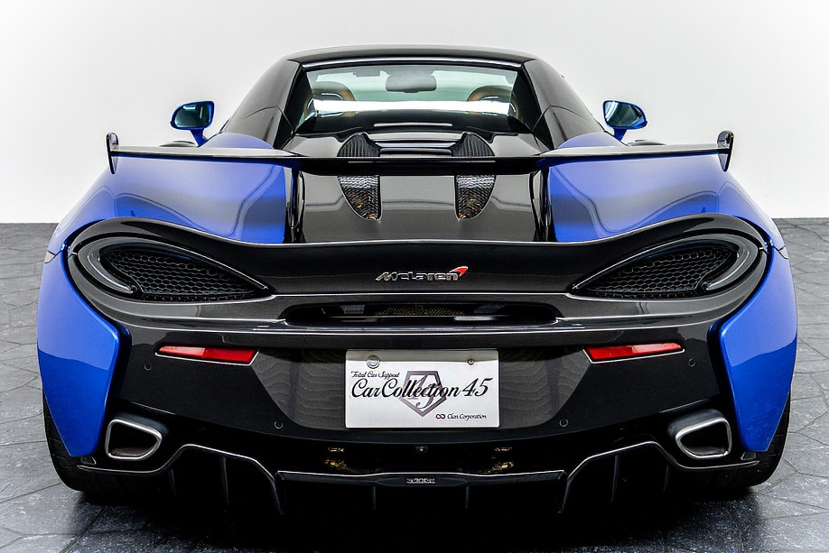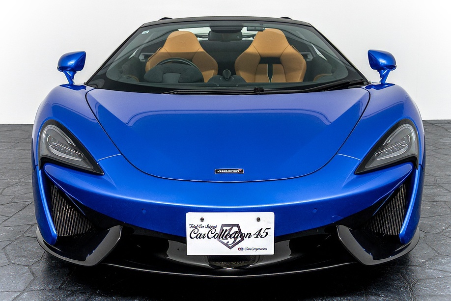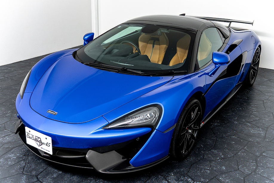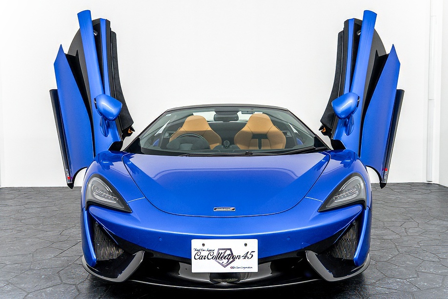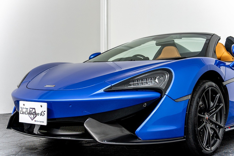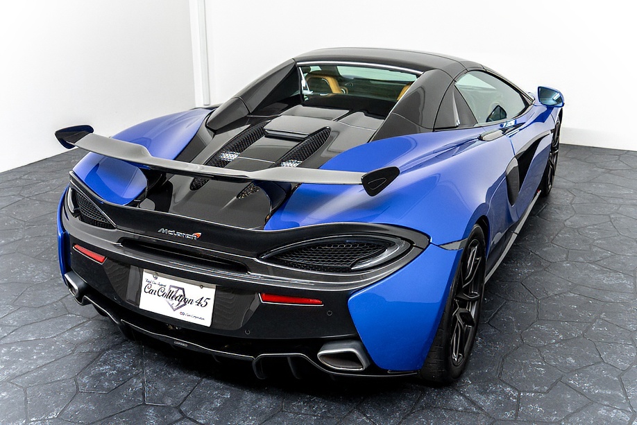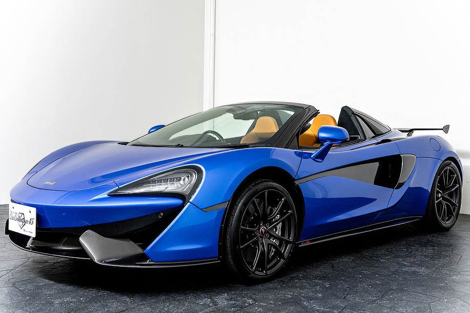 マクラーレン 570Sスパイダー 正規ディーラー車 右ハンドル MSOハイダウンフォースキット スポーツエグゾースト By Mclarenデザイナーインテリア カーボンインテリアパック セキュリティパック ラグジュアリーパック フロントリフティング フィニッシャーステルス純正F19/R20ホイール カーボンセラミックブレーキ シルバーキャリパー B&W12スピーカー ヴェガブルー(エリートペイント)/ダークパラジウム(ルーフ)平成29年9月