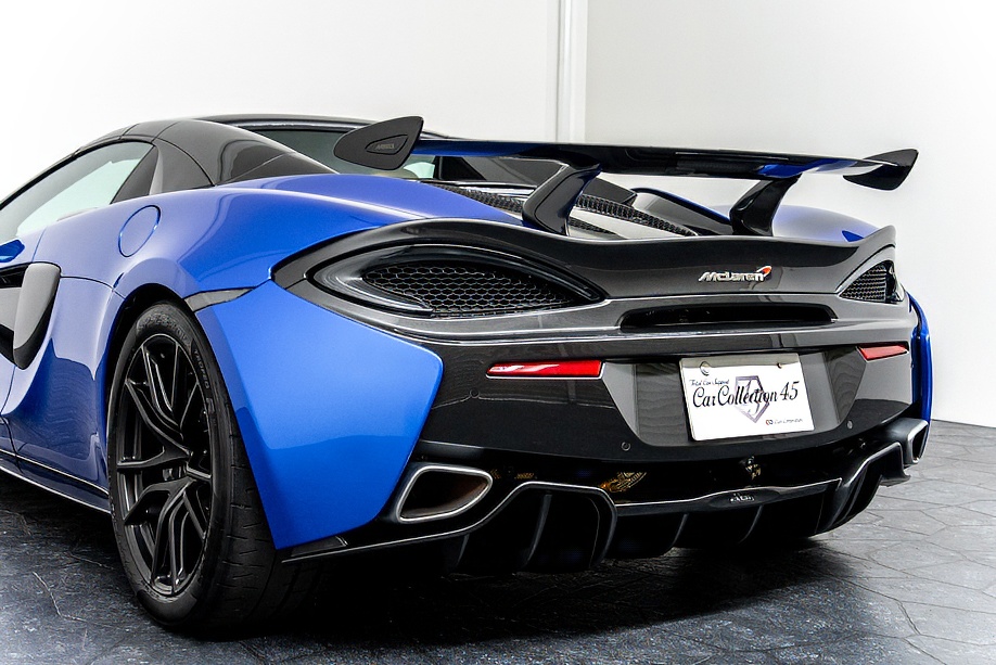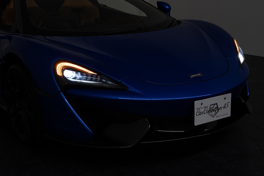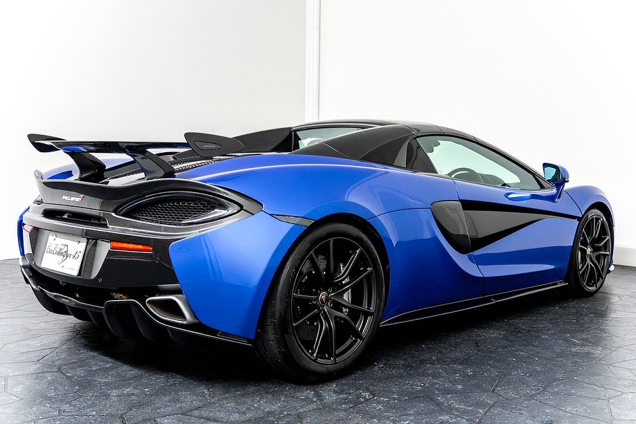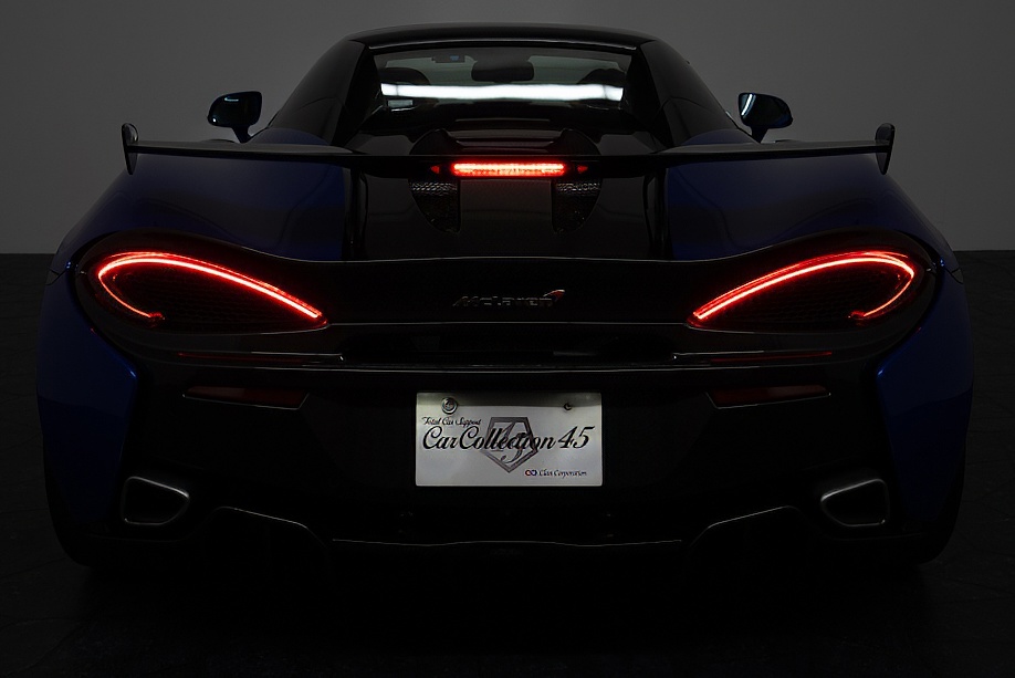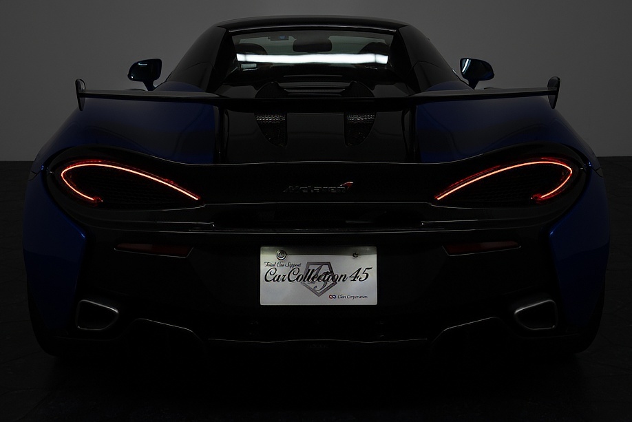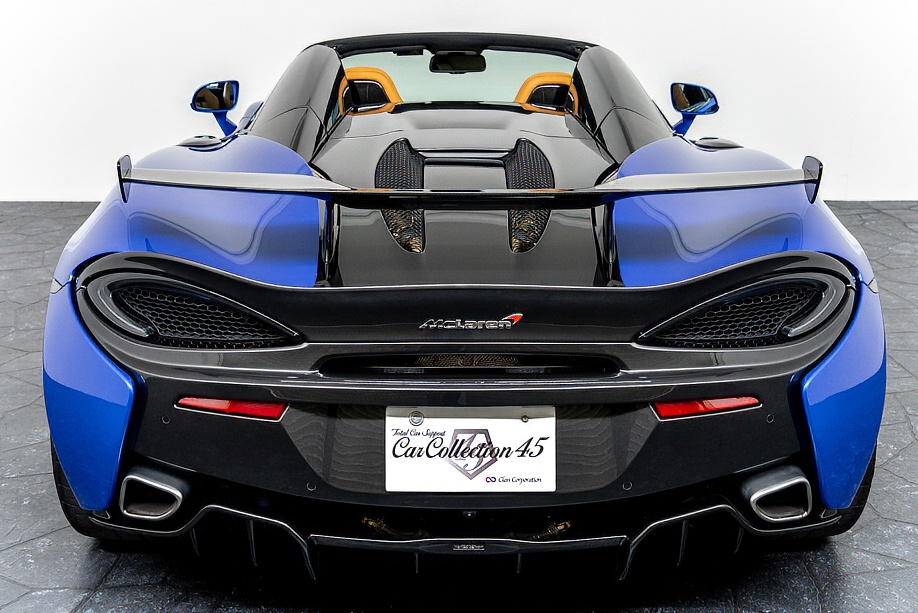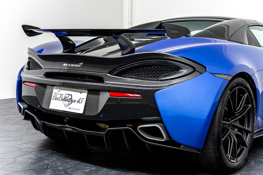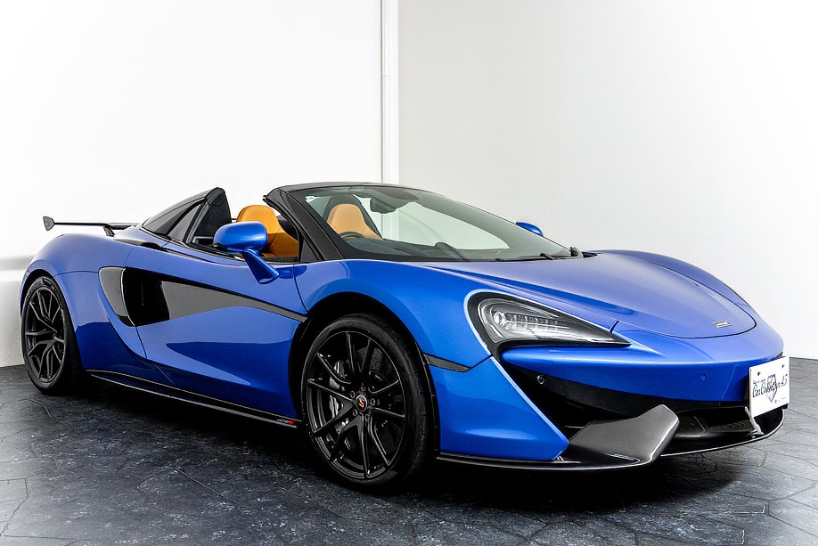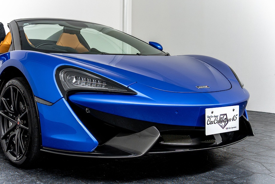 マクラーレン 570Sスパイダー 正規ディーラー車 右ハンドル MSOハイダウンフォースキット スポーツエグゾースト By Mclarenデザイナーインテリア カーボンインテリアパック セキュリティパック ラグジュアリーパック フロントリフティング フィニッシャーステルス純正F19/R20ホイール カーボンセラミックブレーキ シルバーキャリパー B&W12スピーカー ヴェガブルー(エリートペイント)/ダークパラジウム(ルーフ)平成29年9月