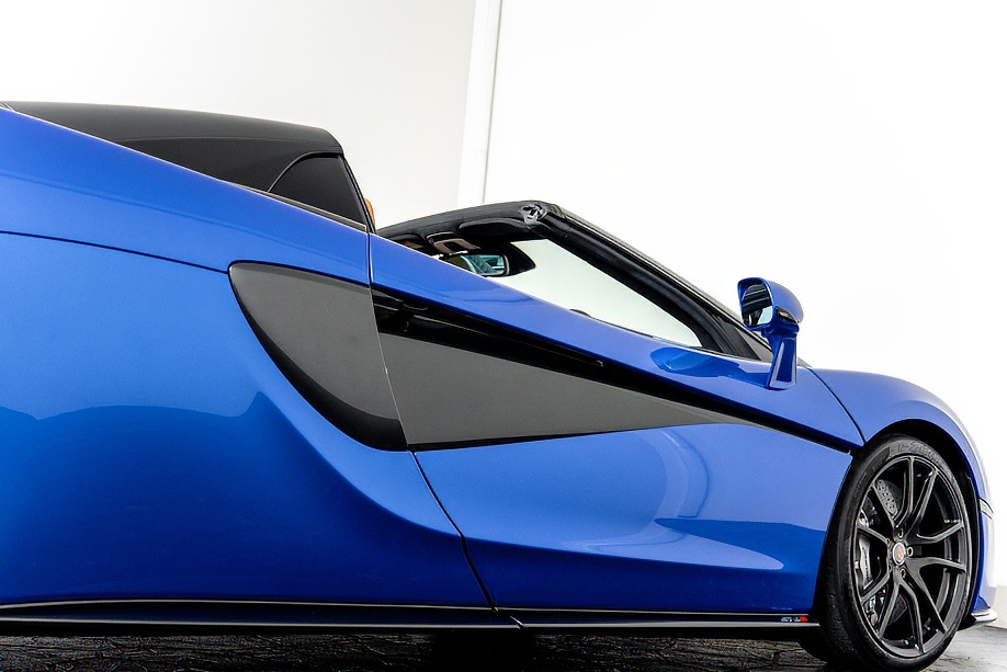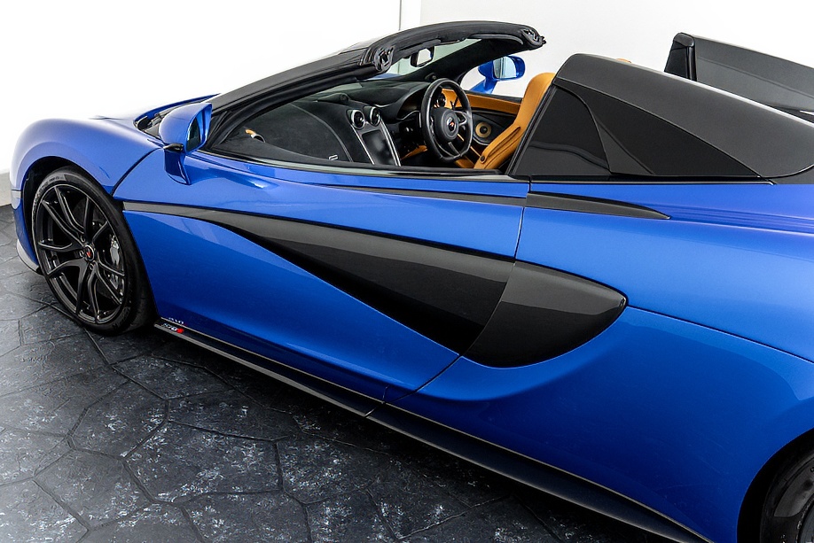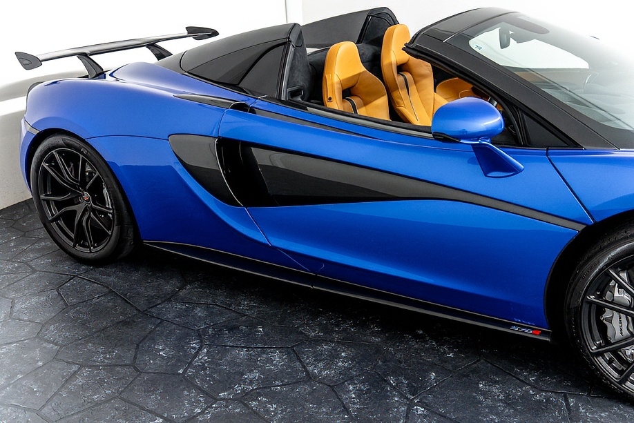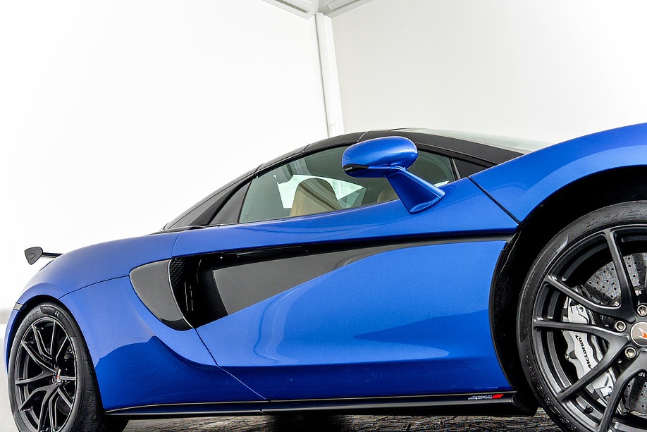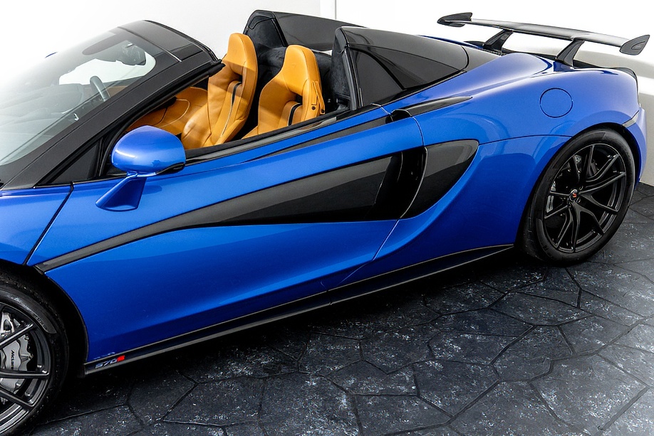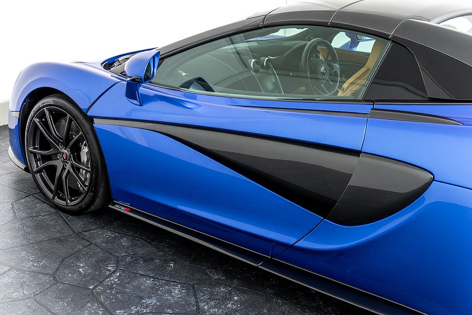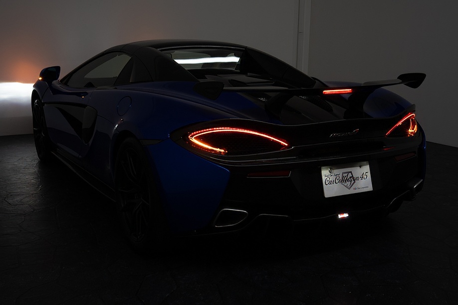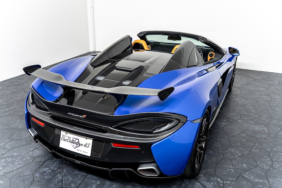 マクラーレン 570Sスパイダー 正規ディーラー車 右ハンドル MSOハイダウンフォースキット スポーツエグゾースト By Mclarenデザイナーインテリア カーボンインテリアパック セキュリティパック ラグジュアリーパック フロントリフティング フィニッシャーステルス純正F19/R20ホイール カーボンセラミックブレーキ シルバーキャリパー B&W12スピーカー ヴェガブルー(エリートペイント)/ダークパラジウム(ルーフ)平成29年9月