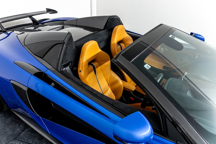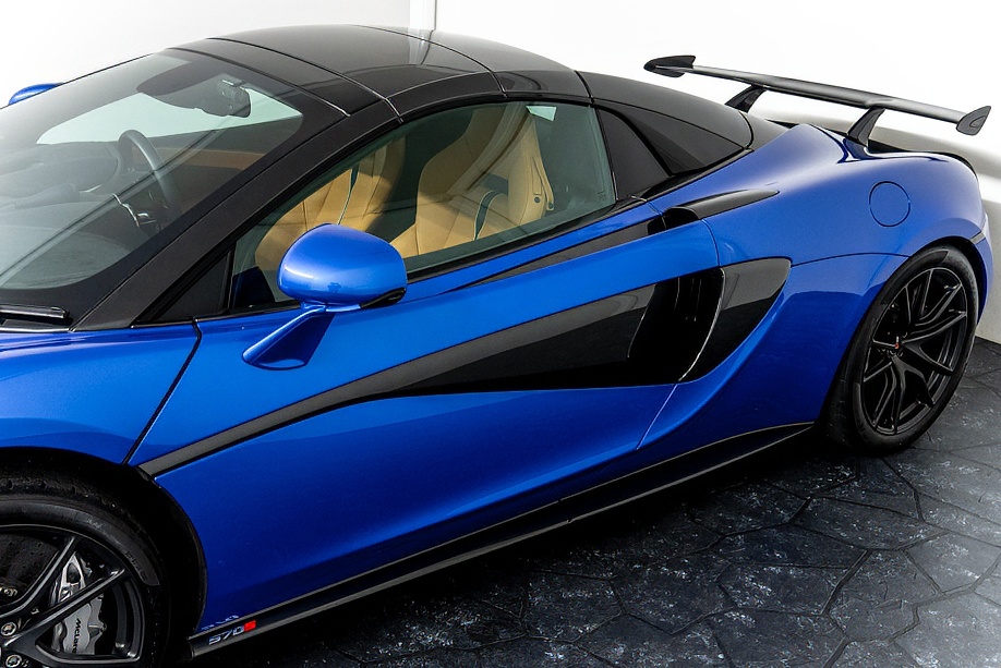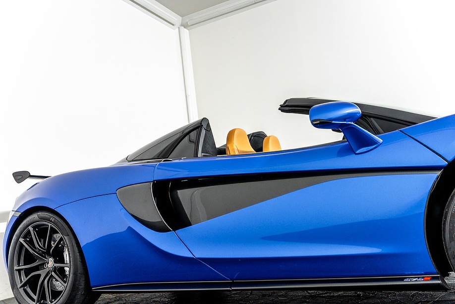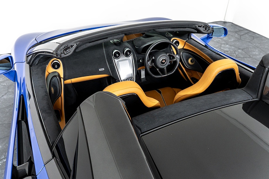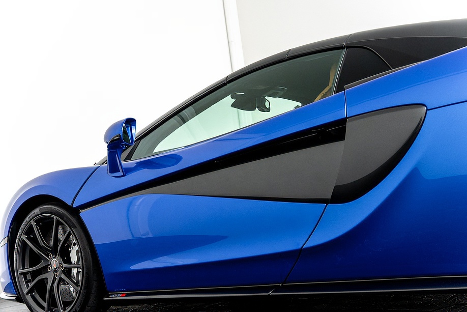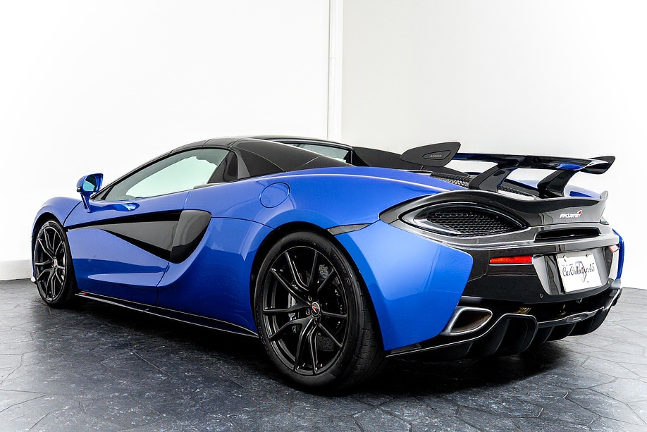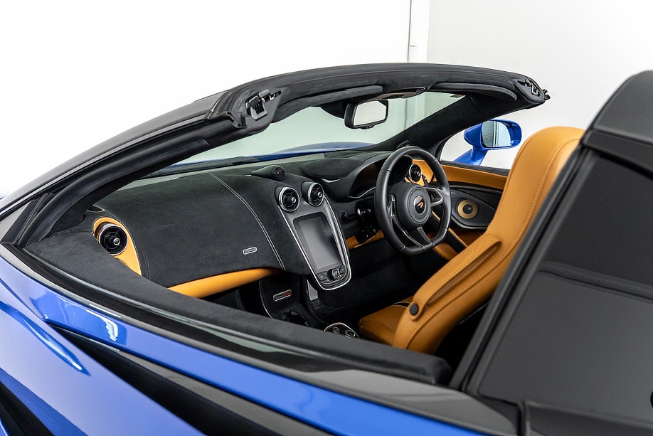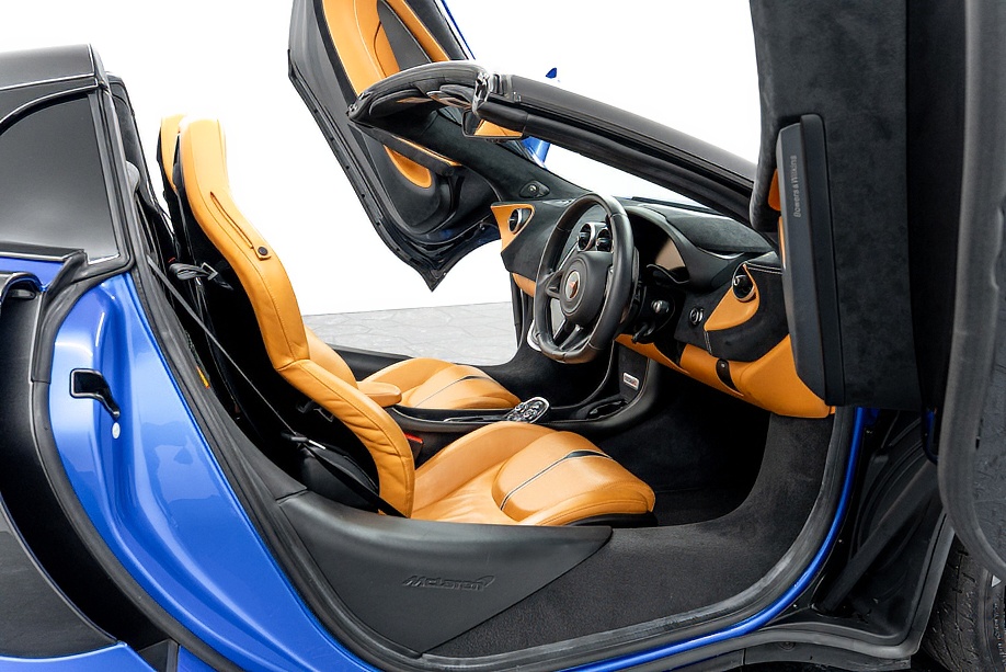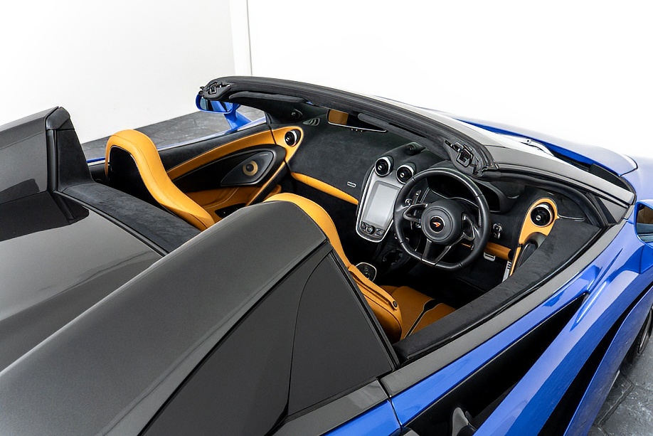マクラーレン 570Sスパイダー 正規ディーラー車 右ハンドル MSOハイダウンフォースキット スポーツエグゾースト By Mclarenデザイナーインテリア カーボンインテリアパック セキュリティパック ラグジュアリーパック フロントリフティング フィニッシャーステルス純正F19/R20ホイール カーボンセラミックブレーキ シルバーキャリパー B&W12スピーカー ヴェガブルー(エリートペイント)/ダークパラジウム(ルーフ)平成29年9月