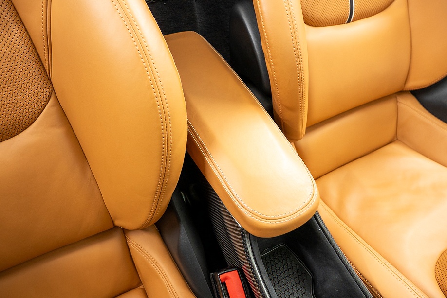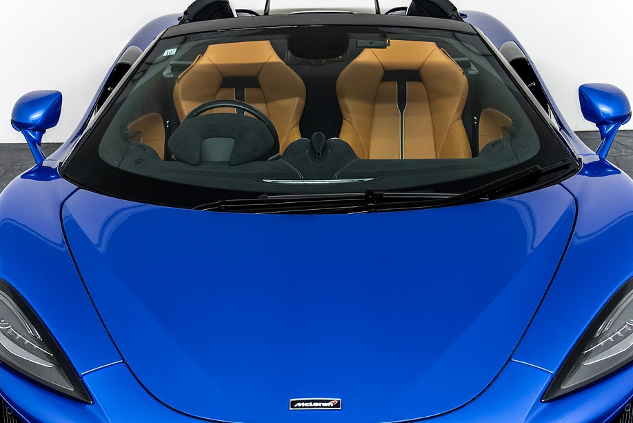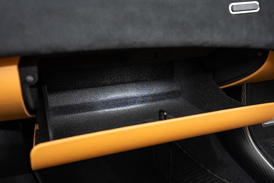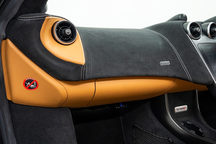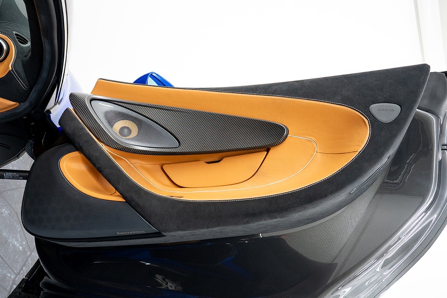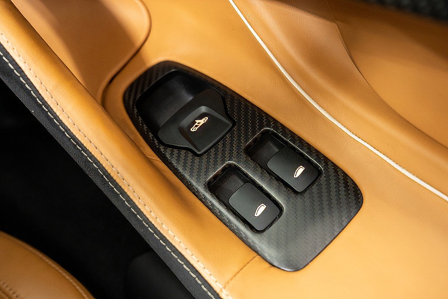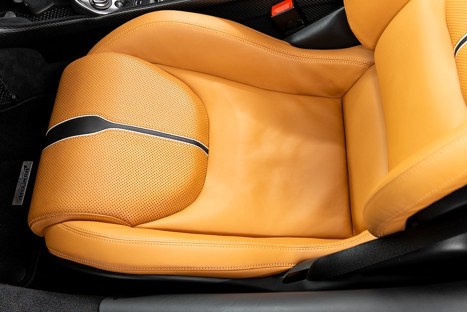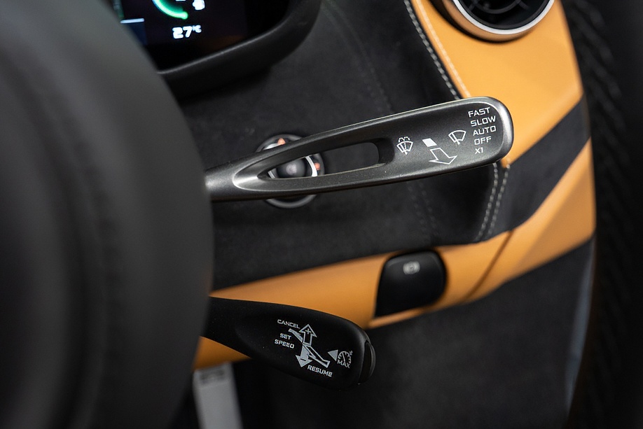 インテリアは “By McLaren Designer Interior” による特別仕立て。キャメルとブラック2トーンのコントラスト、ナッパレザーとアルカンターラのコンビネーション、そして手縫いステッチ……細部まで丁寧に作り込まれたキャビンは、乗り込んだ瞬間に感じる“高級感と個性”が格別です。
