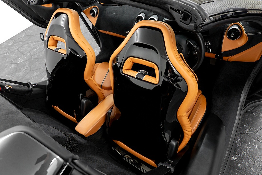 足元には、ステルスフィニッシュのスーパーライトウェイト鍛造ホイール。カーボンセラミックブレーキとシルバーのスペシャルキャリパーが、高い制動力と洗練された雰囲気を両立しています。“走りのための装備が、見た目の美しさにもつながっている”のがマクラーレンらしいですね!