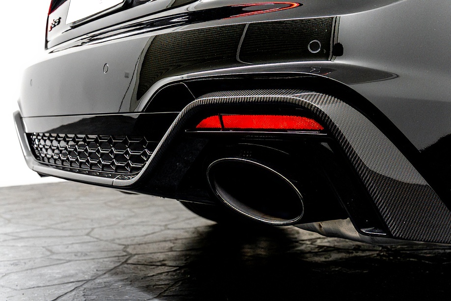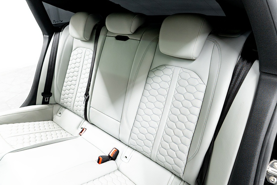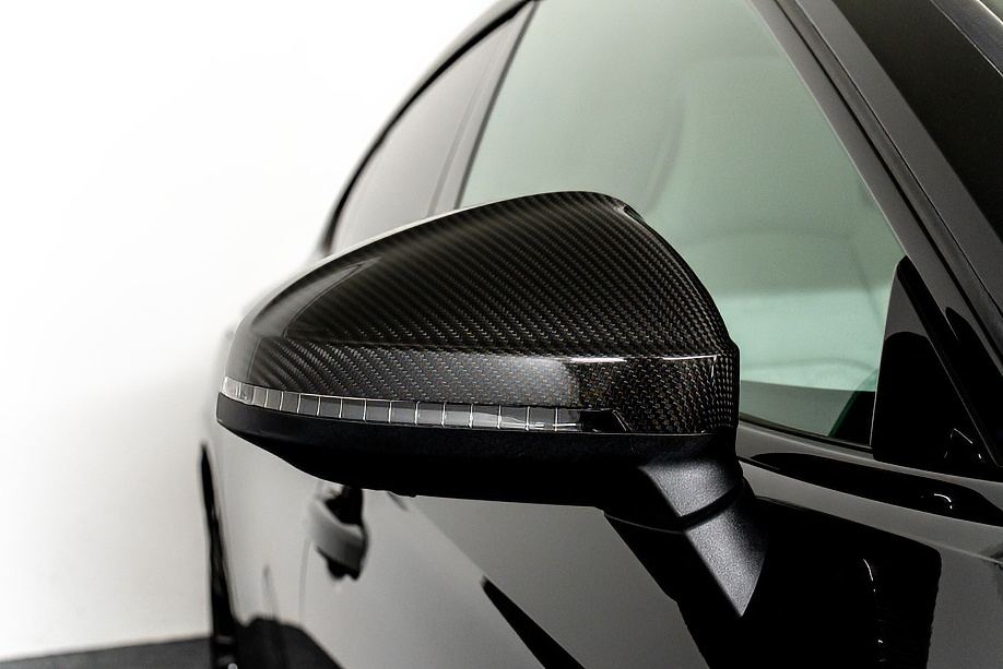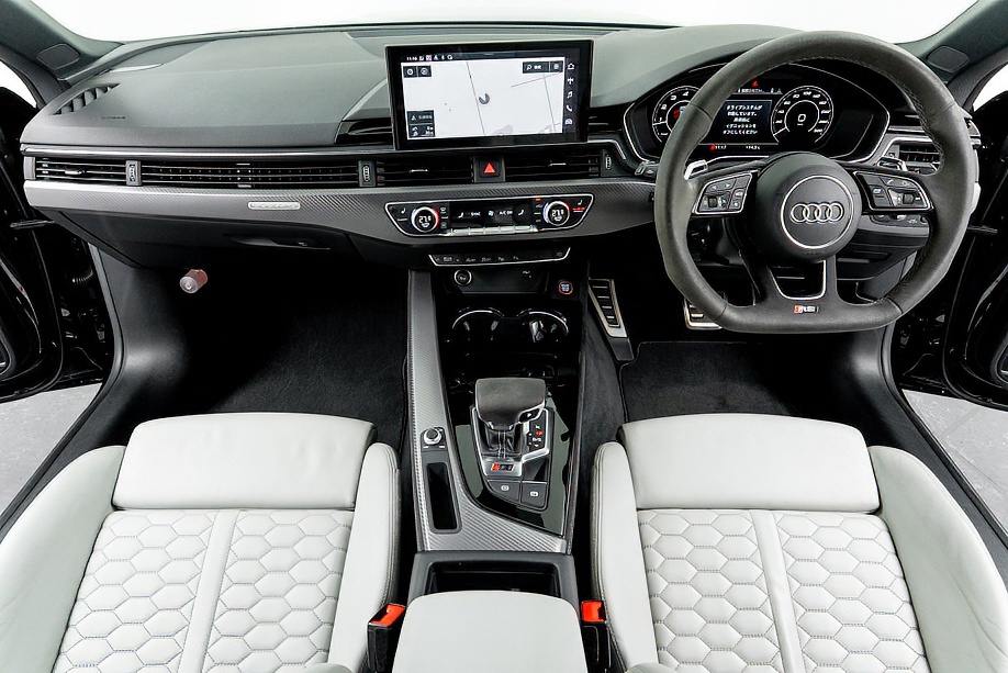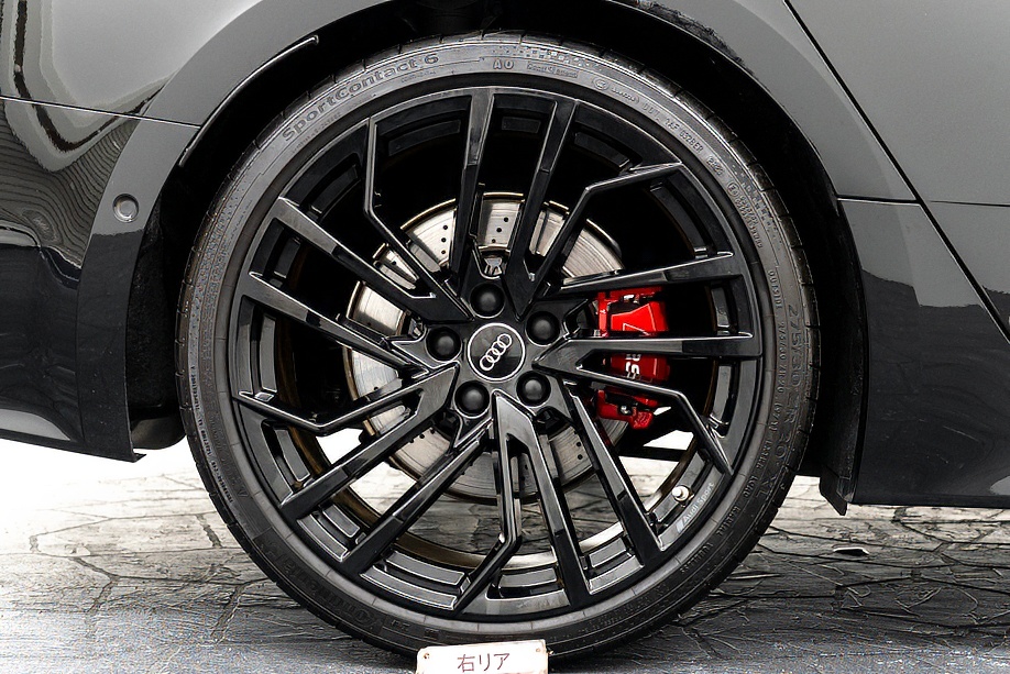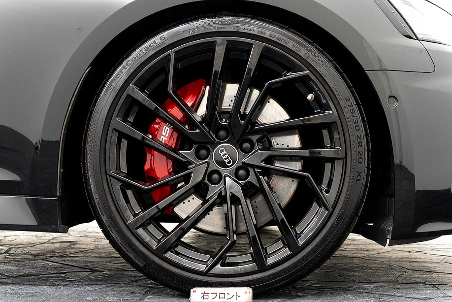 今回ご紹介の車両は1オーナーの正規ディーラー車で、マイナーチェンジ後モデル。エクステリアは精悍さを増したフロントフェイスに、カーボンスタイリングパッケージが組み合わされ、ミトスブラックメタリックの深い艶感と相まって、静かに存在感を主張します。5セグメントスポークデザイングロスブラック20インチ純正ホイールとレッドキャリパーの組み合わせも、RSらしい高揚感を演出しています。
