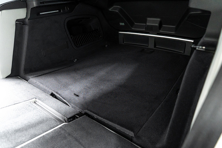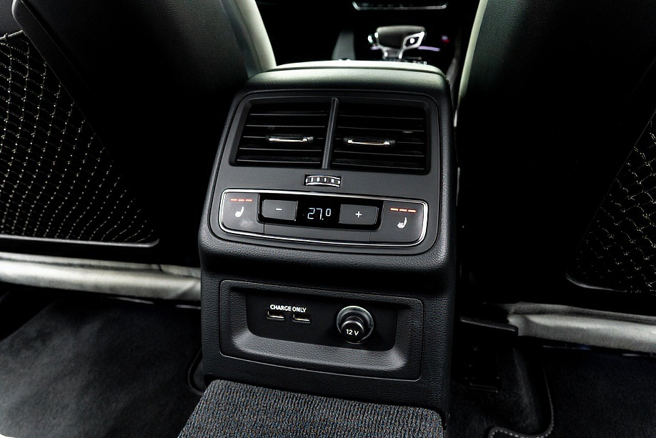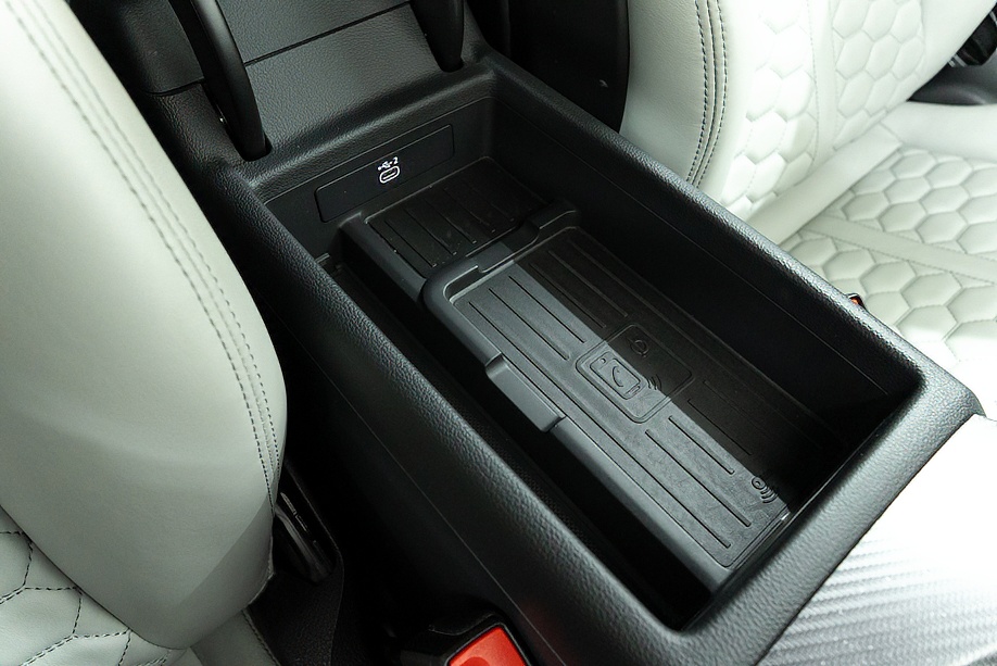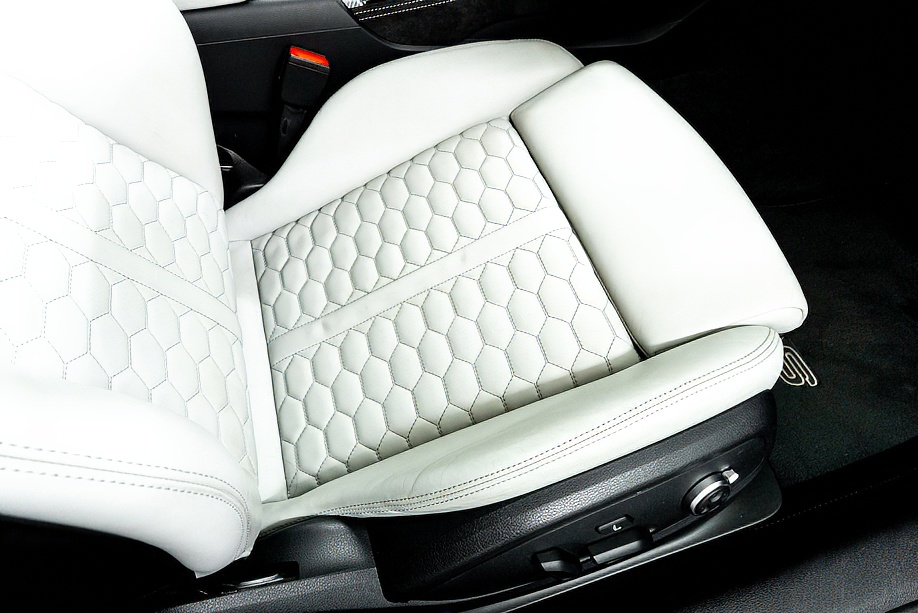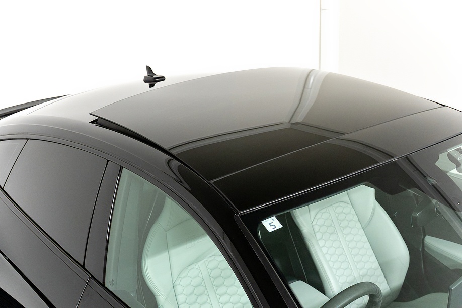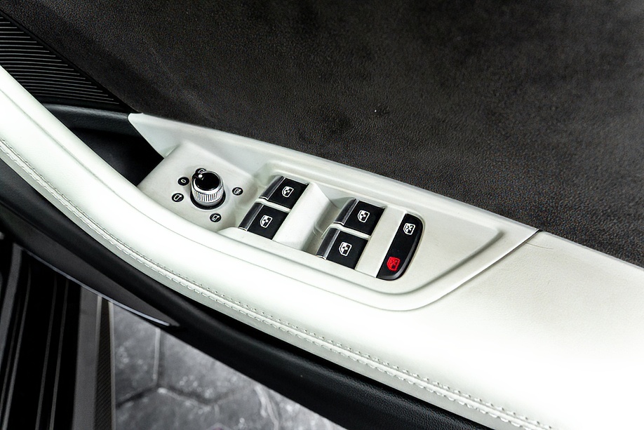 今回ご紹介の車両は1オーナーの正規ディーラー車で、マイナーチェンジ後モデル。エクステリアは精悍さを増したフロントフェイスに、カーボンスタイリングパッケージが組み合わされ、ミトスブラックメタリックの深い艶感と相まって、静かに存在感を主張します。5セグメントスポークデザイングロスブラック20インチ純正ホイールとレッドキャリパーの組み合わせも、RSらしい高揚感を演出しています。