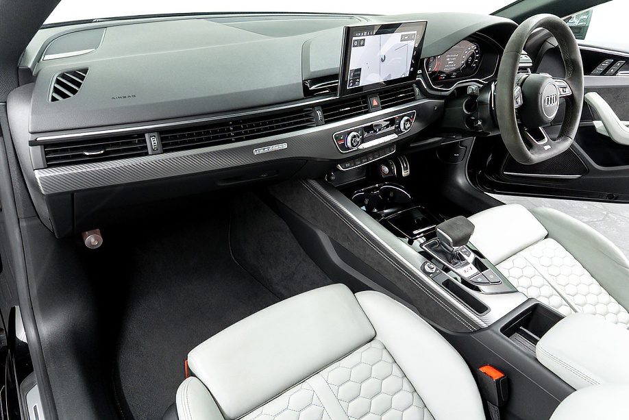 quattroによるフルタイム4WDと8速ティプトロニックの組み合わせは、どんな路面でも安心感があり、高速域での安定性はまさにアウディの真骨頂。スポーツディファレンシャルを備えたシャシーは、パワーを無駄なく路面に伝え、ドライバーに自然な一体感をもたらします。速いのに、怖さがない。この感覚こそRS5の大きなベネフィットです。