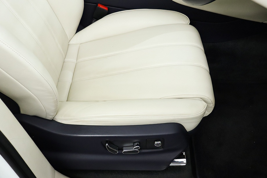 エクステリアは、上質さを際立たせるグラッシャーホワイト。彫刻のように張りのあるボディラインは、静かに佇んでいるだけでも只者ではない雰囲気を放ちます。5ツインスポークのアルミホイールにブラックカラードキャリパーを組み合わせることで、エレガンスの中に確かなスポーティさも感じさせてくれます。