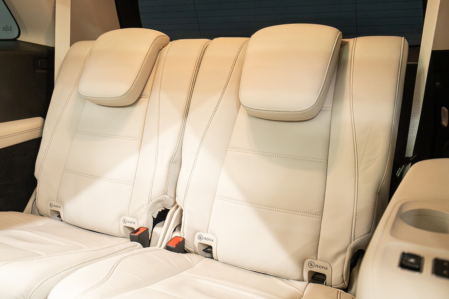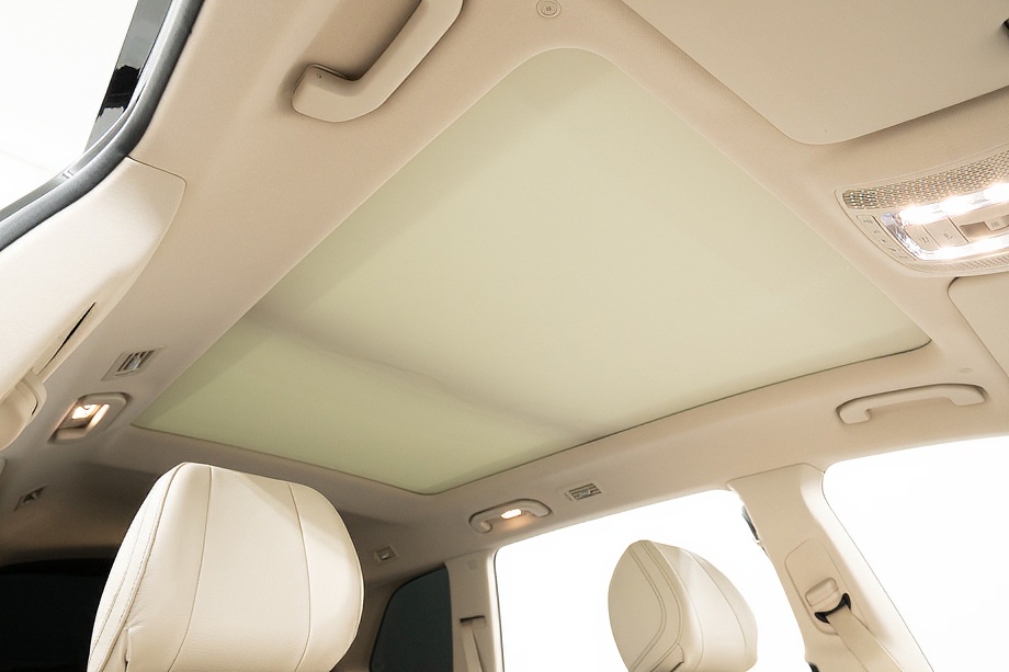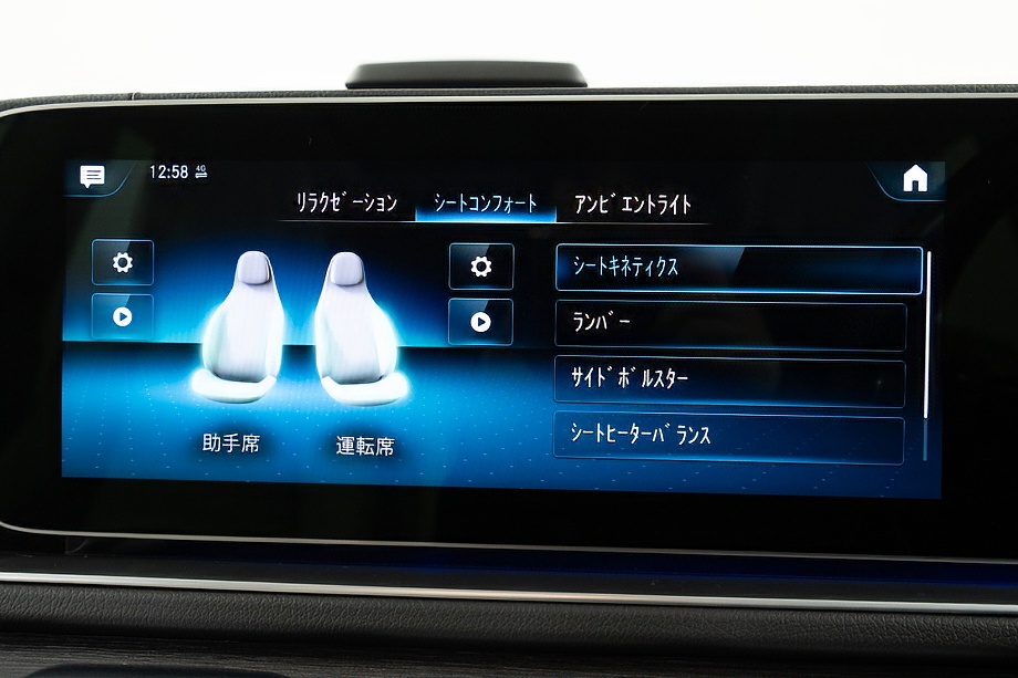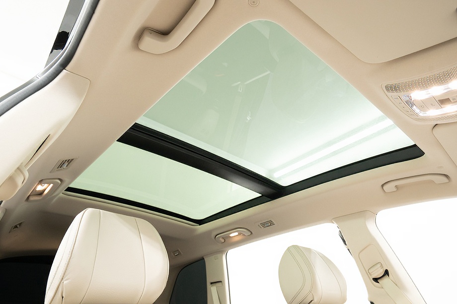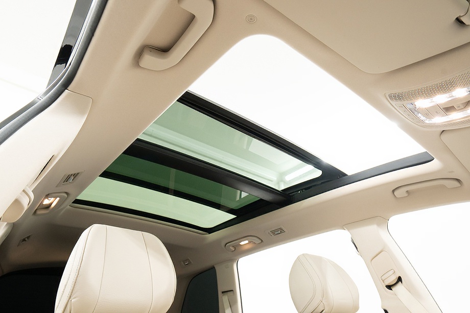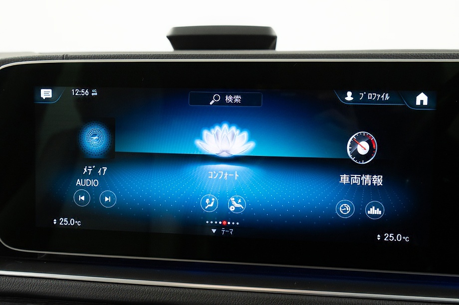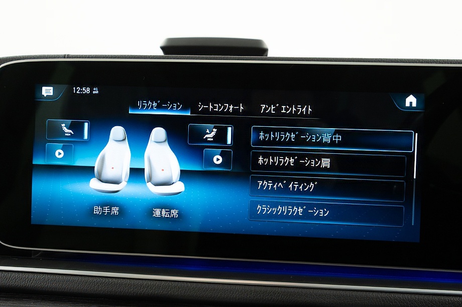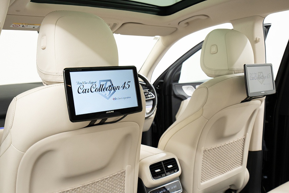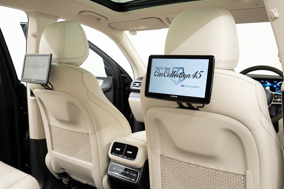 室内に足を踏み入れると、マキアートベージュのレザーシートが柔らかく包み込み、シートヒーターとベンチレーション機能により、季節を問わず快適なドライブを実現。長距離でも疲れにくく、家族や友人との時間をより豊かにしてくれます。パノラミックサンルーフは室内に自然光を取り込み、開放感あふれる空間を演出。後席にはアルパイン製モニターが備わっており、映画や音楽を楽しみながらの移動も特別なひとときに変わります。