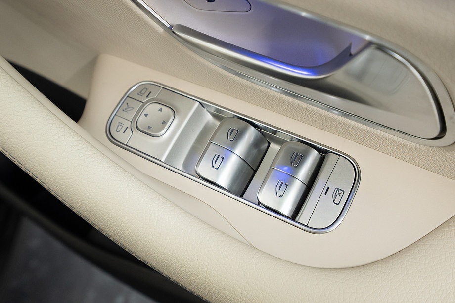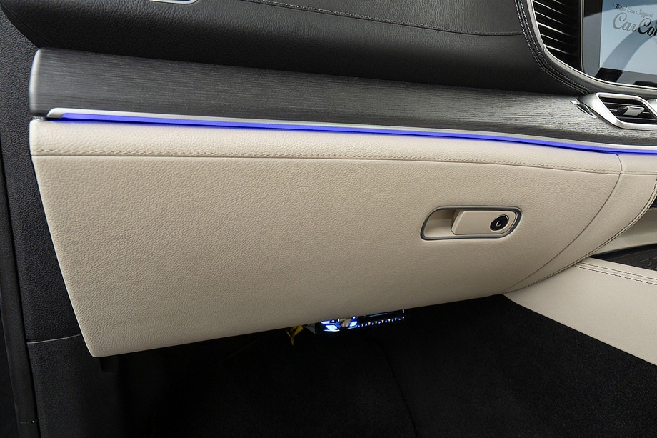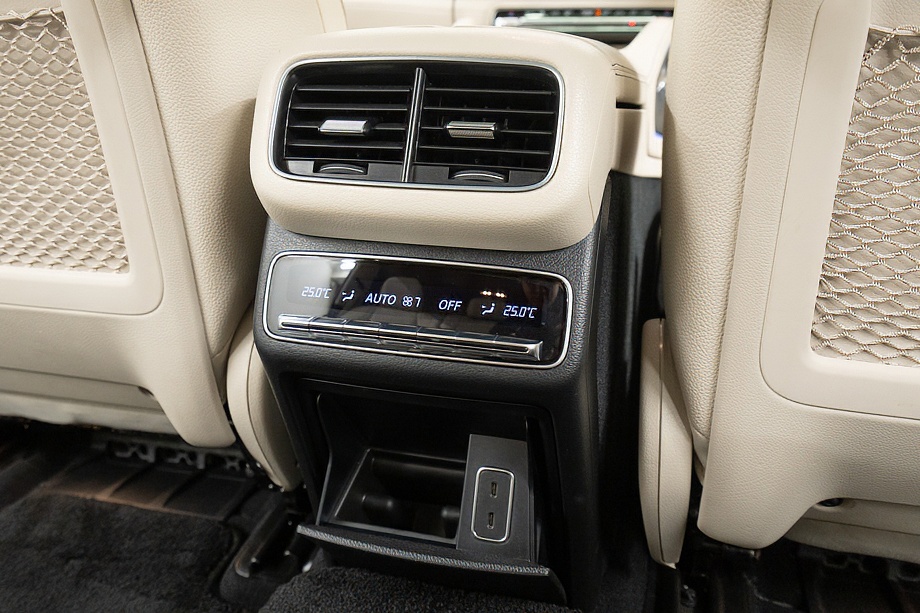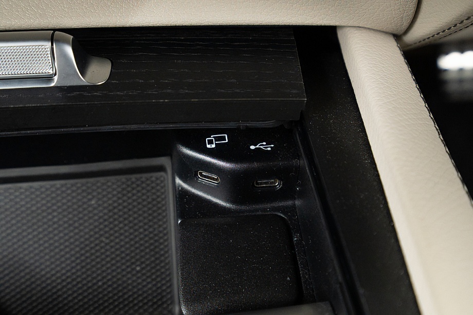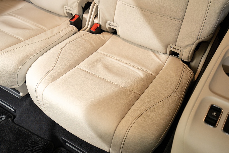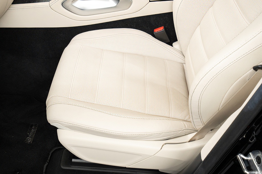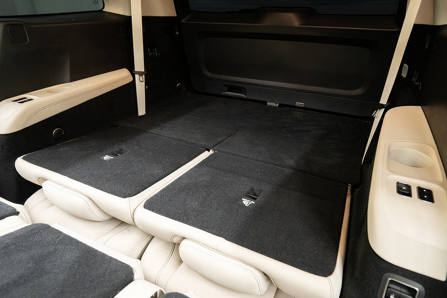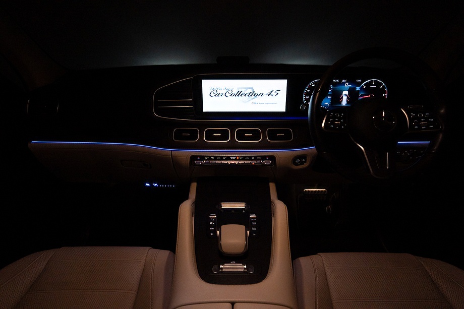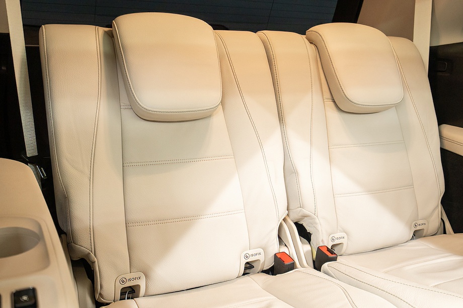 室内に足を踏み入れると、マキアートベージュのレザーシートが柔らかく包み込み、シートヒーターとベンチレーション機能により、季節を問わず快適なドライブを実現。長距離でも疲れにくく、家族や友人との時間をより豊かにしてくれます。パノラミックサンルーフは室内に自然光を取り込み、開放感あふれる空間を演出。後席にはアルパイン製モニターが備わっており、映画や音楽を楽しみながらの移動も特別なひとときに変わります。