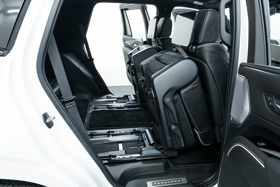 インテリアに一歩足を踏み入れると、ドアの開閉とともに電動ステップが展開され、アンビエントライトがやさしく照らすラグジュアリーな空間が広がります。