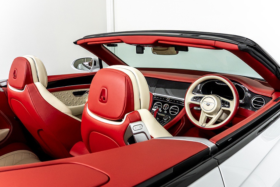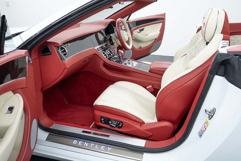 ベントレー コンチネンタルGT コンバーチブル V8マリナー(4WD) 正規ディーラー車 シティ&ツーリングスペック ムードライティングススペック フロントシートコンフォートスペック マリナードライビングスペック ワンオフ可変バルブマフラー カーボンインテリア レッド&アイボリー2トーンレザーインテリア レッドカラードソフトトップ 360° アークティカ令和4年5月
