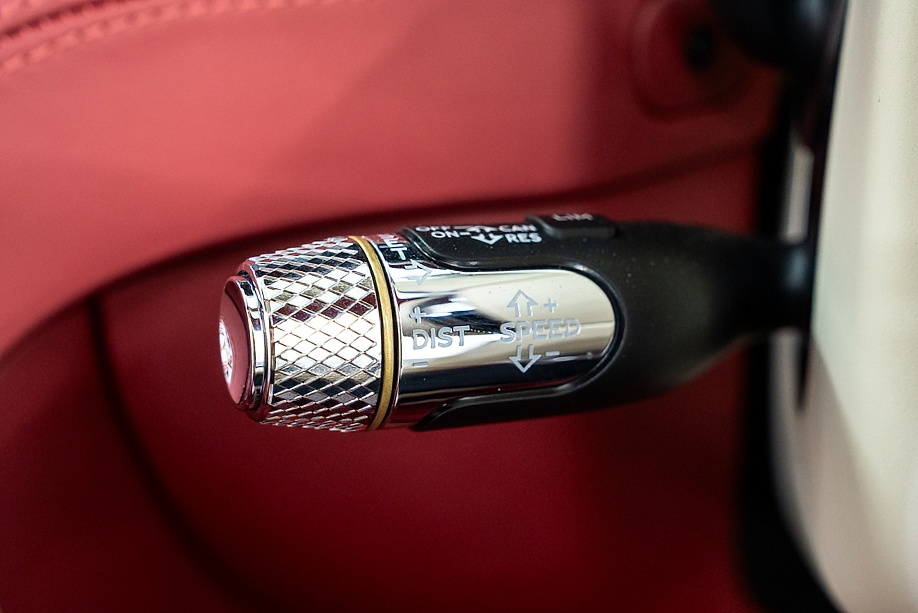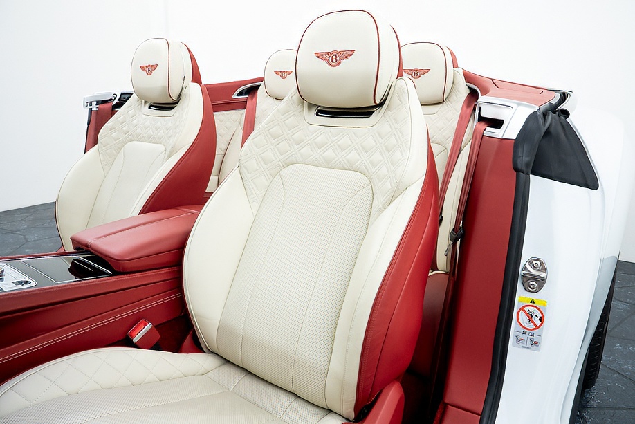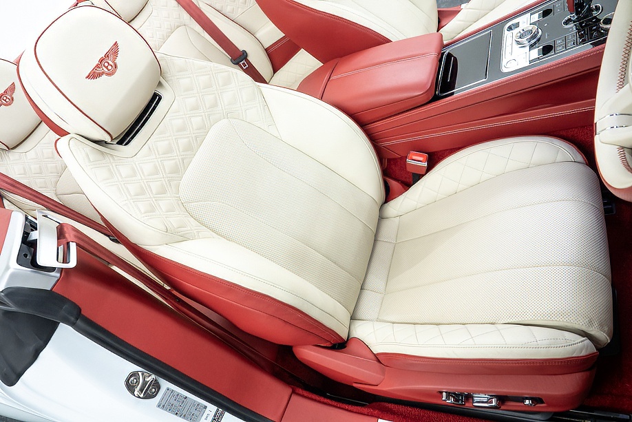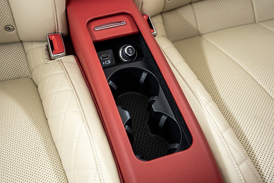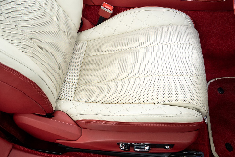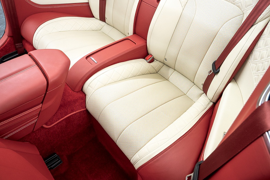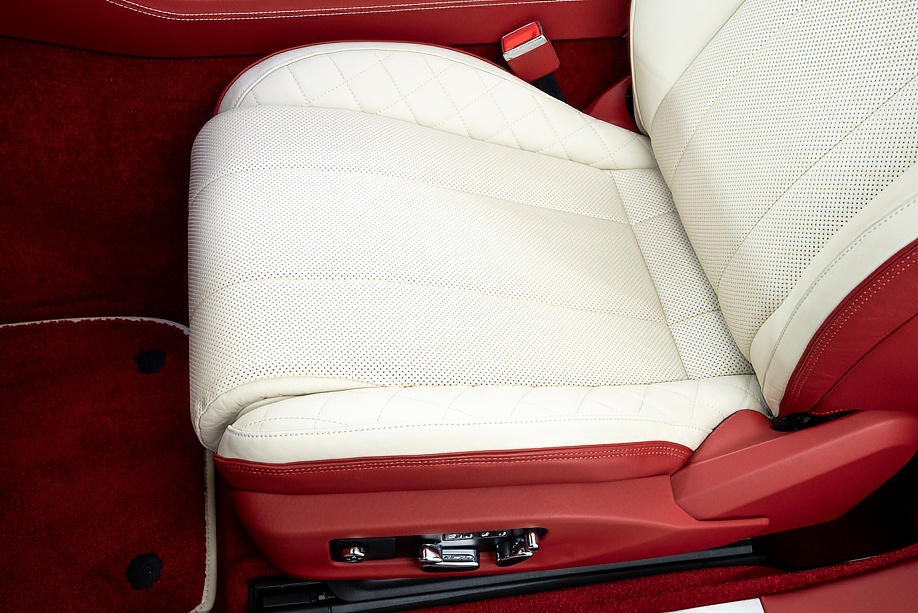 アイボリー&レッドの2トーンレザーに、レッドカラードシートベルトとレッドカーペットが美しく調和し、カーボンインテリアがさりげなくスポーティさを添えています。ムードライティングが夜のドライブを優しく演出し、フロントシートコンフォートスペックにより、長距離移動でも心からくつろげます。