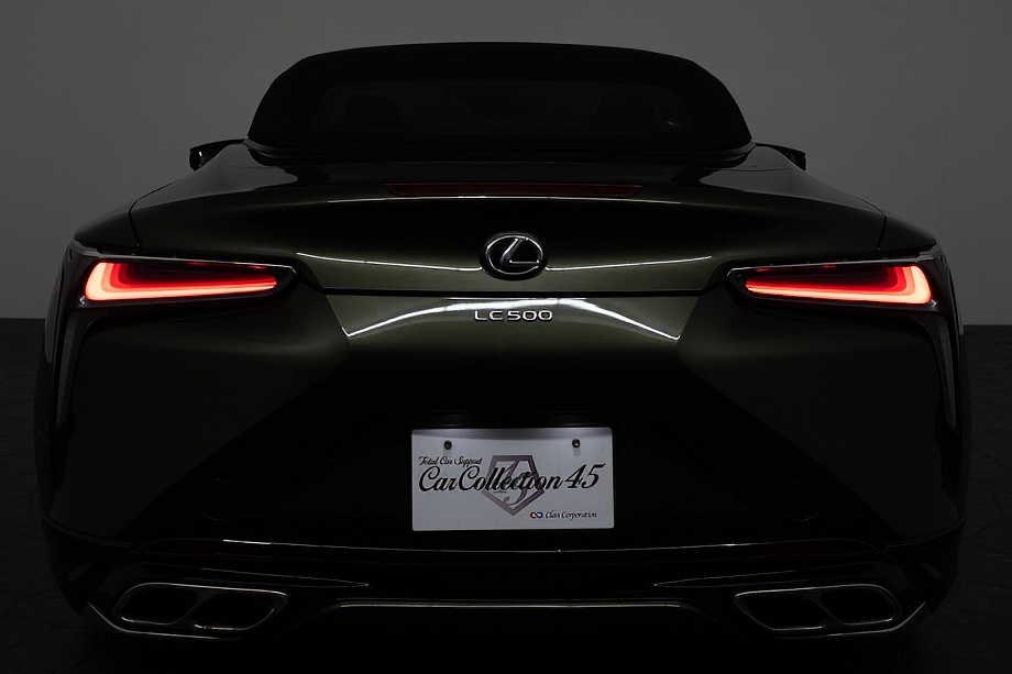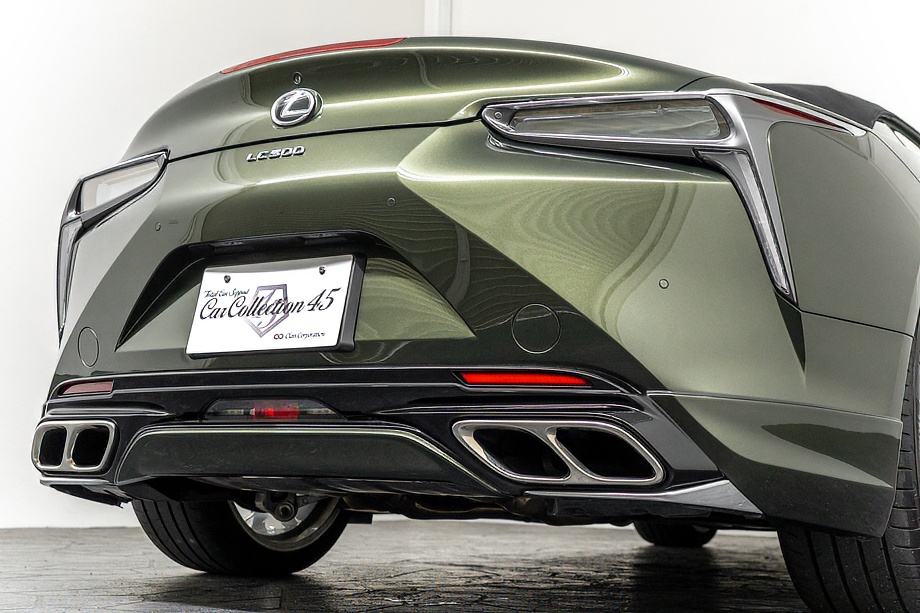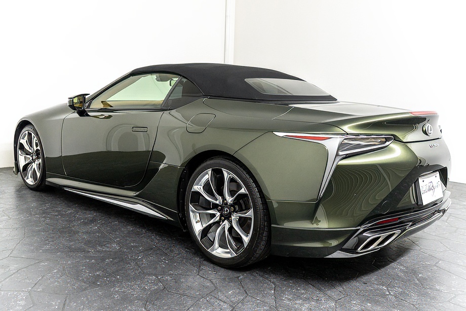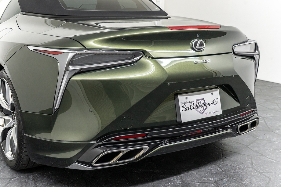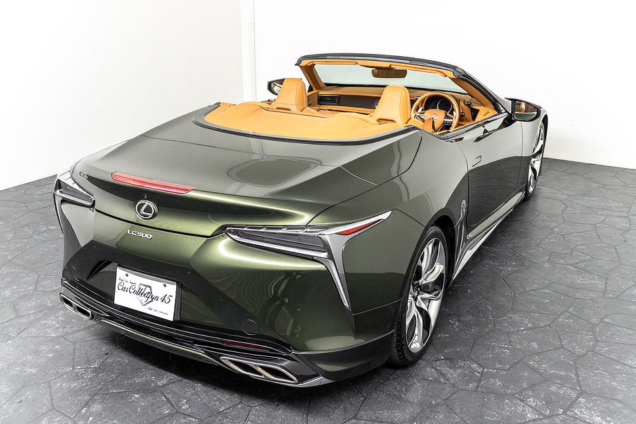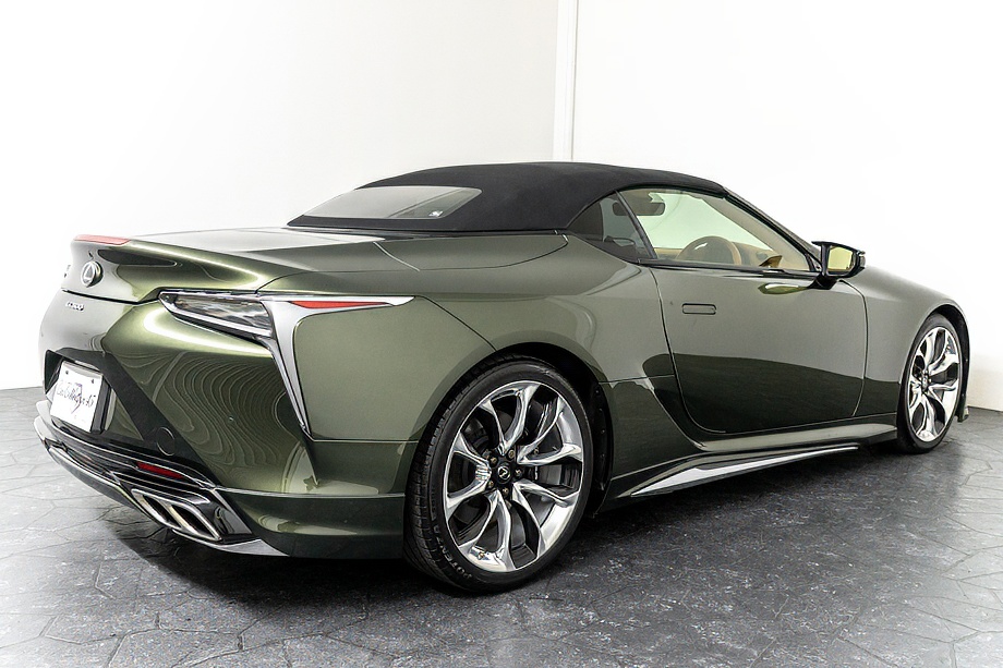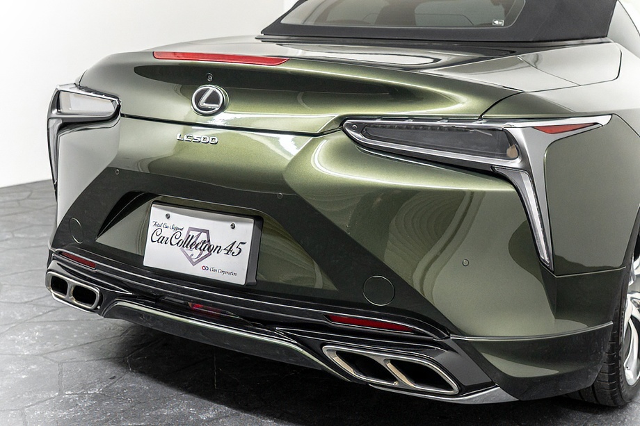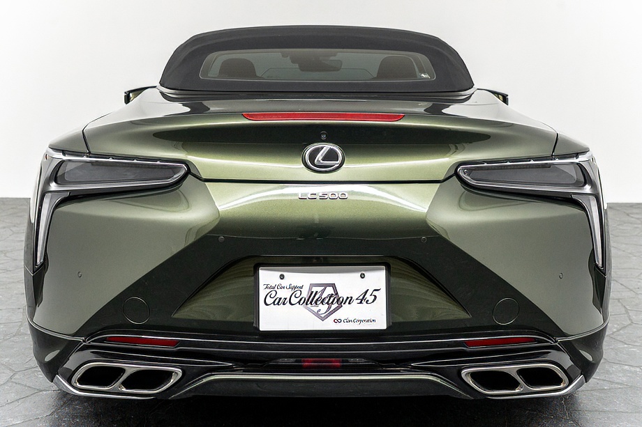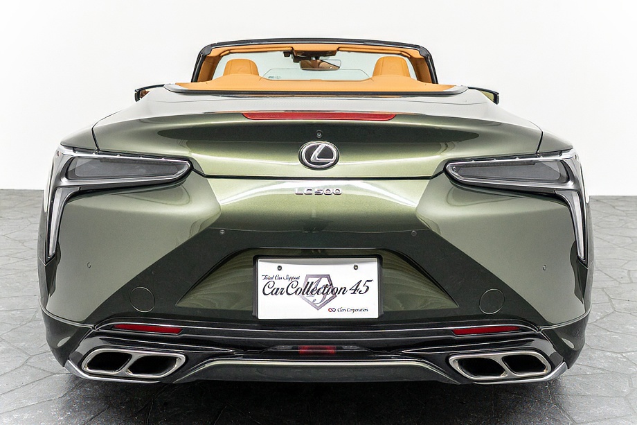 落ち着きのある果てしない高級感を全面に押し出す、テレーンカーキマイカメタリック&ブラックカラーソフトトップを纏ったエクステリアでは、LCシリーズとしての統一感を保ちながらも、専用パッケージングによりソフトトップルーフの軽快感や開放感、リヤのダイナミックな印象など、個性が引き立つエクステリアが出来上がっており、更にトランク後端を左右方向にも広げることで、ラグジュアリースポーツらしい存在感を際立たせたリヤデザインとなっております!!