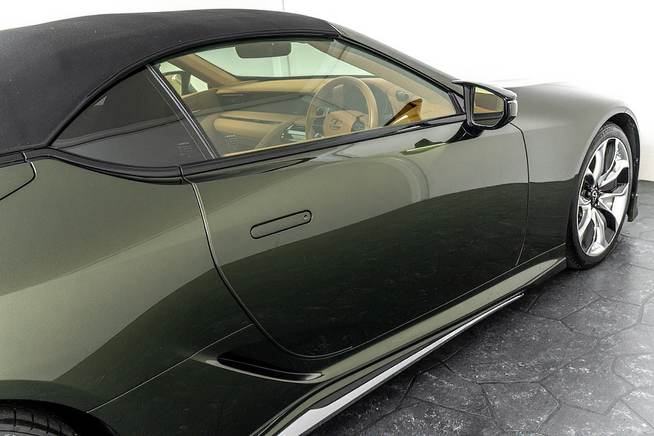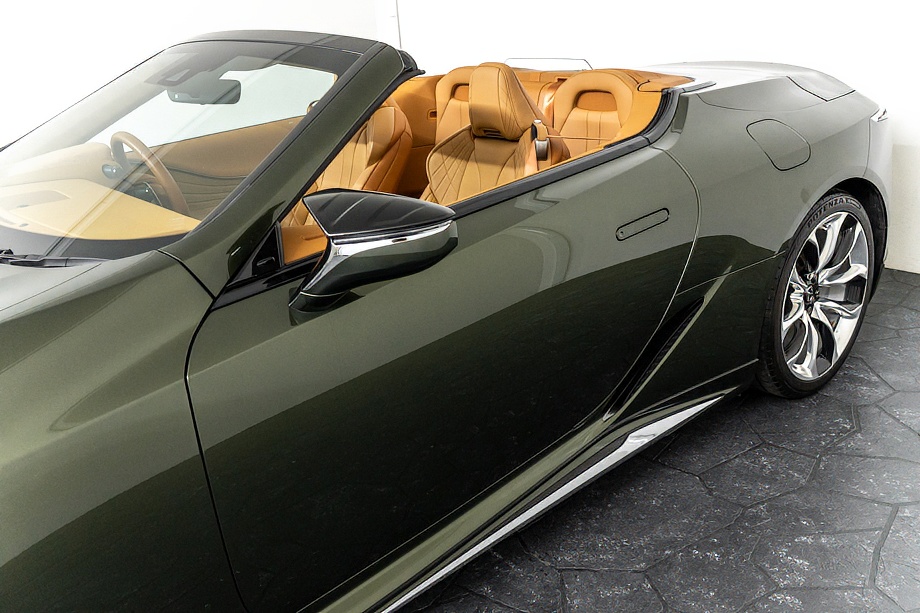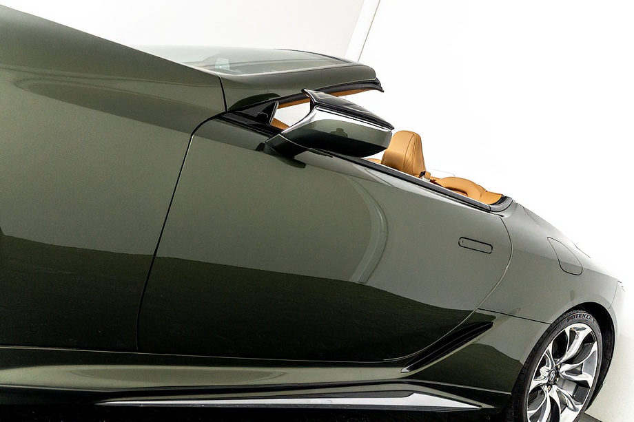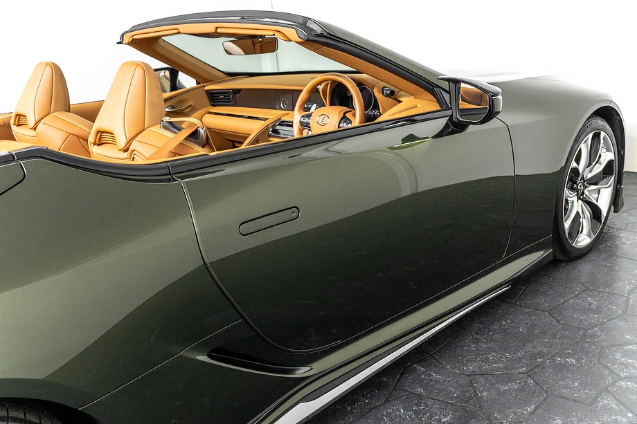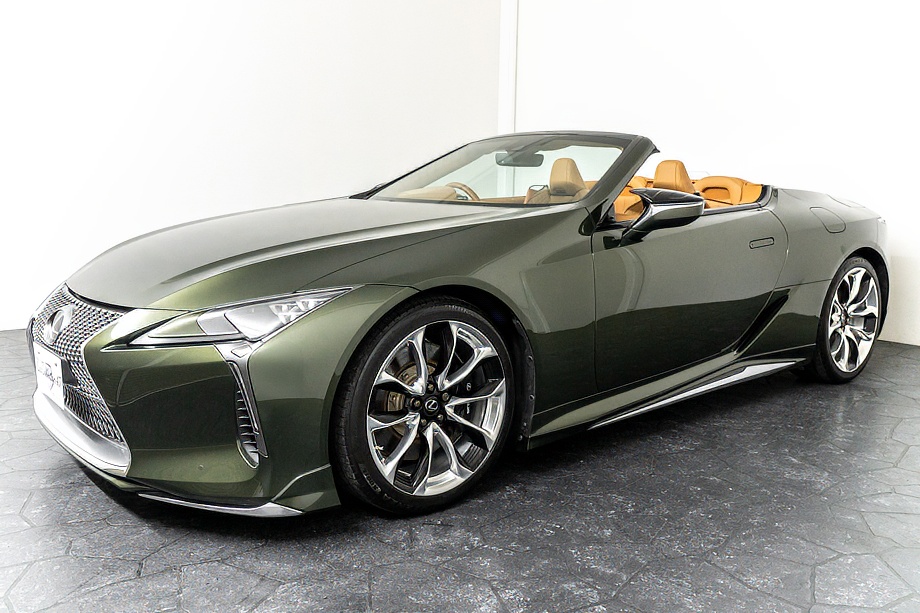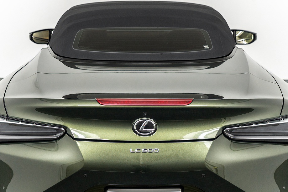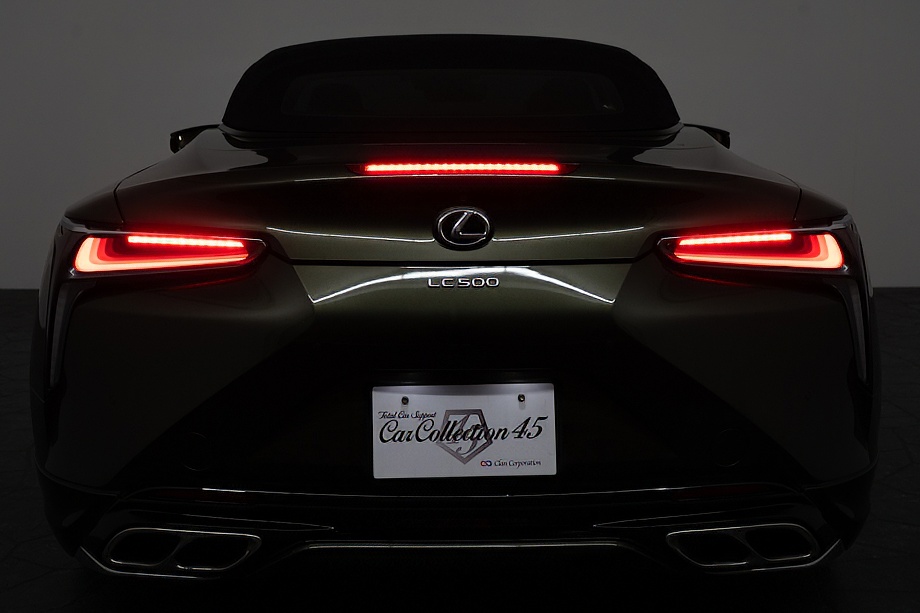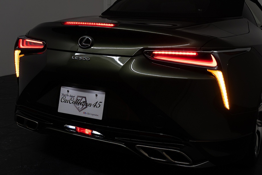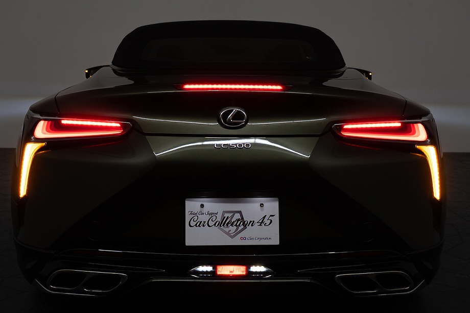 落ち着きのある果てしない高級感を全面に押し出す、テレーンカーキマイカメタリック&ブラックカラーソフトトップを纏ったエクステリアでは、LCシリーズとしての統一感を保ちながらも、専用パッケージングによりソフトトップルーフの軽快感や開放感、リヤのダイナミックな印象など、個性が引き立つエクステリアが出来上がっており、更にトランク後端を左右方向にも広げることで、ラグジュアリースポーツらしい存在感を際立たせたリヤデザインとなっております!!