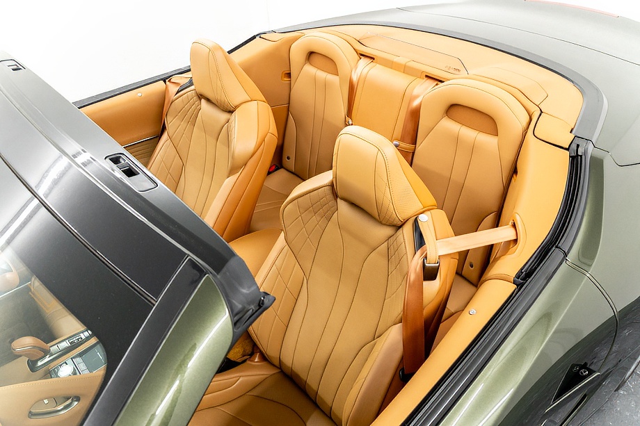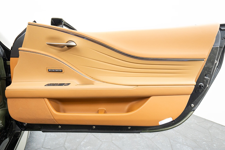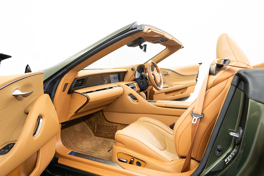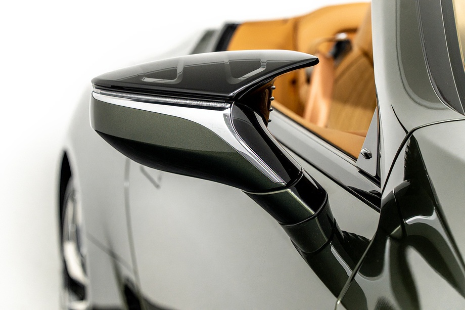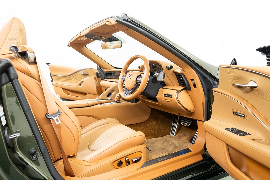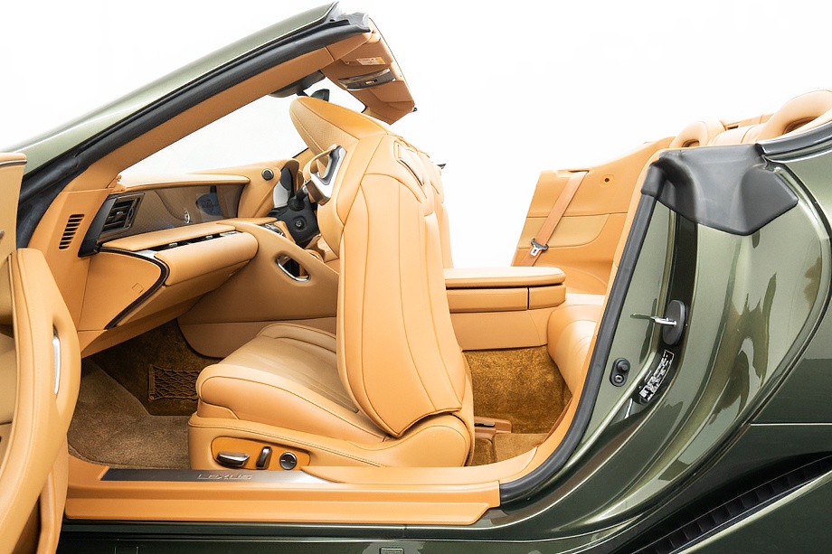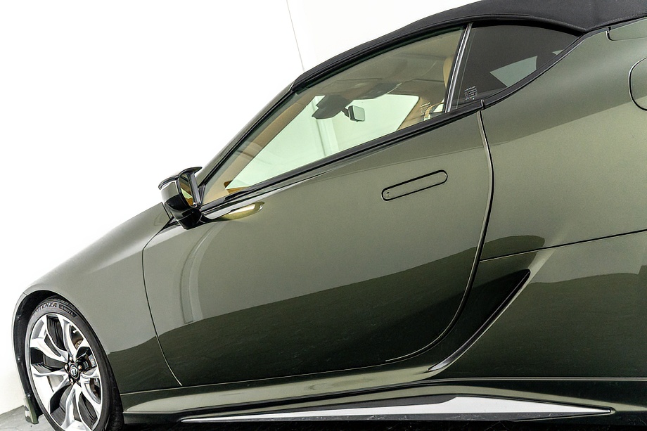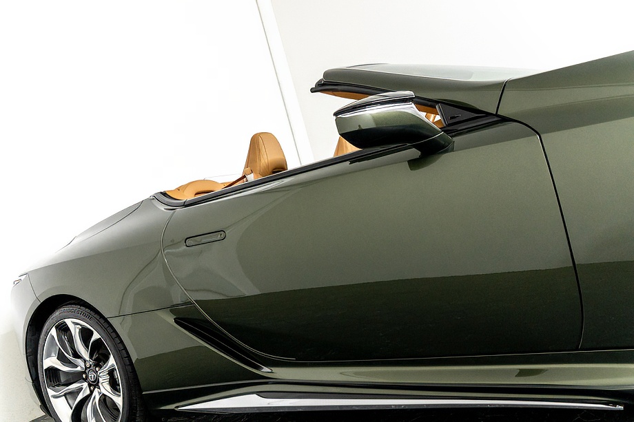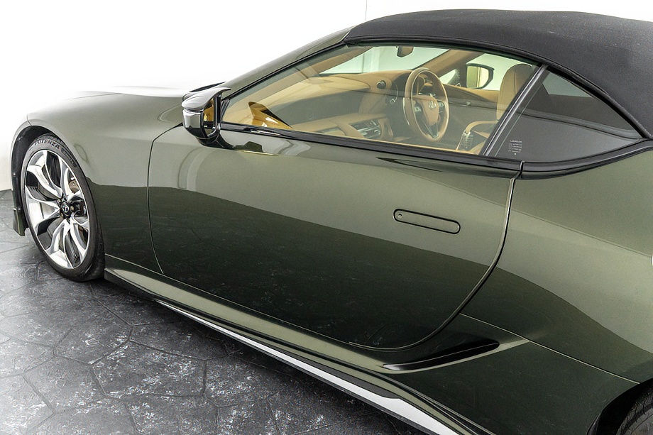 落ち着きのある果てしない高級感を全面に押し出す、テレーンカーキマイカメタリック&ブラックカラーソフトトップを纏ったエクステリアでは、LCシリーズとしての統一感を保ちながらも、専用パッケージングによりソフトトップルーフの軽快感や開放感、リヤのダイナミックな印象など、個性が引き立つエクステリアが出来上がっており、更にトランク後端を左右方向にも広げることで、ラグジュアリースポーツらしい存在感を際立たせたリヤデザインとなっております!!