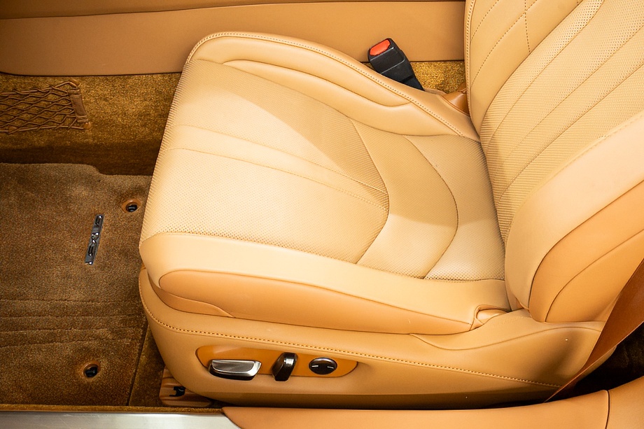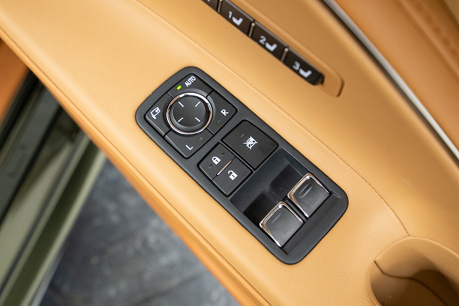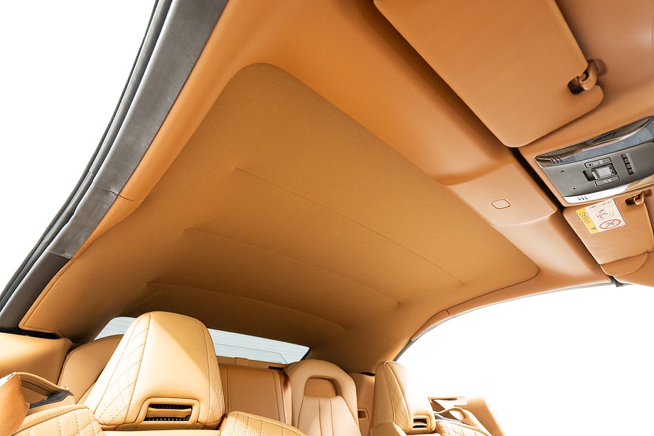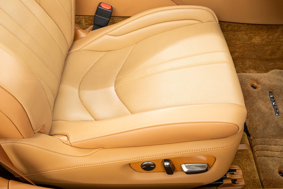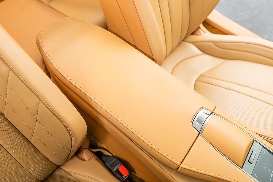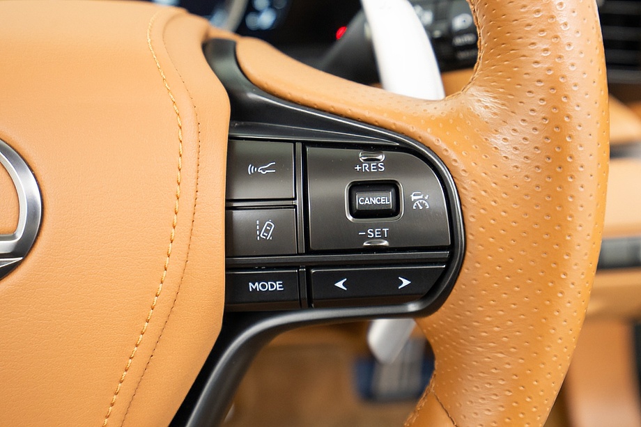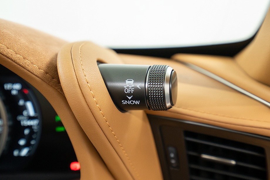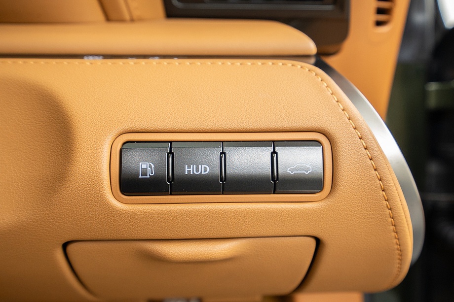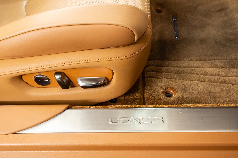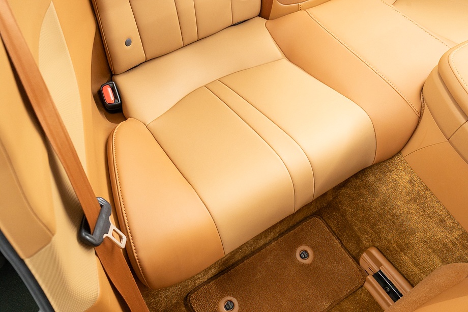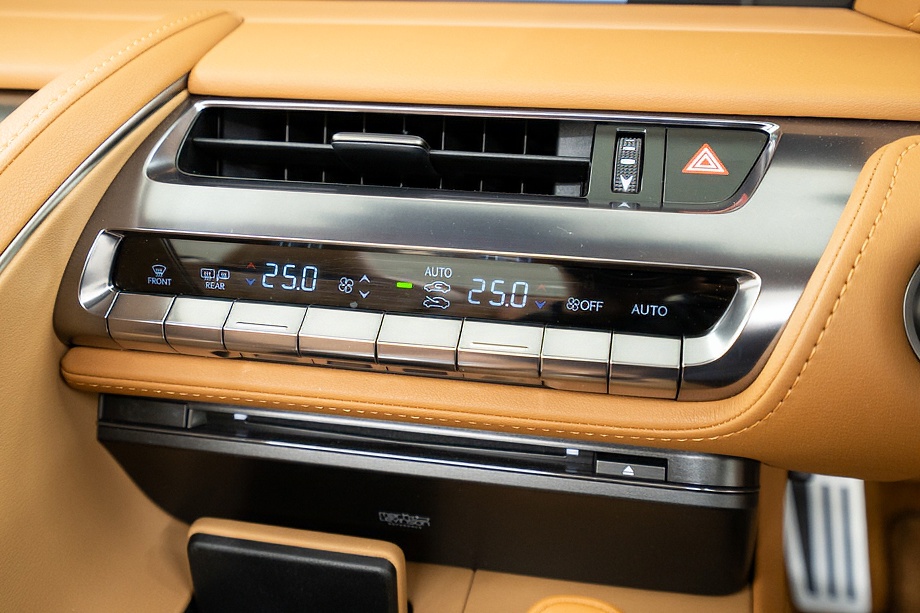 オーカー(キャメル)カラーのセミアニリン本革シートのインテリアでは、シート肩口のキルティングや穴径の異なる3種類のパーフォレーション加工によるグラデーションの表現、ヘッドレストの後部にさりげなく主張するLマークのエンボスなど、ルーフを開けた際の車外からの見え方にこだわり、細部に至るまで作りこみを行ったインテリアとなっております!!これらも、LC500コンバーチブルのコンセプトである「インテリアもエクステリアである」を元にデザインされており、コンバーチブルならではのディティールを作り込んでおります!!走り込みを重ねて、握る際にできる手のひらの窪みとホイール形状がフィットするよう研究された、心地いいグリップ間を感じられるステアリングホイール、優れたホールド性と快適な乗り心地を手に入れ、パフォーマンスを最大限に引き出せるよう設計されたフロントシートなど、ストレスフリーなコックピットが広がっております!!更に、フロントシートにはシートヒーター/ベンチレーション(クーラー)が装備され、夏でも冬でも快適温度になるのが遅いなどの不安も払拭してくれます!!