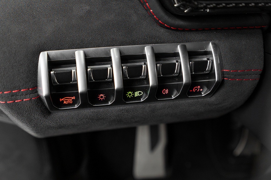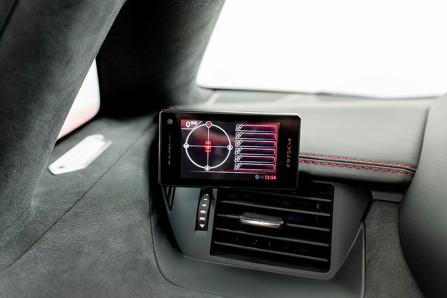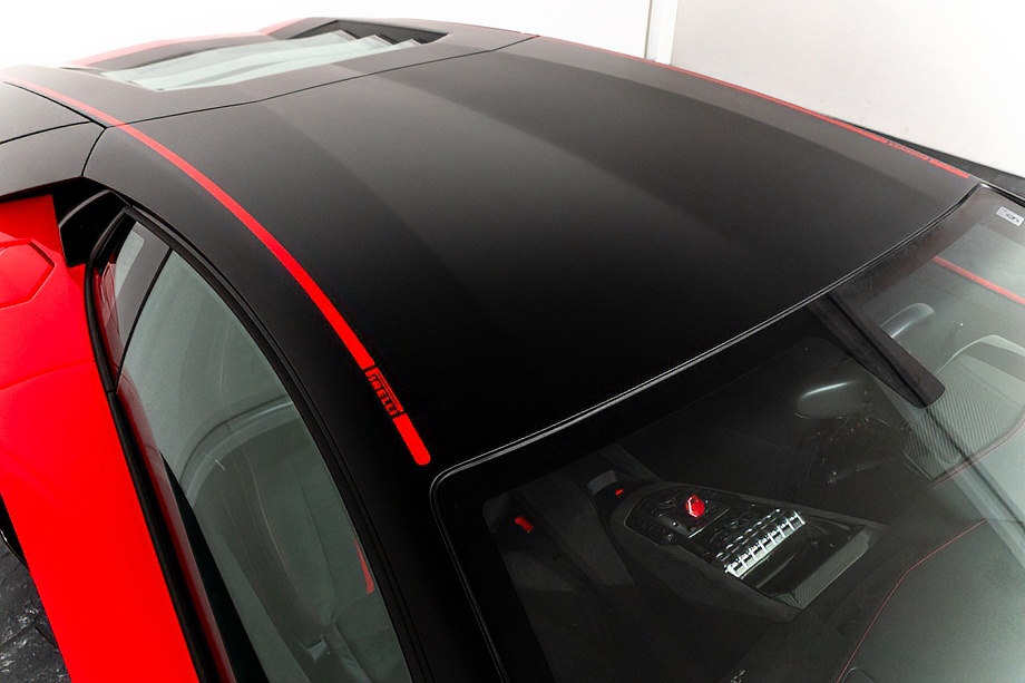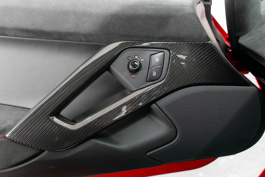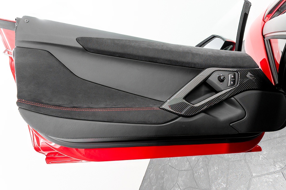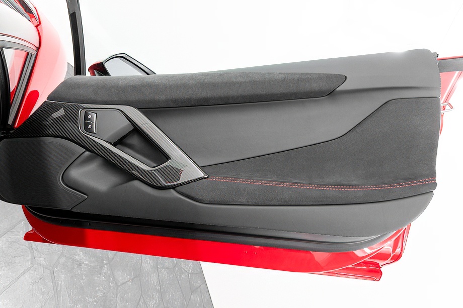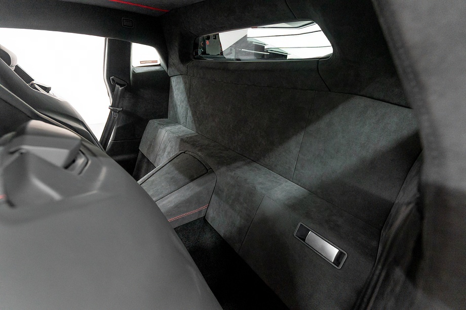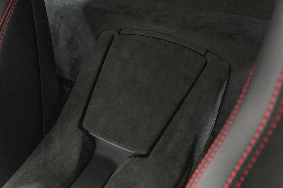インテリアに目を向けると、ピレリエディション専用の世界観が広がります。アルカンターラルーフライニングやピラー、フロントガラスフレームに至るまで上質なアルカンターラで包まれ、随所に施されたレッドステッチがさりげない情熱を演出。インテリアカーボンファイバーパッケージとアルカンターラ付ブランディングパッケージが、スーパースポーツでありながらも品格ある空間を作り上げています。シートヒーター付き電動シートにより、快適性もきちんと確保されている点は嬉しいポイントですね。
