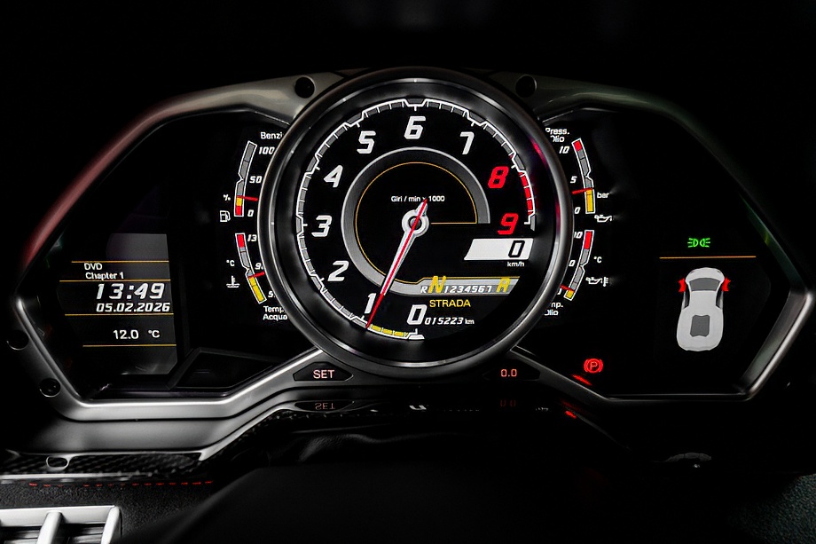 心臓部にはV型12気筒6.5Lエンジンを搭載。アクセルに触れた瞬間から、自然吸気V12ならではの鋭く澄んだ咆哮が背中を押し、ランボルギーニでしか味わえない高揚感をもたらします。ISRシングルクラッチ・トランスミッションと電制4WDの組み合わせにより、圧倒的なパワーを確実に路面へ伝達。ドライブ・セレクト・システムによって、街中からワインディング、そしてサーキットライクな走りまで、シーンに応じたキャラクターを自在に楽しめるのも大きな魅力です。