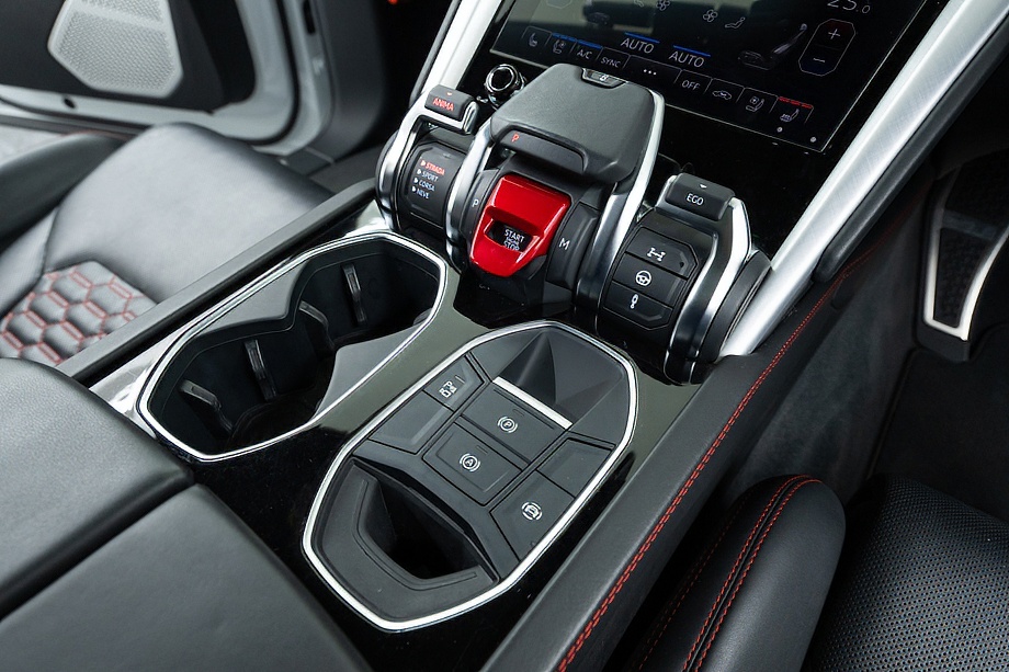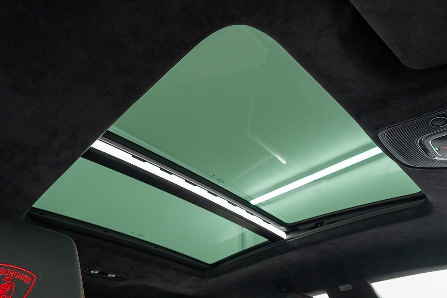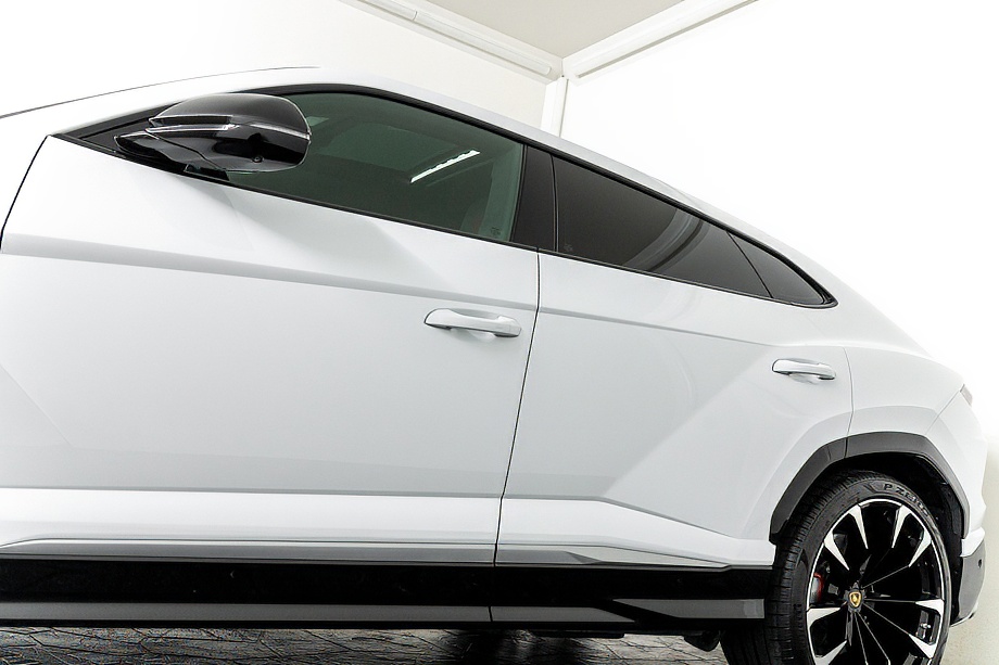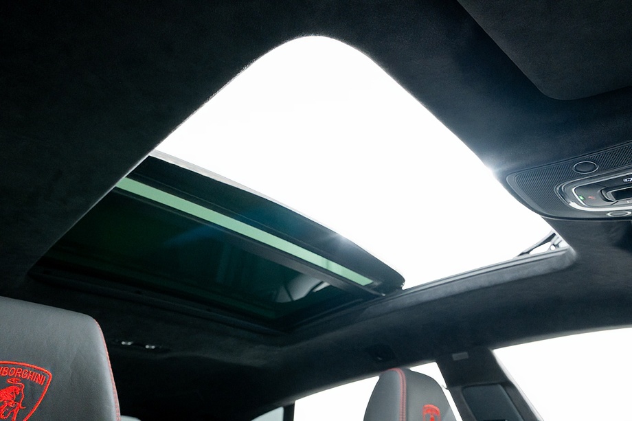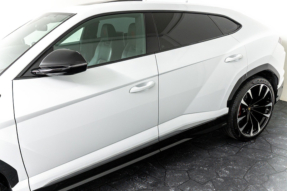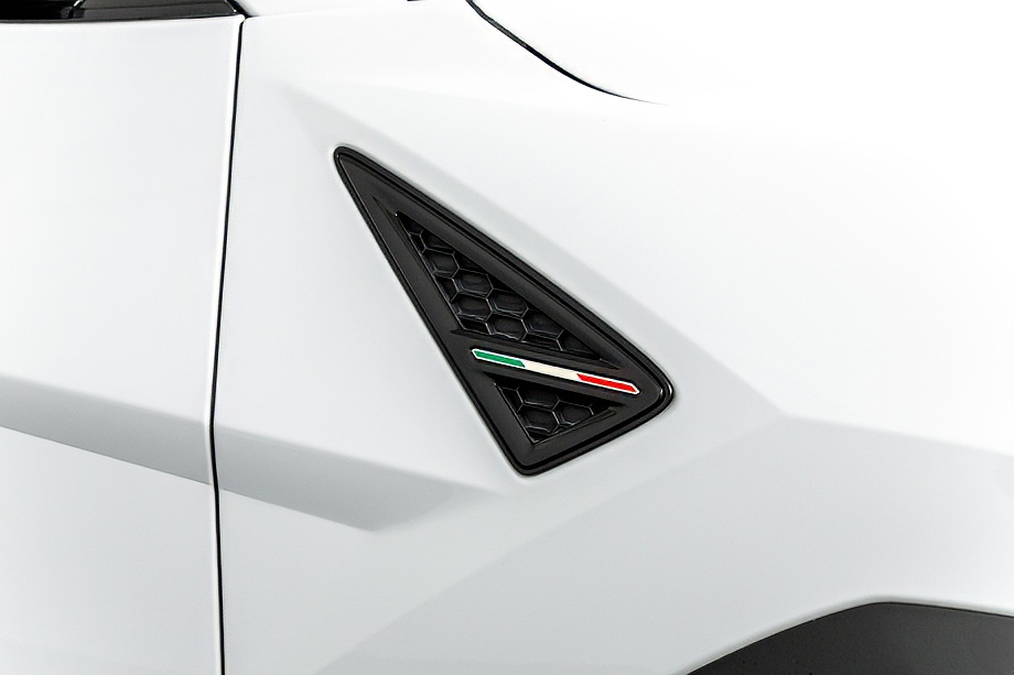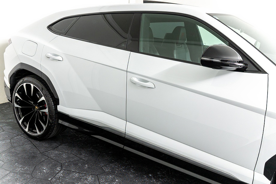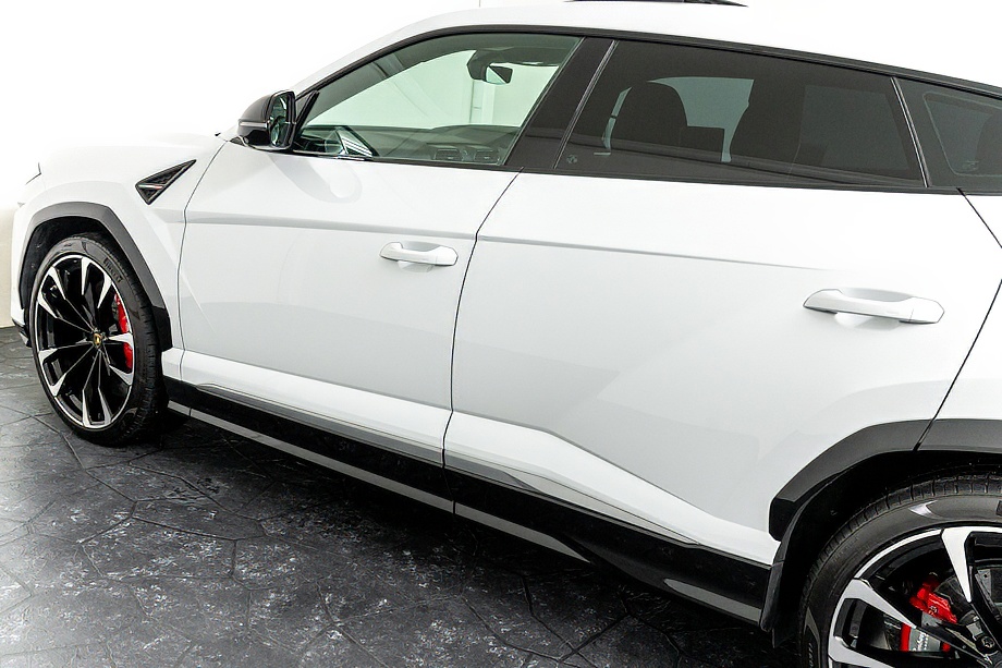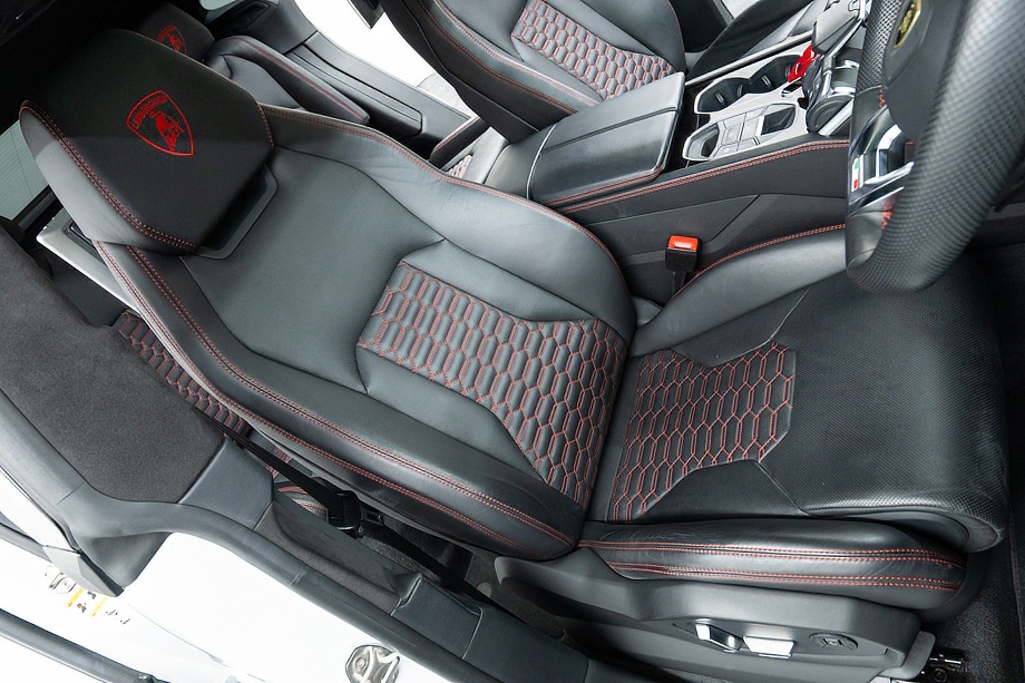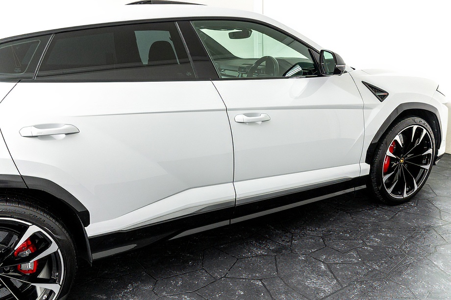 本車両は、存在感あふれるビアンコイカロスのボディカラーに、23インチ「Taigete」ダイヤモンドフィニッシュ鍛造アルミホイールを装着。大径ホイールならではの迫力と、精緻な輝きを放つダイヤモンドカット仕上げが足元を引き締めます。そこに組み合わされるレッドブレーキキャリパーが、さりげなくも力強いアクセントとなり、ランボルギーニらしいスポーティさを際立たせています。さらにブランディングパッケージも備わり、内外装の随所にあしらわれたロゴやディテールが、オーナー様の満足感を一層高めてくれます。