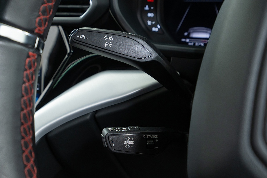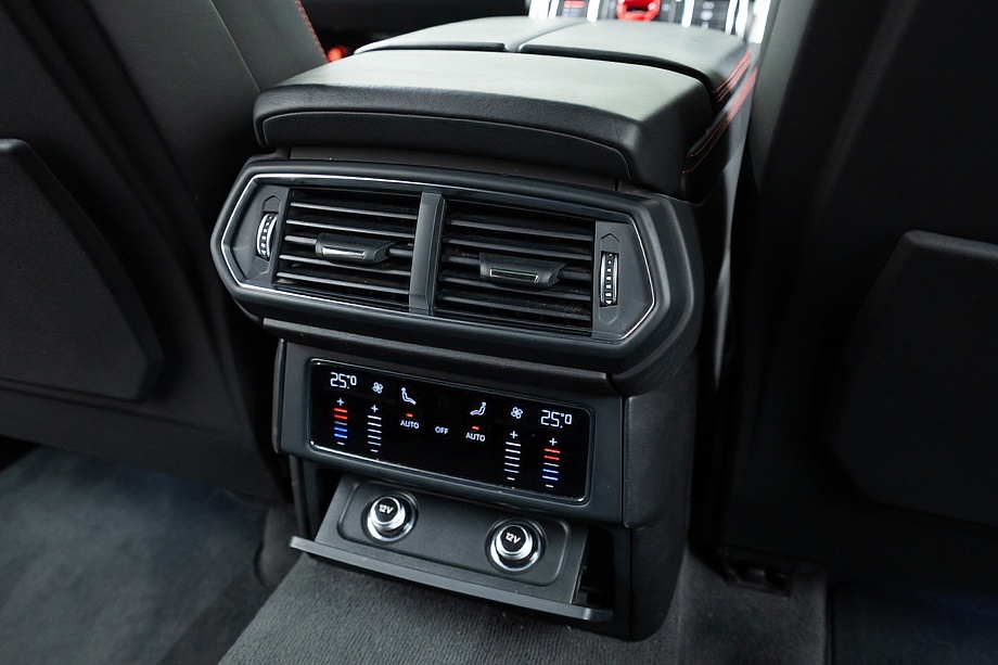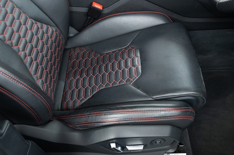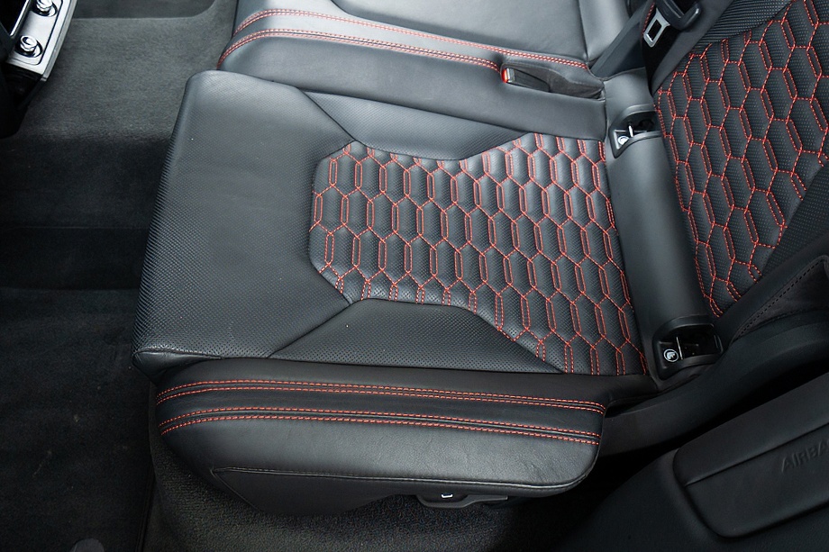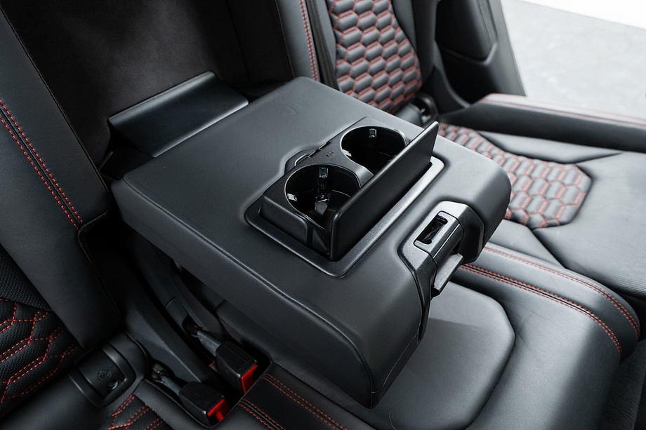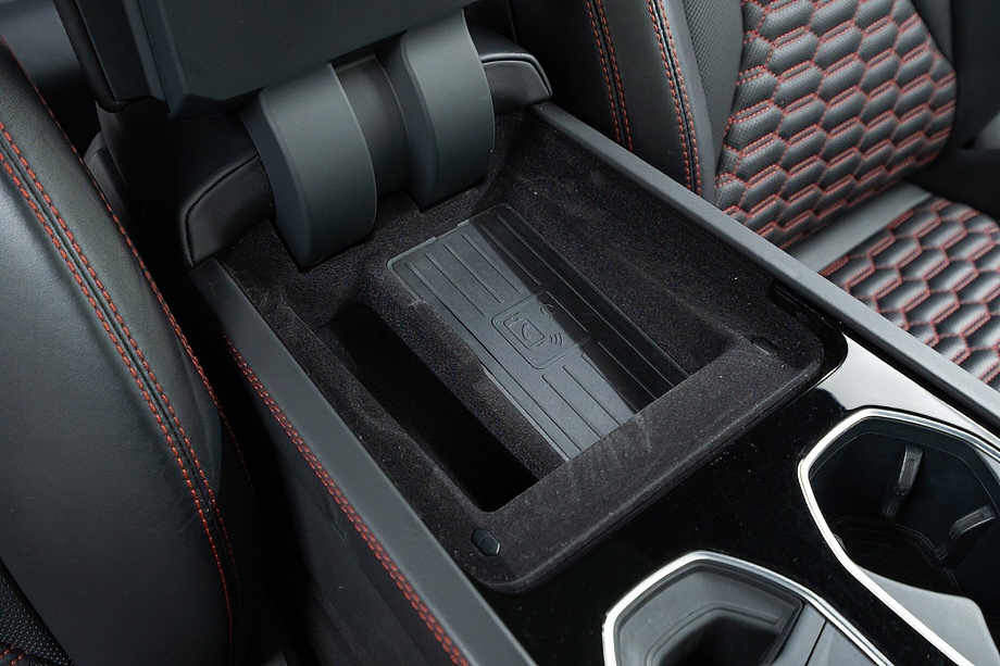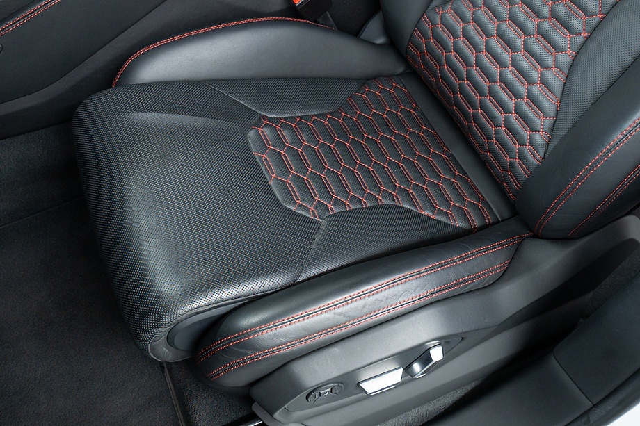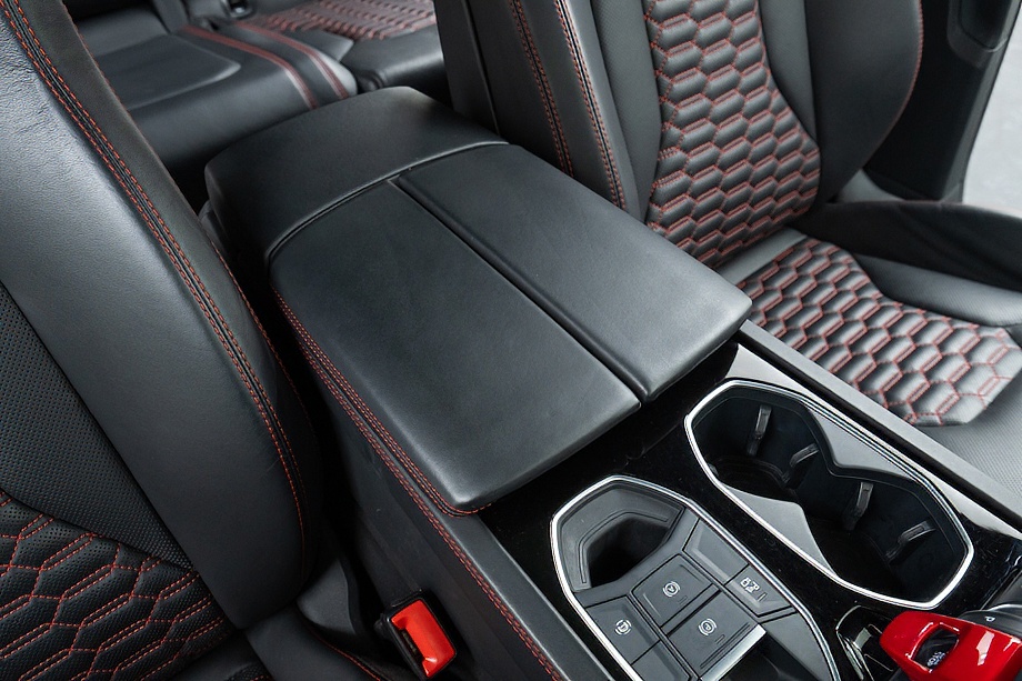 インテリアには、ブラックレザーにレッドステッチを組み合わせたQ-Cituraレザーシートを採用。六角形モチーフのステッチが施されたシートは視覚的な美しさだけでなく、身体をしっかりと支える設計です。フロントシートにはシートヒーター&ベンチレーション機能に加え、マッサージ機能も搭載。季節を問わず快適で、長距離ドライブでも疲労を軽減してくれます。