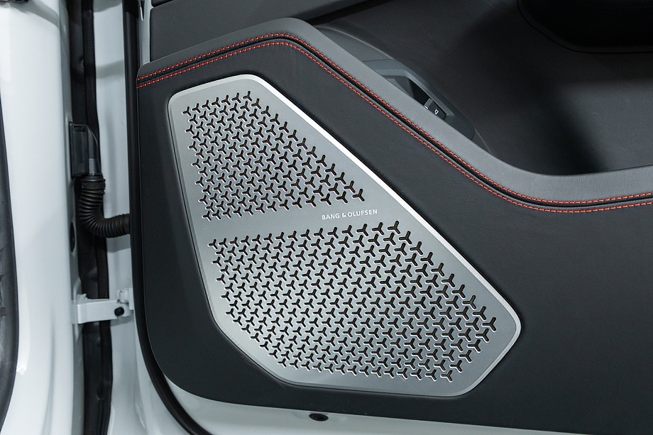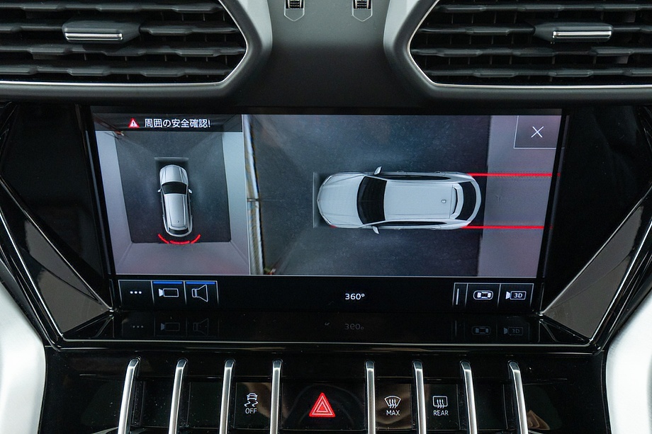 音響面では、3Dサラウンドを実現するBang & Olufsenサウンドシステムを搭載。21スピーカーによる立体的で臨場感あふれるサウンドは、まさにプレミアムそのものです。純正ナビゲーションはフルセグTV、Bluetooth、USB接続に対応し、Apple CarPlayやAndroid Autoもご利用可能。スマートフォンとの連携もスムーズで、日常使いの利便性も申し分ございません。さらに360°カメラを装備しており、取り回しの不安も軽減されています。
